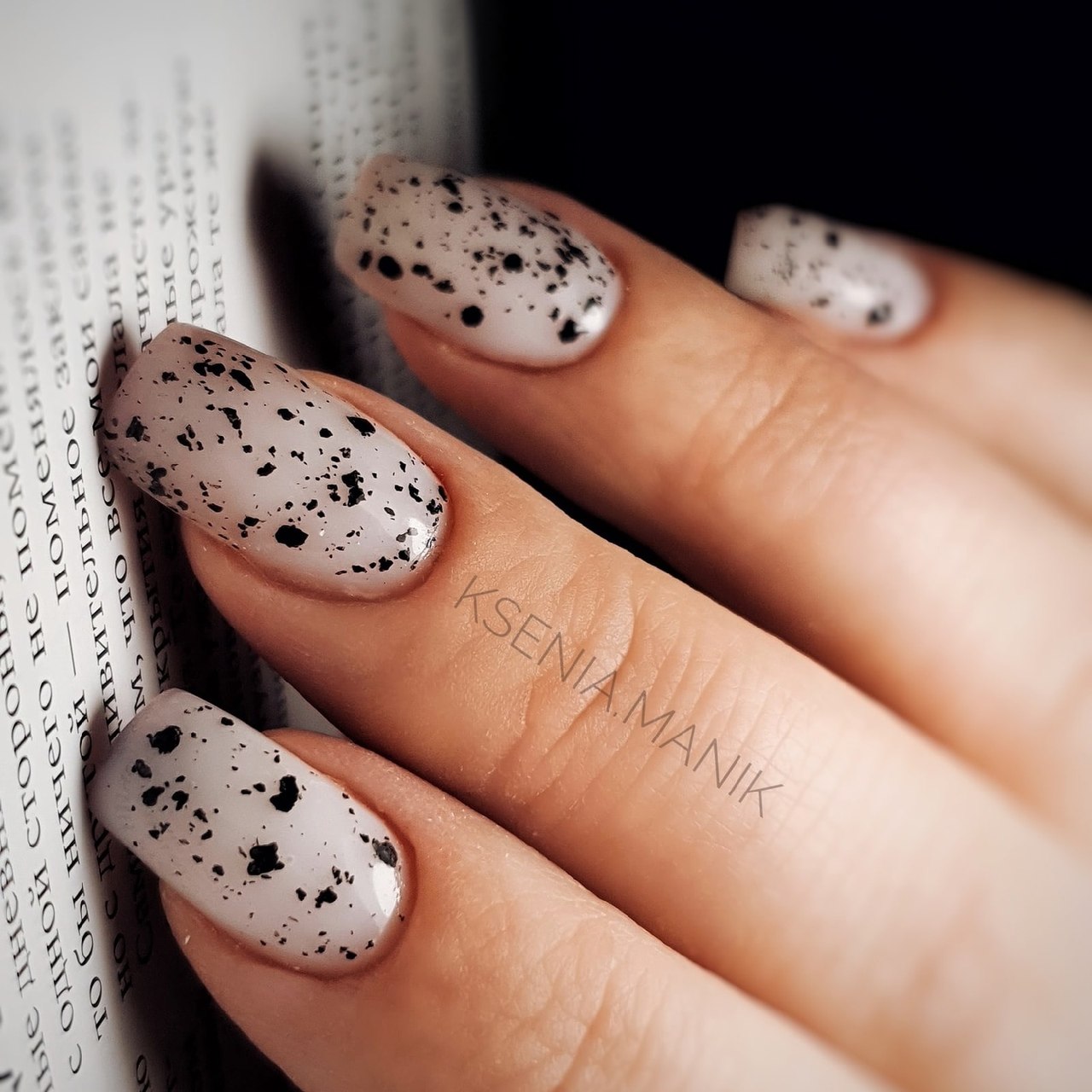 Маникюр белый в черную крапинку