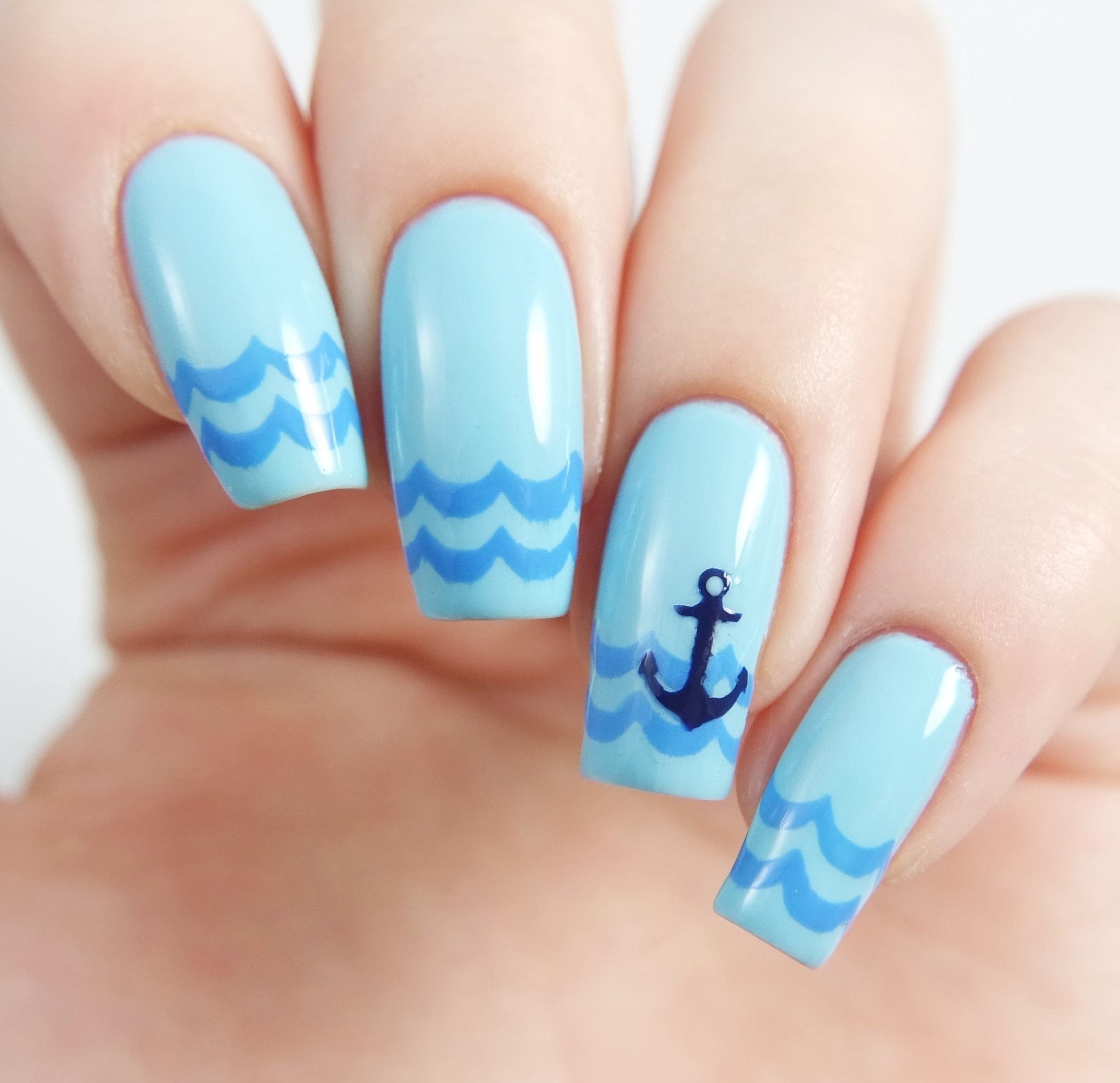 Маникюр под голубой купальник (46 фото)