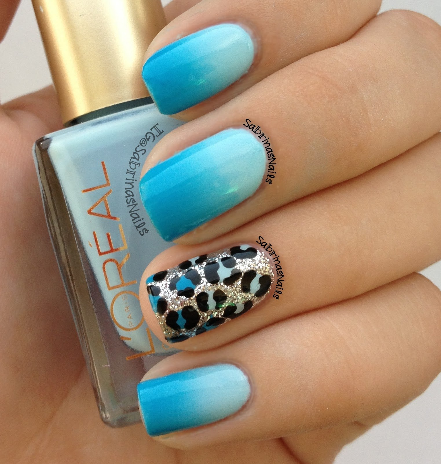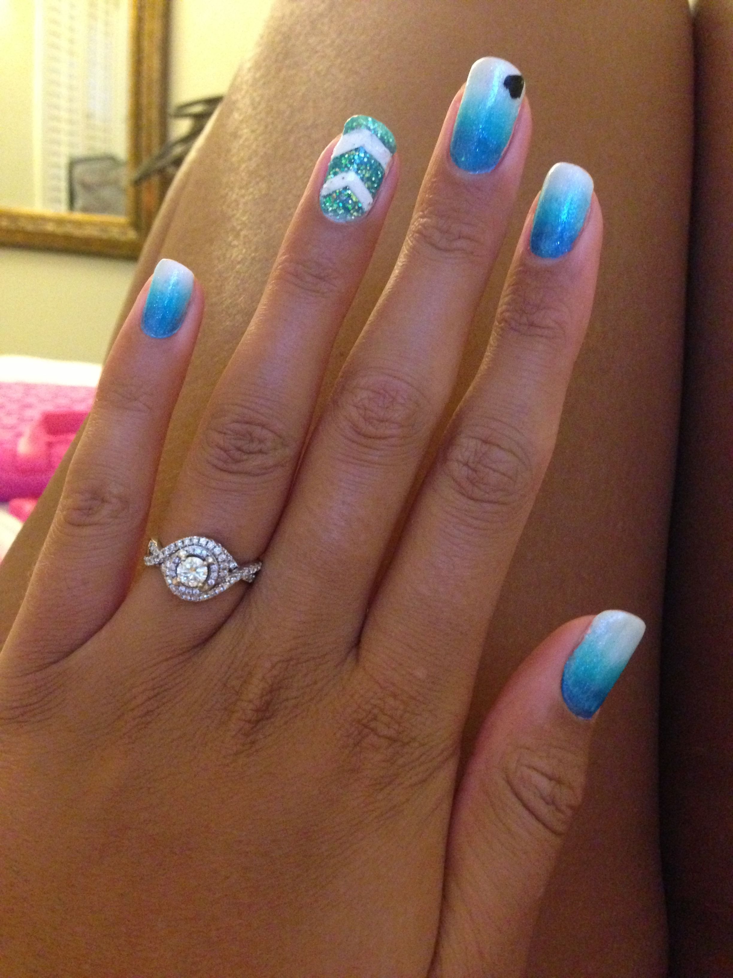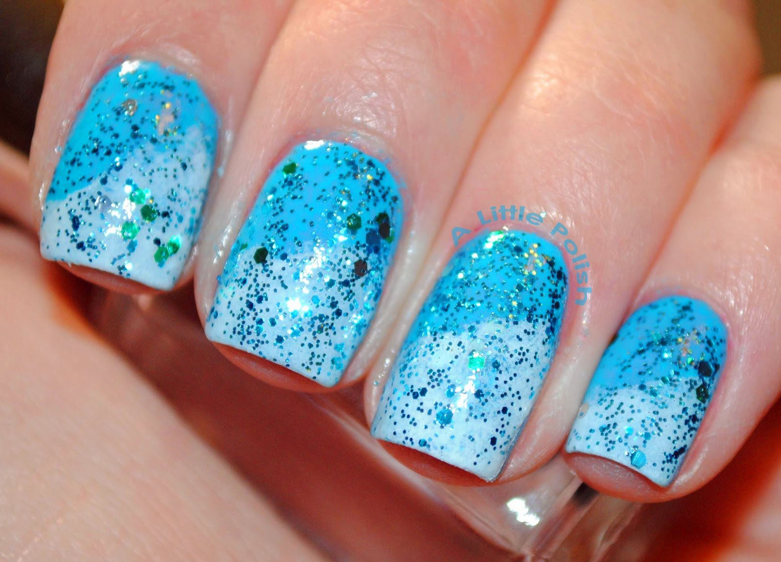 Маникюр градиент голубой и белый