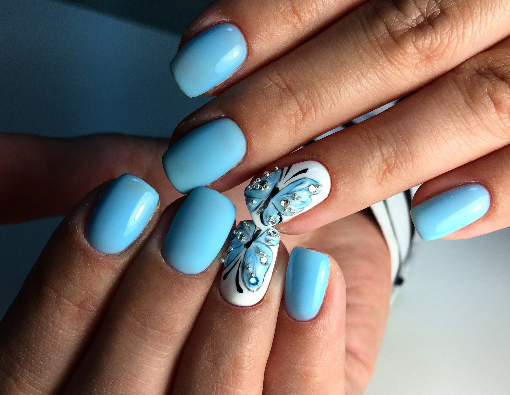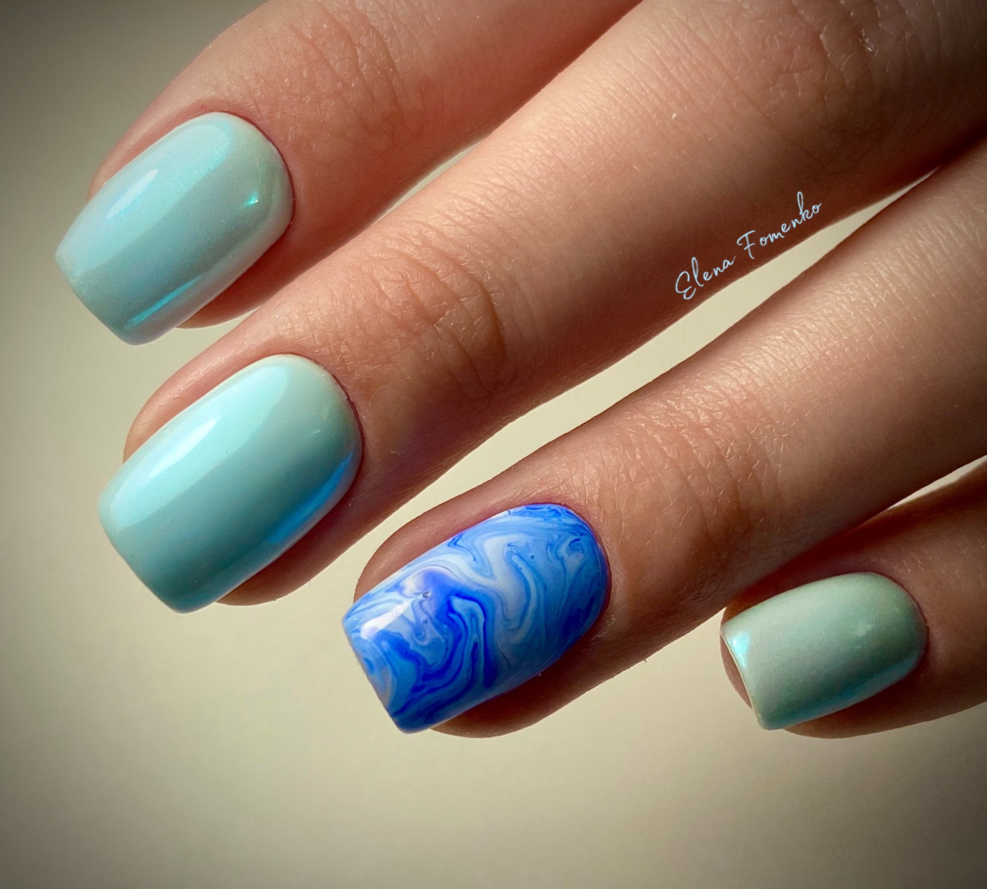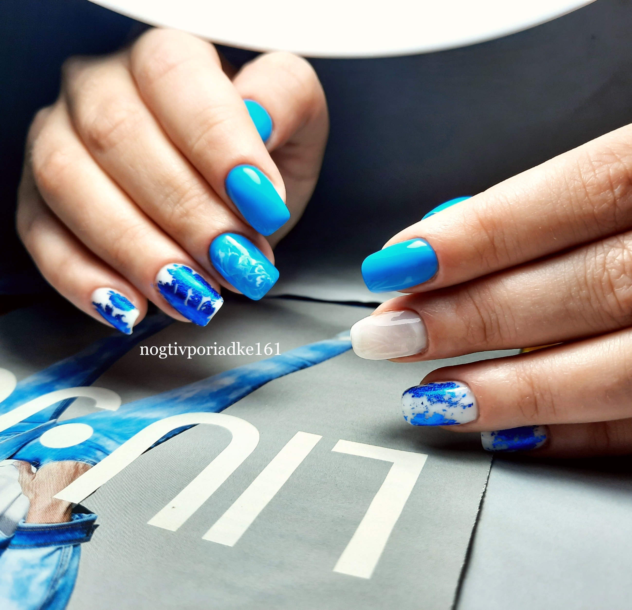 Маникюр голубой разные оттенки