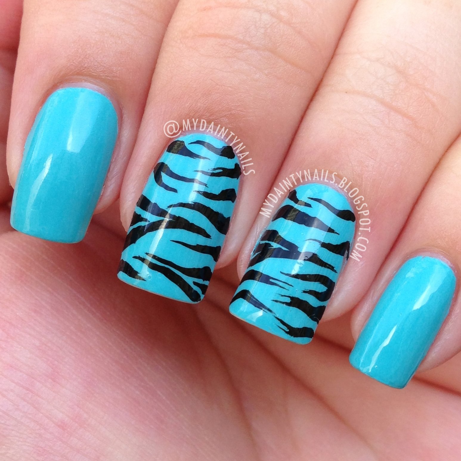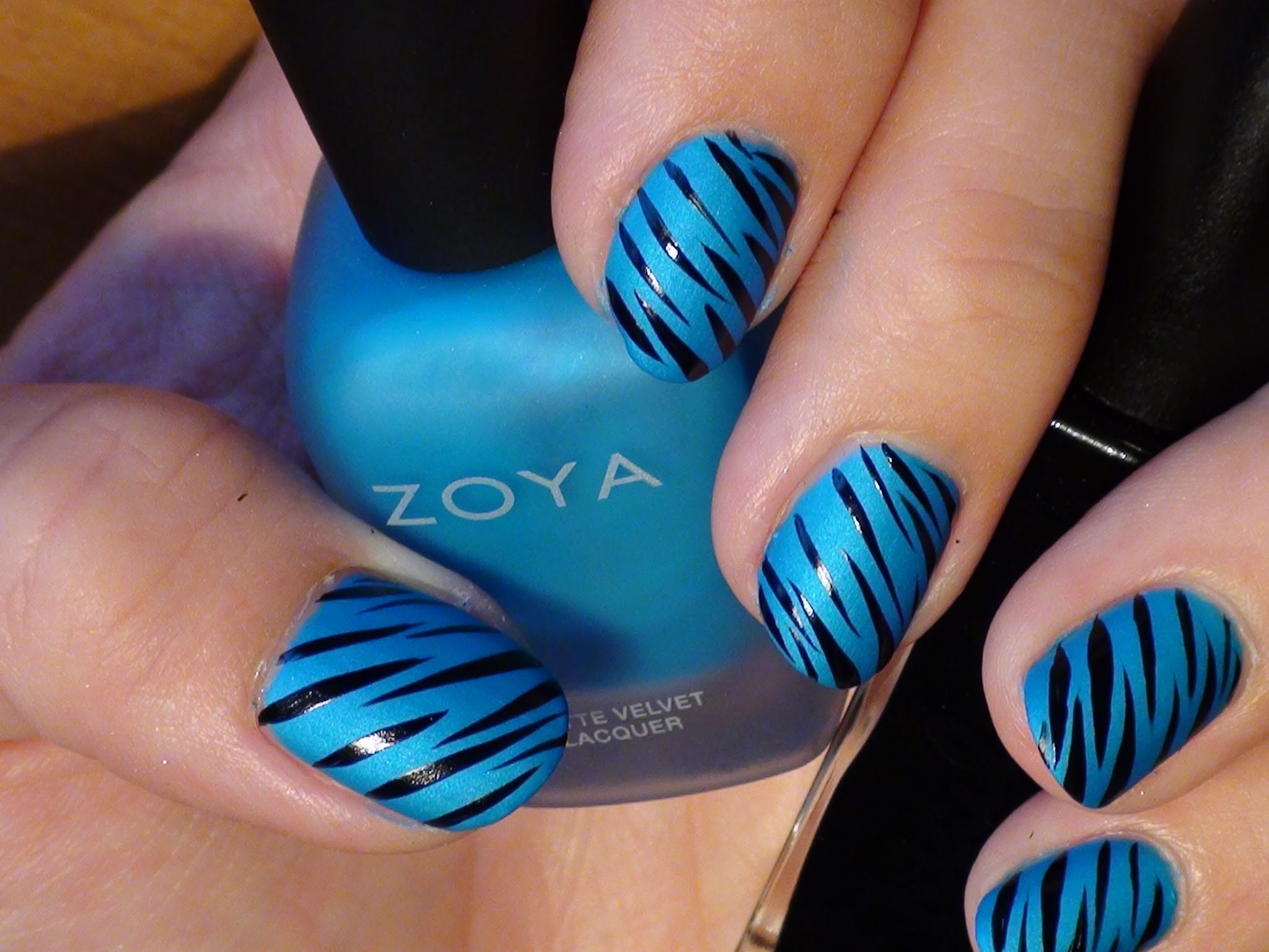 Маникюр голубой с черными полосками