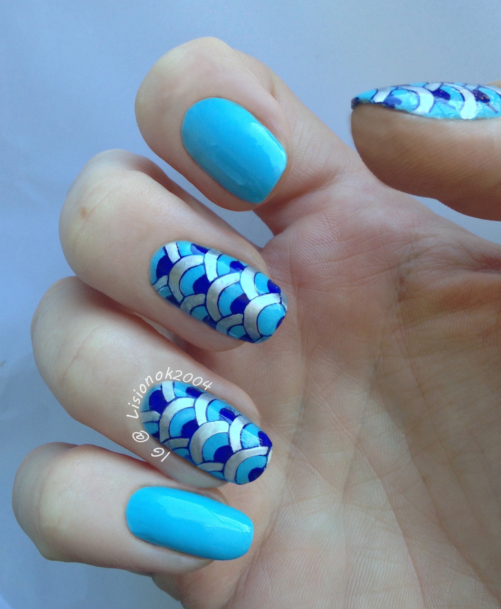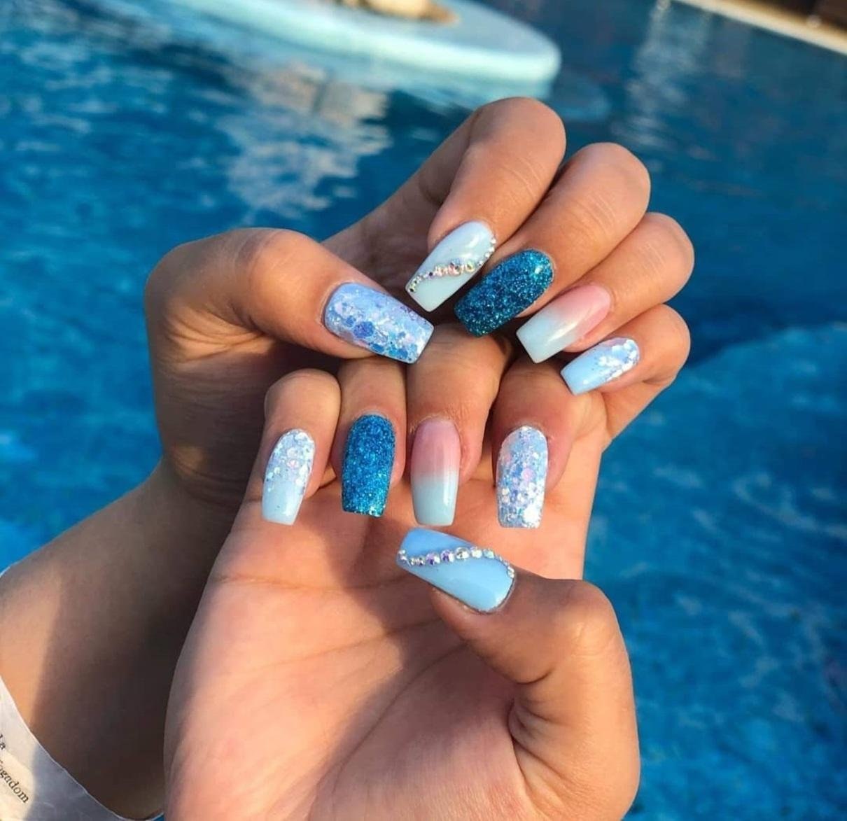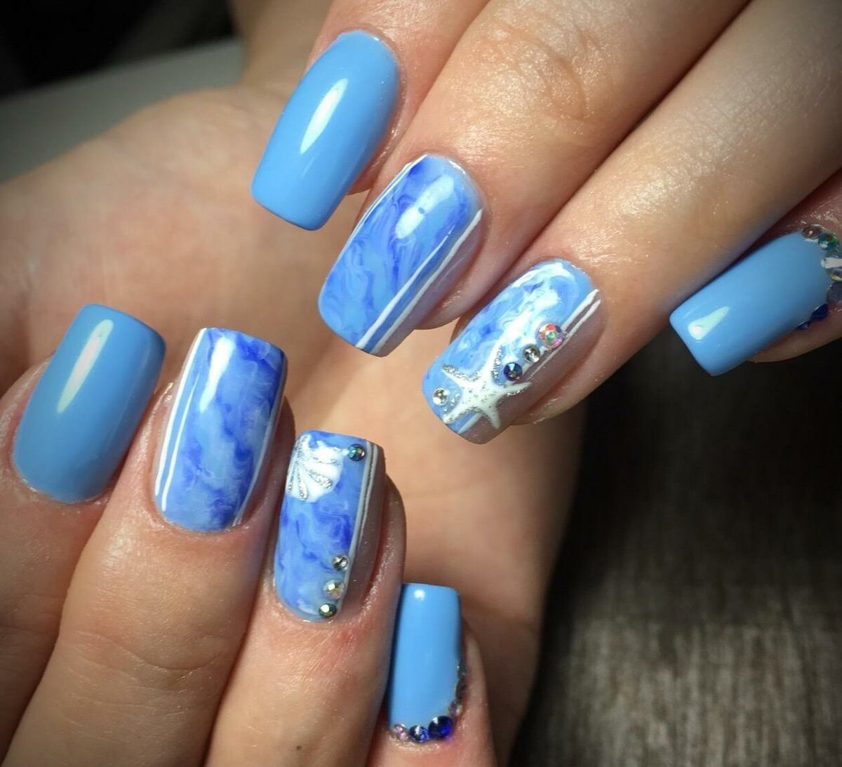 Маникюр в голубых тонах летний морской