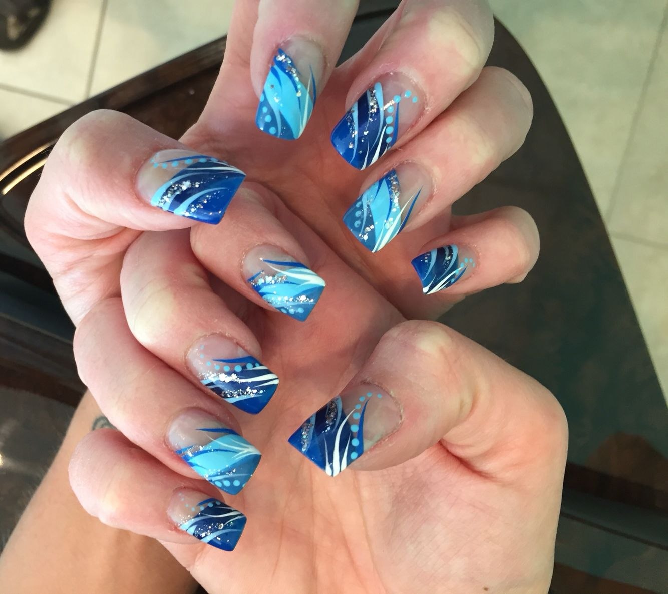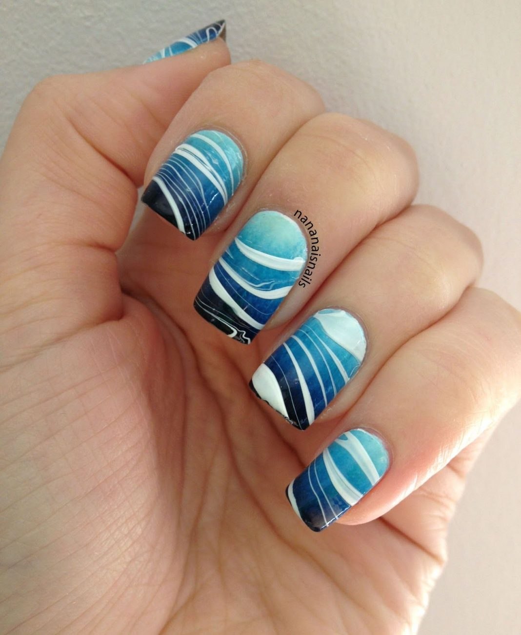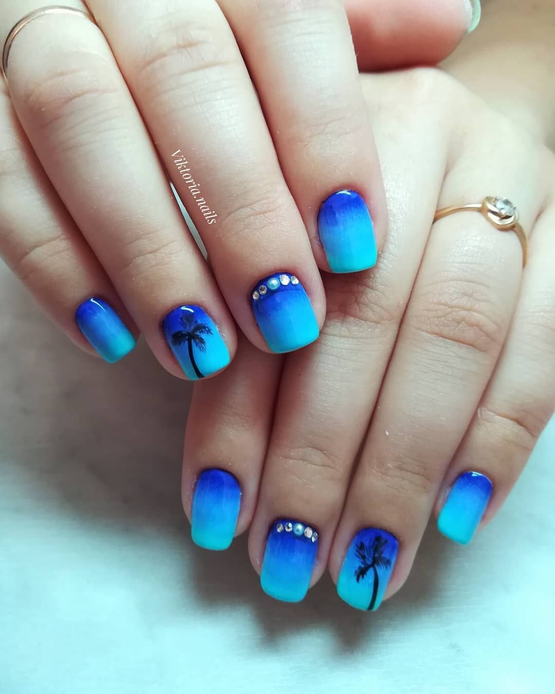 Маникюр в голубых тонах летний морской