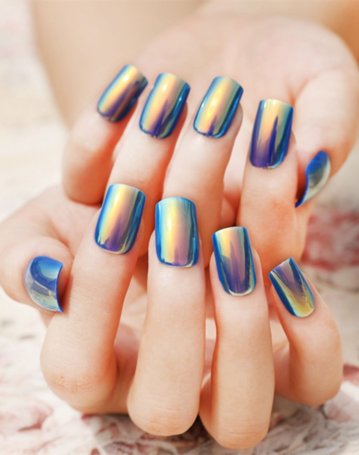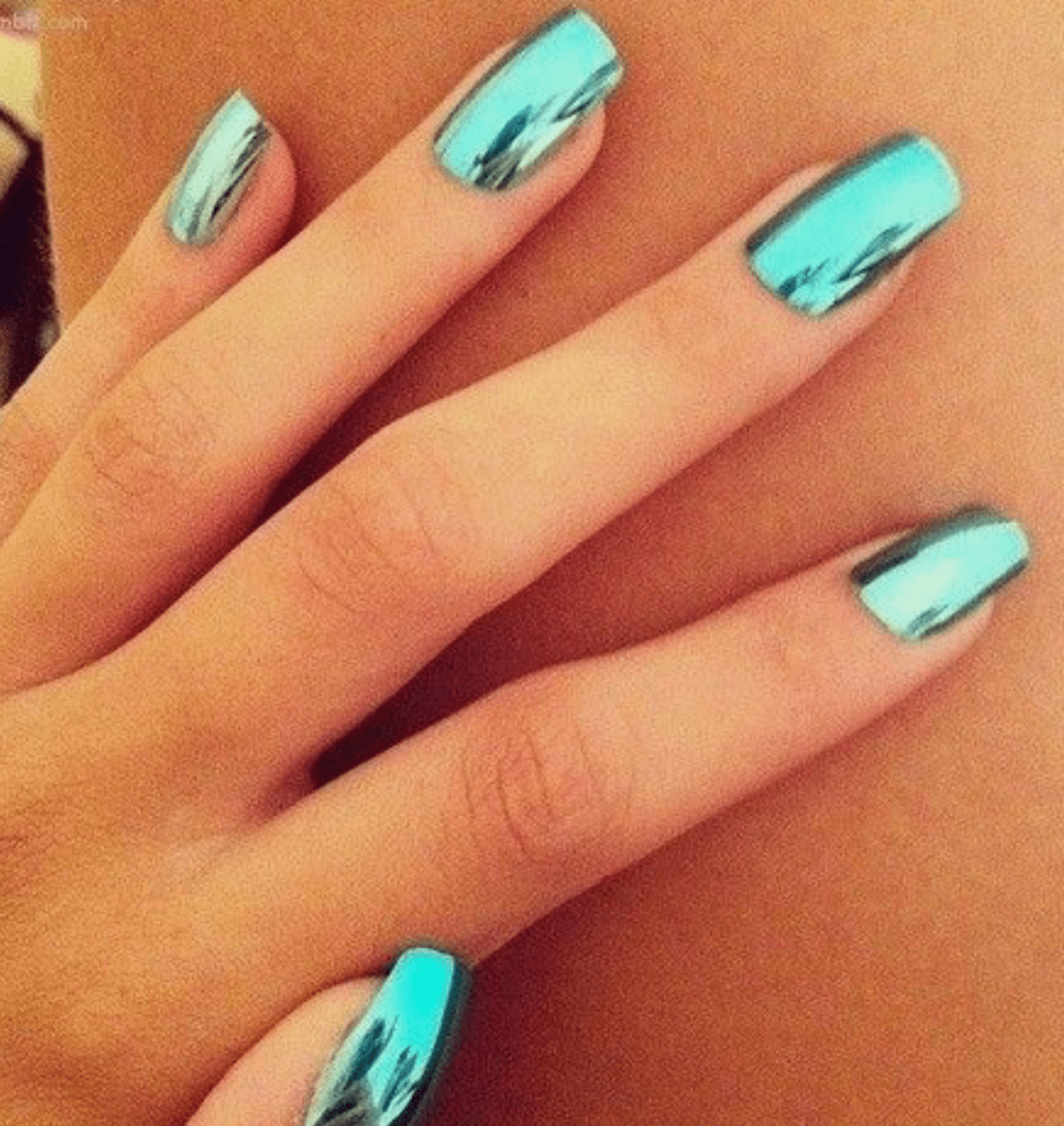 Голубой зеркальный маникюр