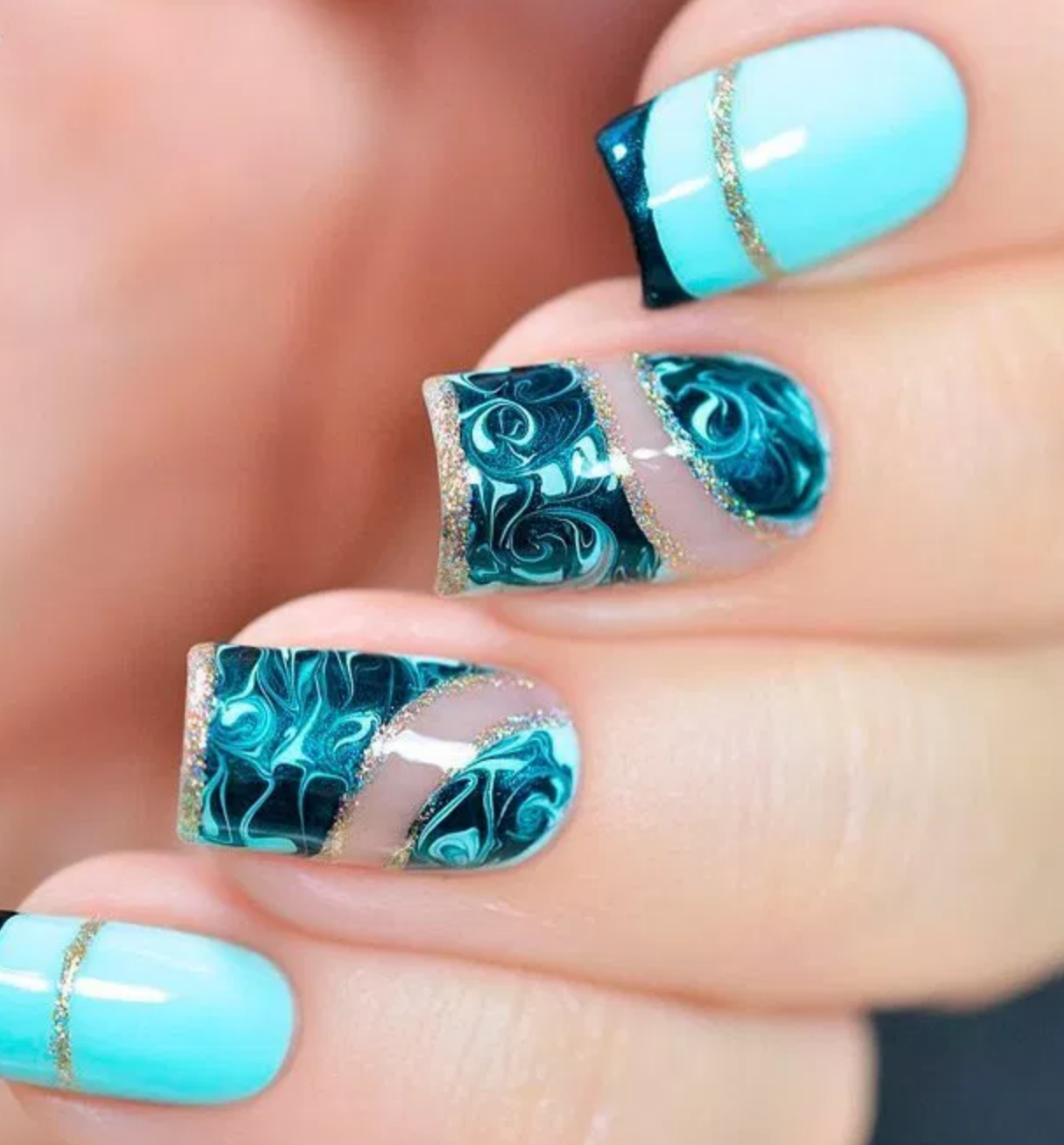 Маникюр морская волна