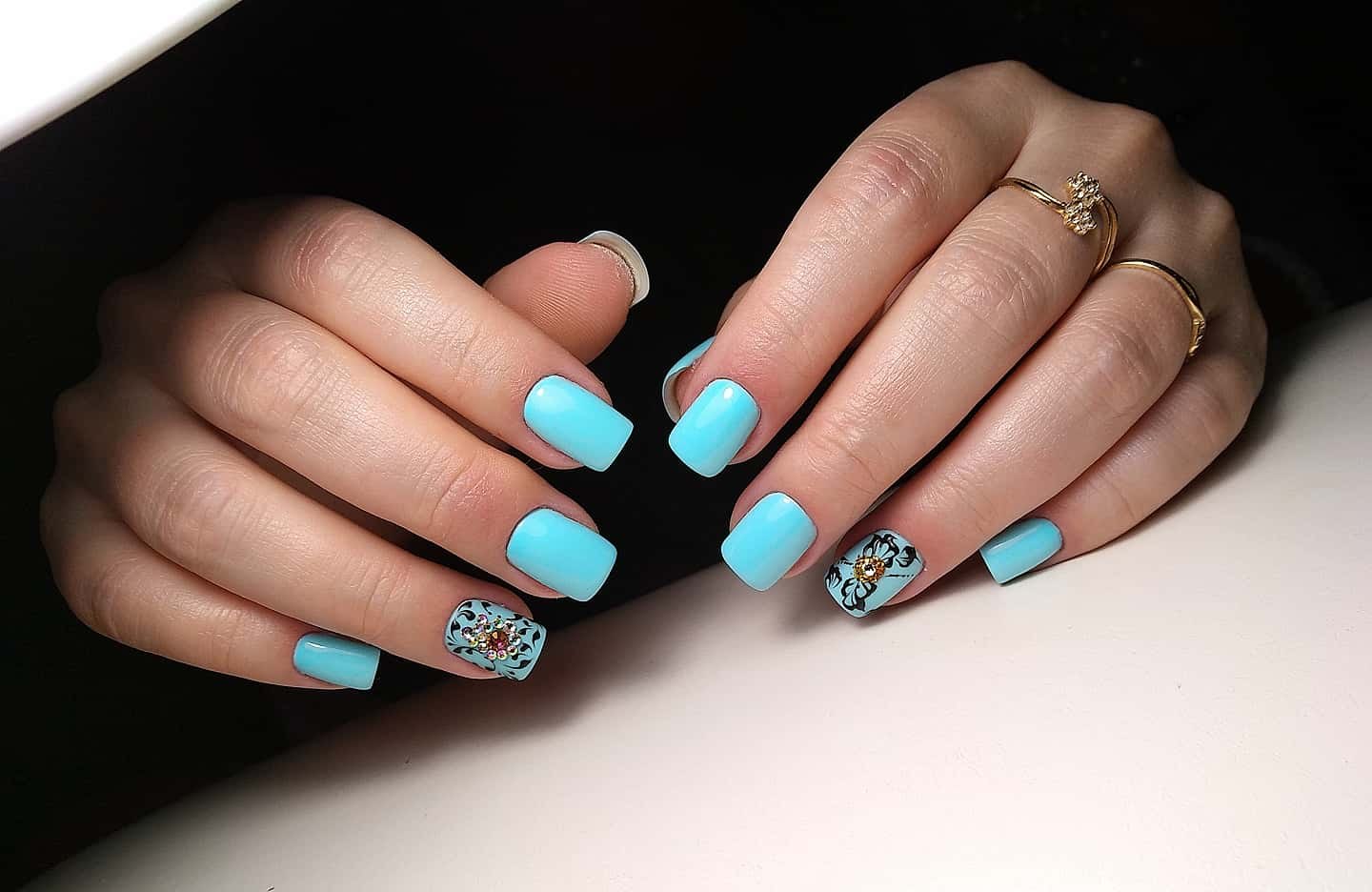 Маникюр в мятно голубых тонах