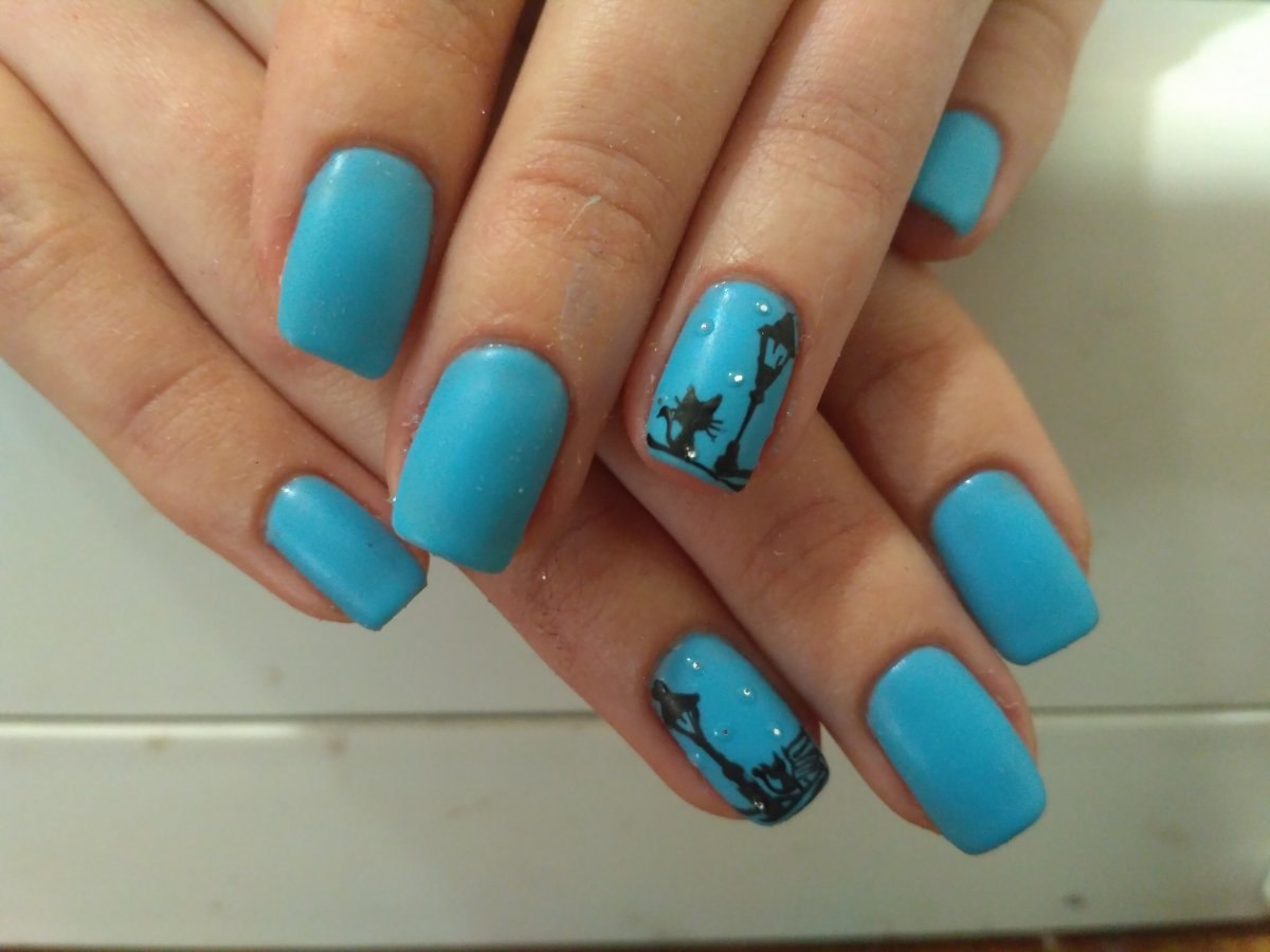 Маникюр голубой морской