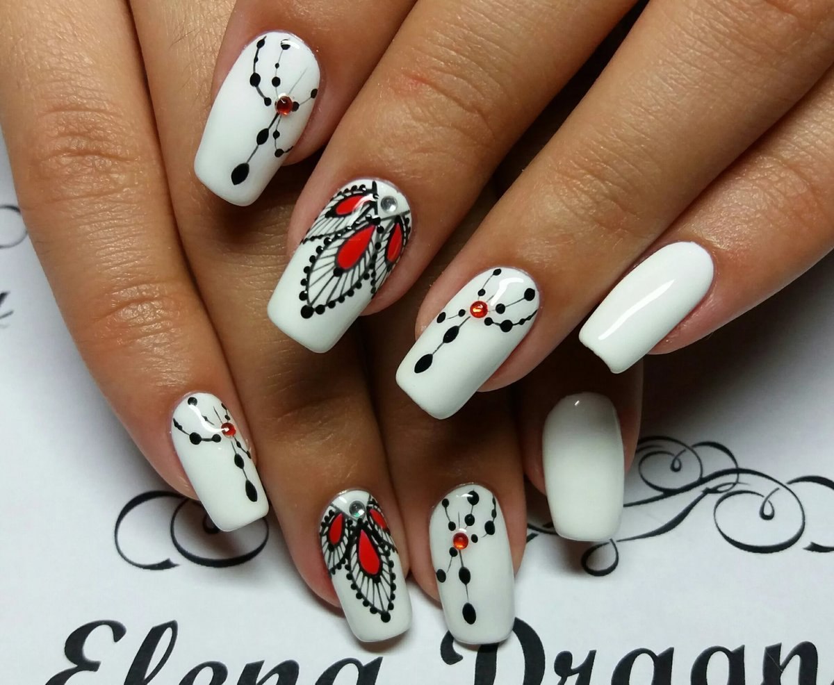 Маникюр белый с рисунком