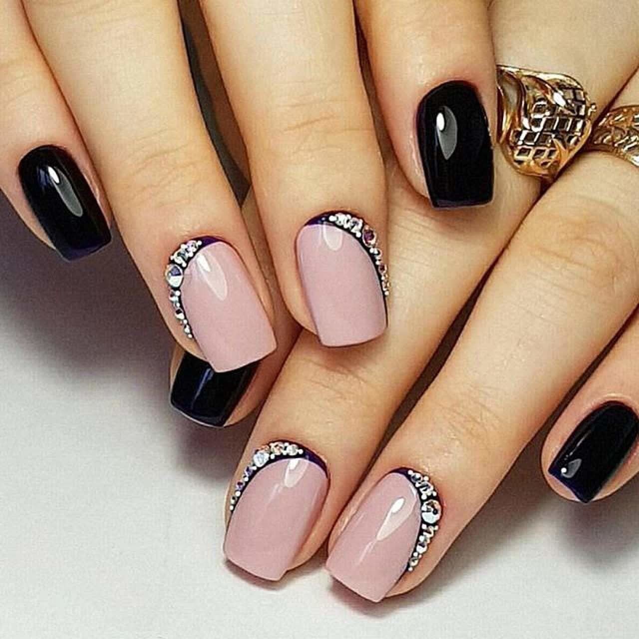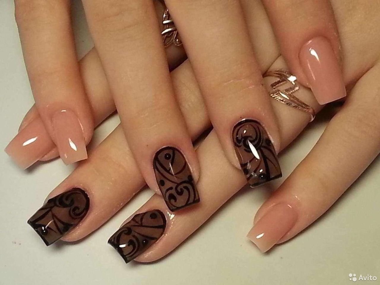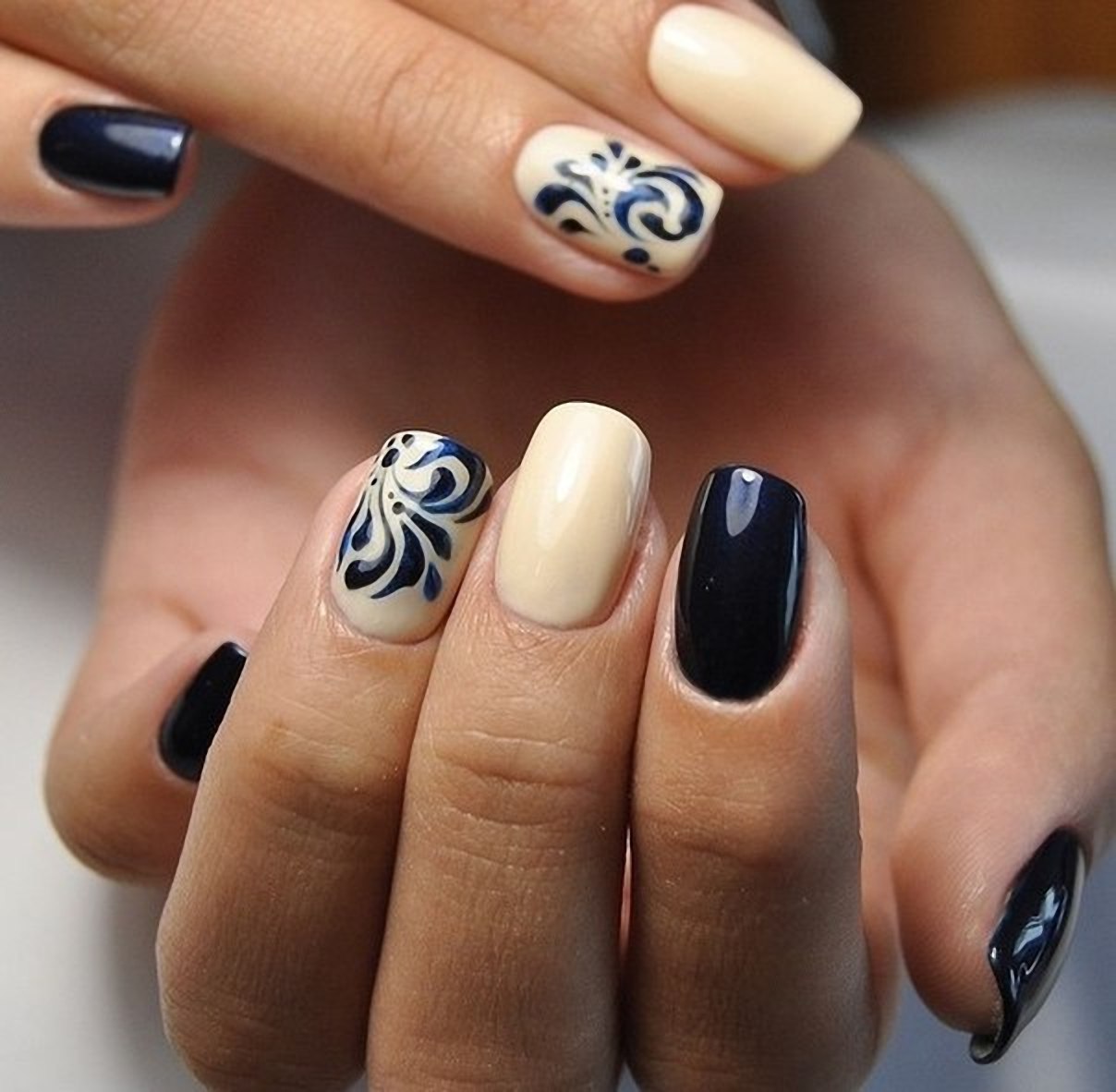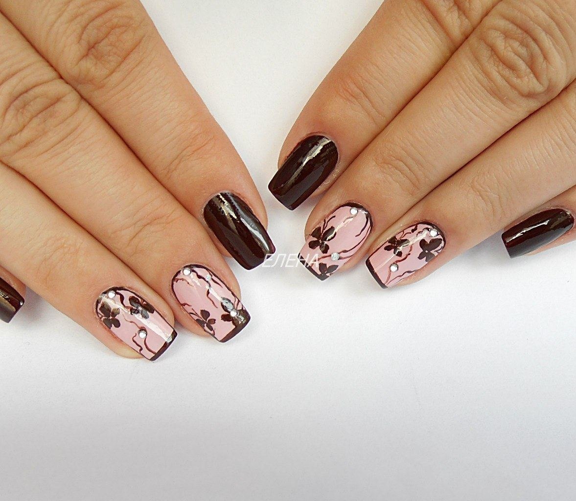 Черно бежевый маникюр