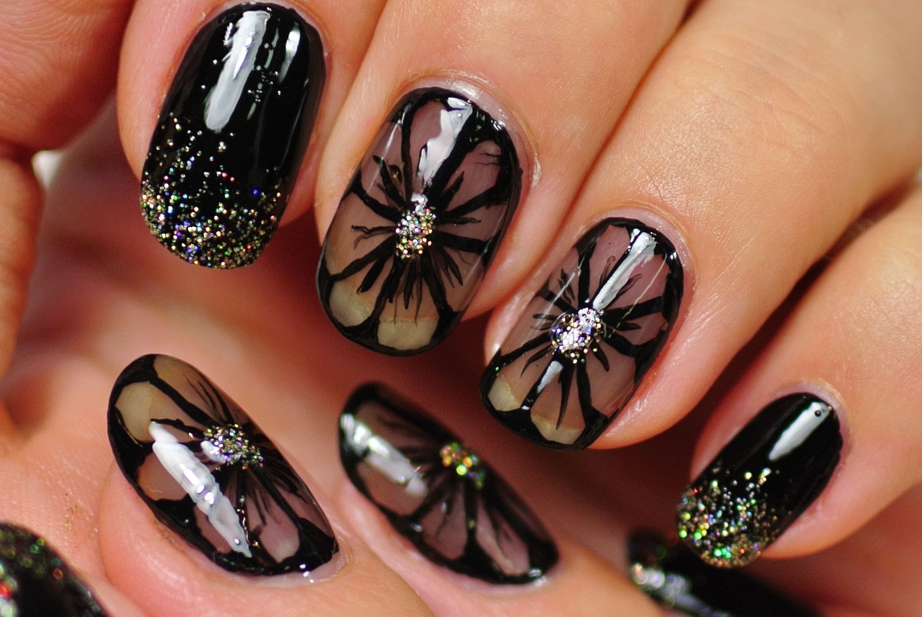 Маникюр прозрачный с цветочками