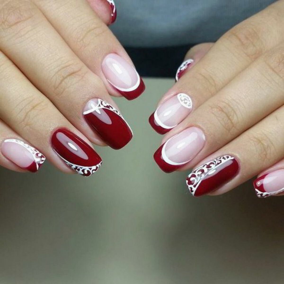 Маникюр на короткие ногти красный с белым