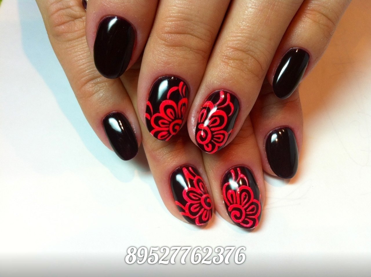 Маникюр черно красный с рисунком