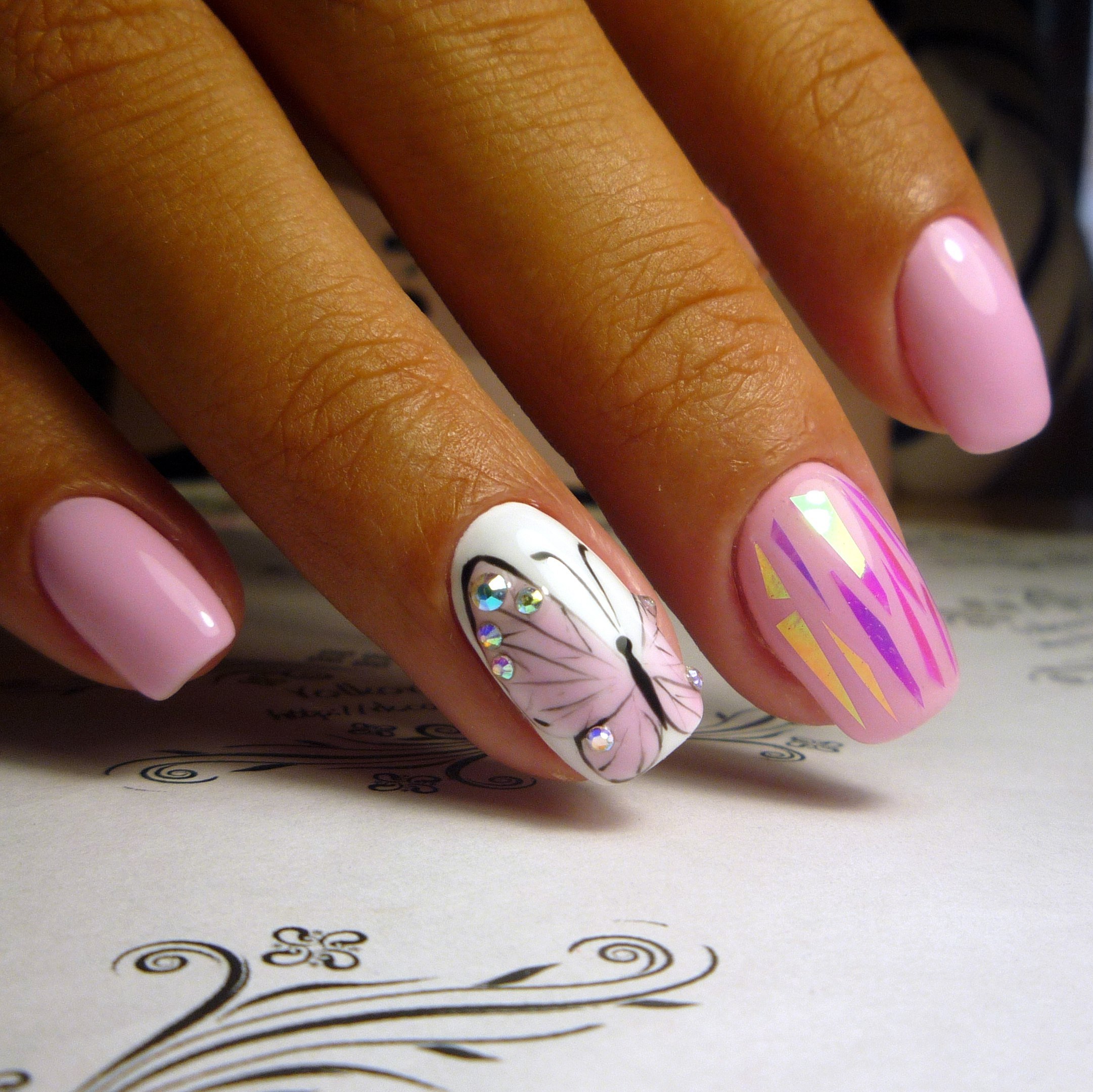 Летний маникюр с бабочками