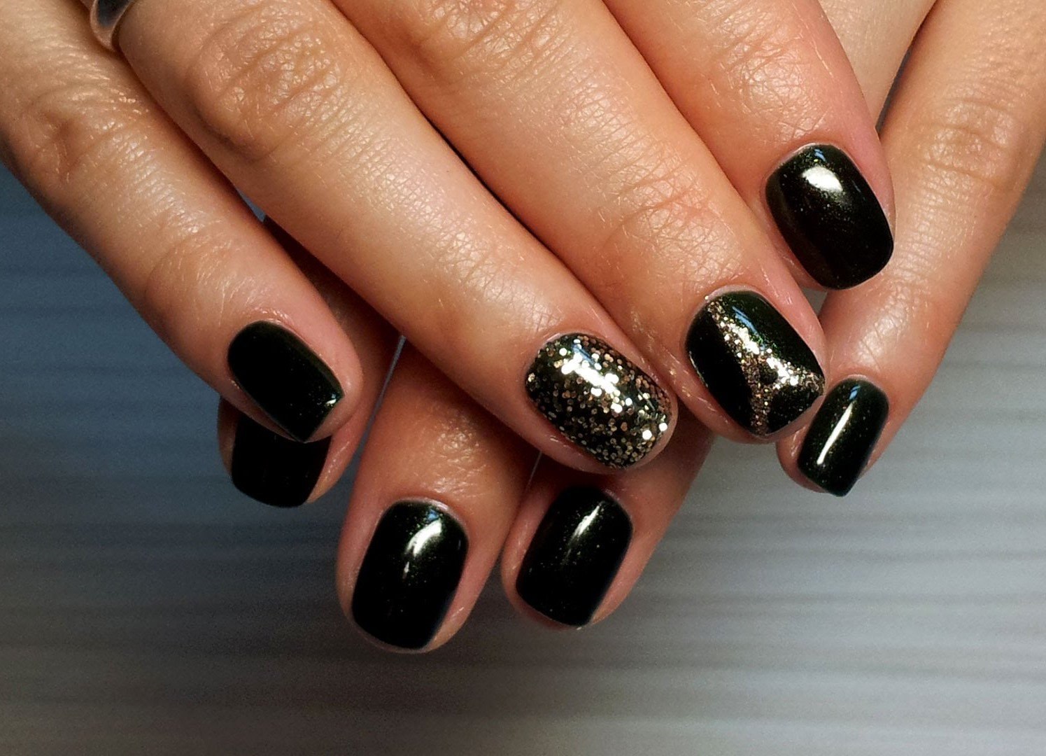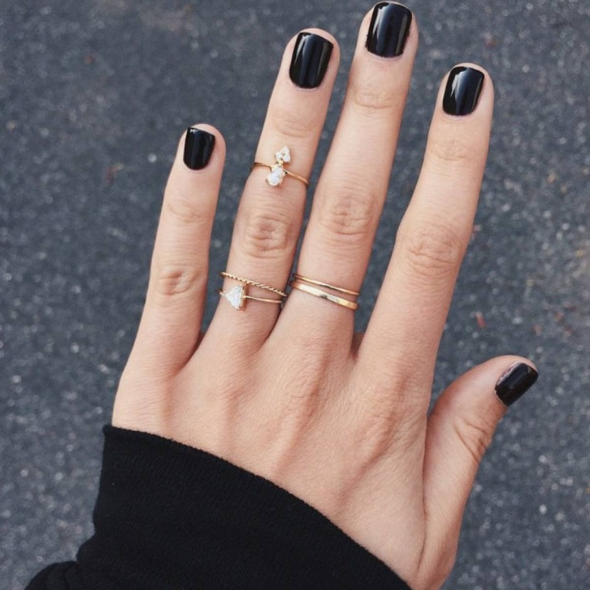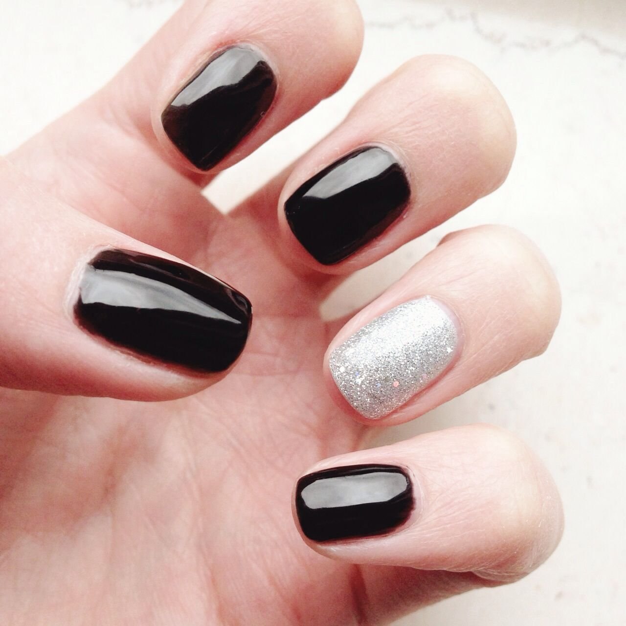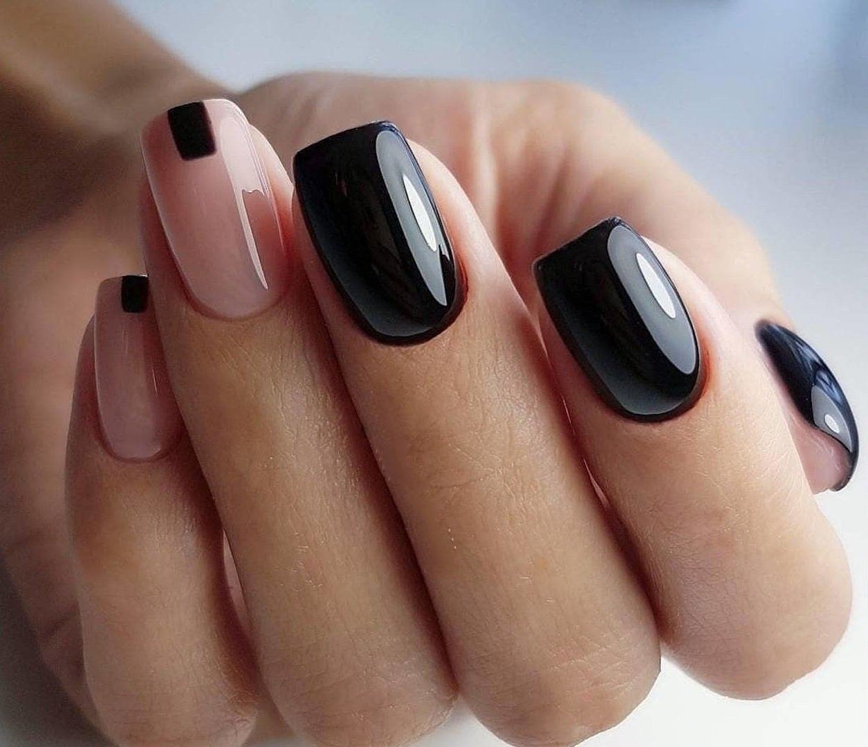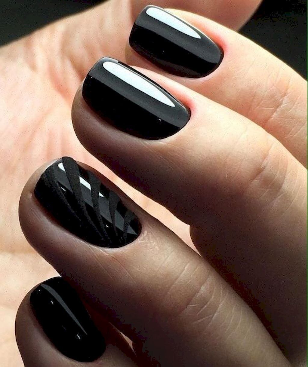Короткие ногти с черным лаком (50 фото)