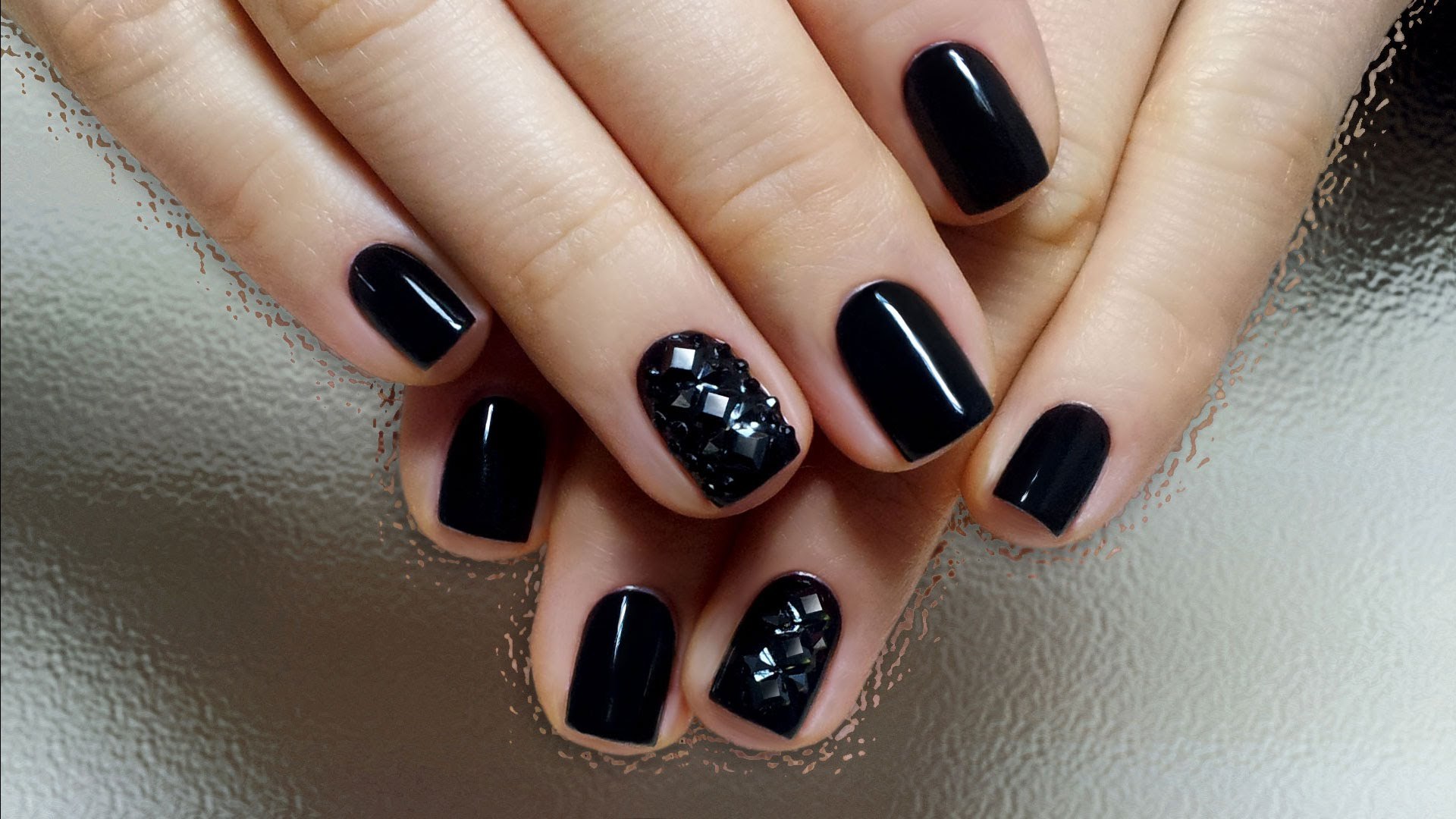 Красивый чёрный маникюр на короткие ногти