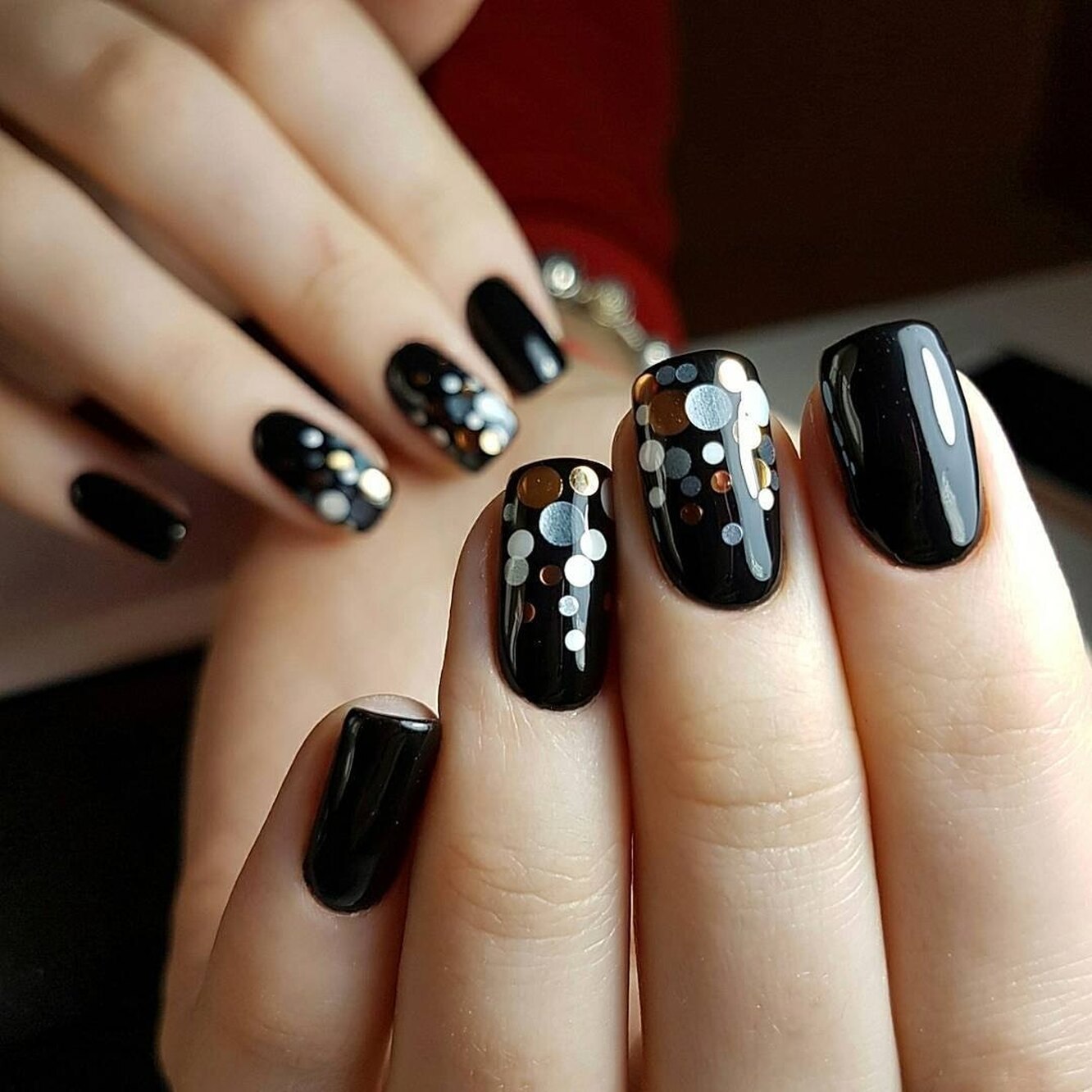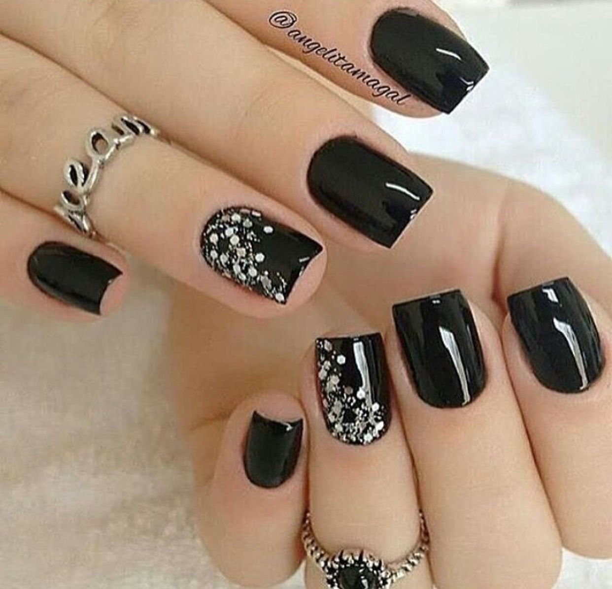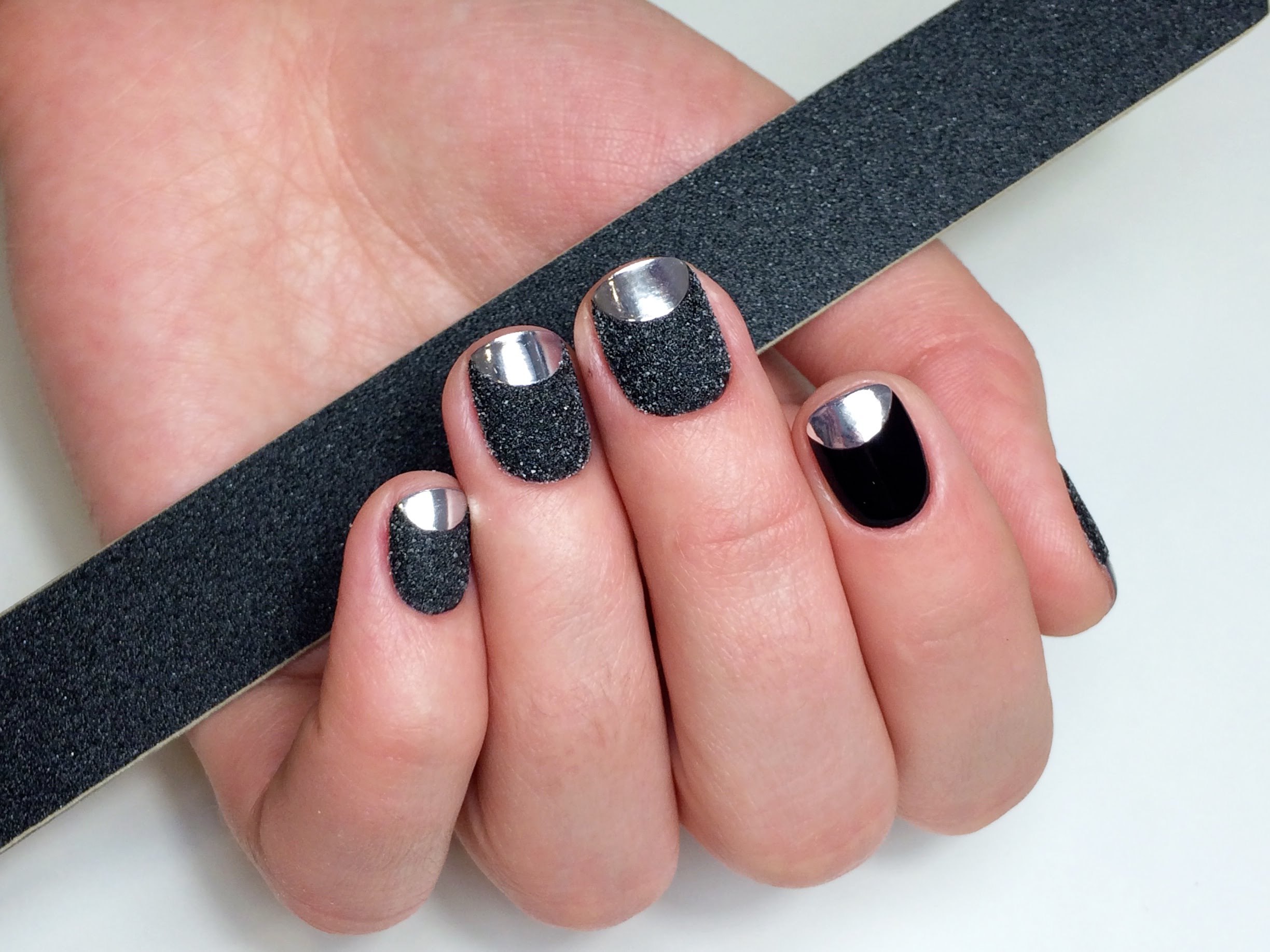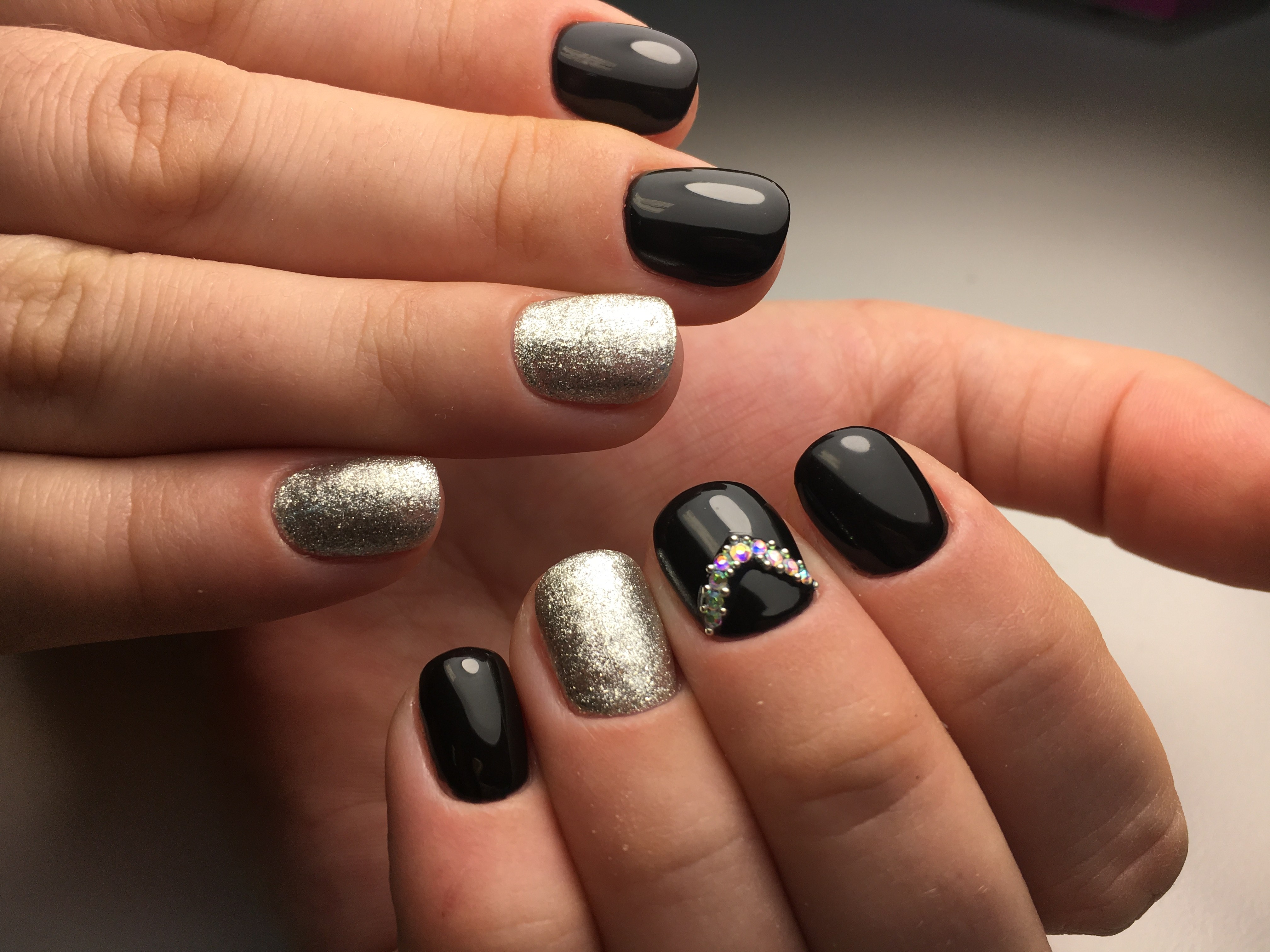 Маникюр чёрный с серебром