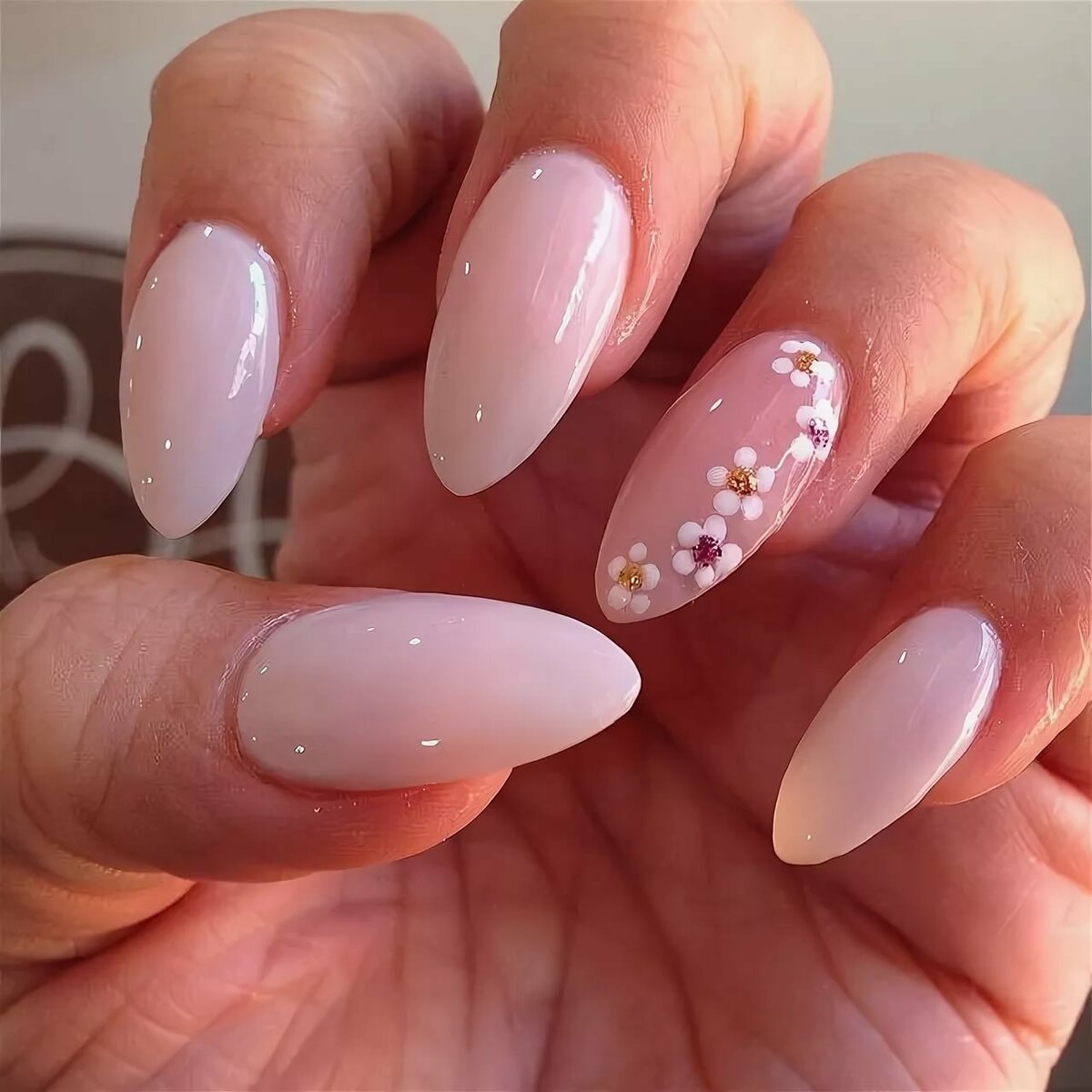 Весенний нюдовый маникюр на миндаль