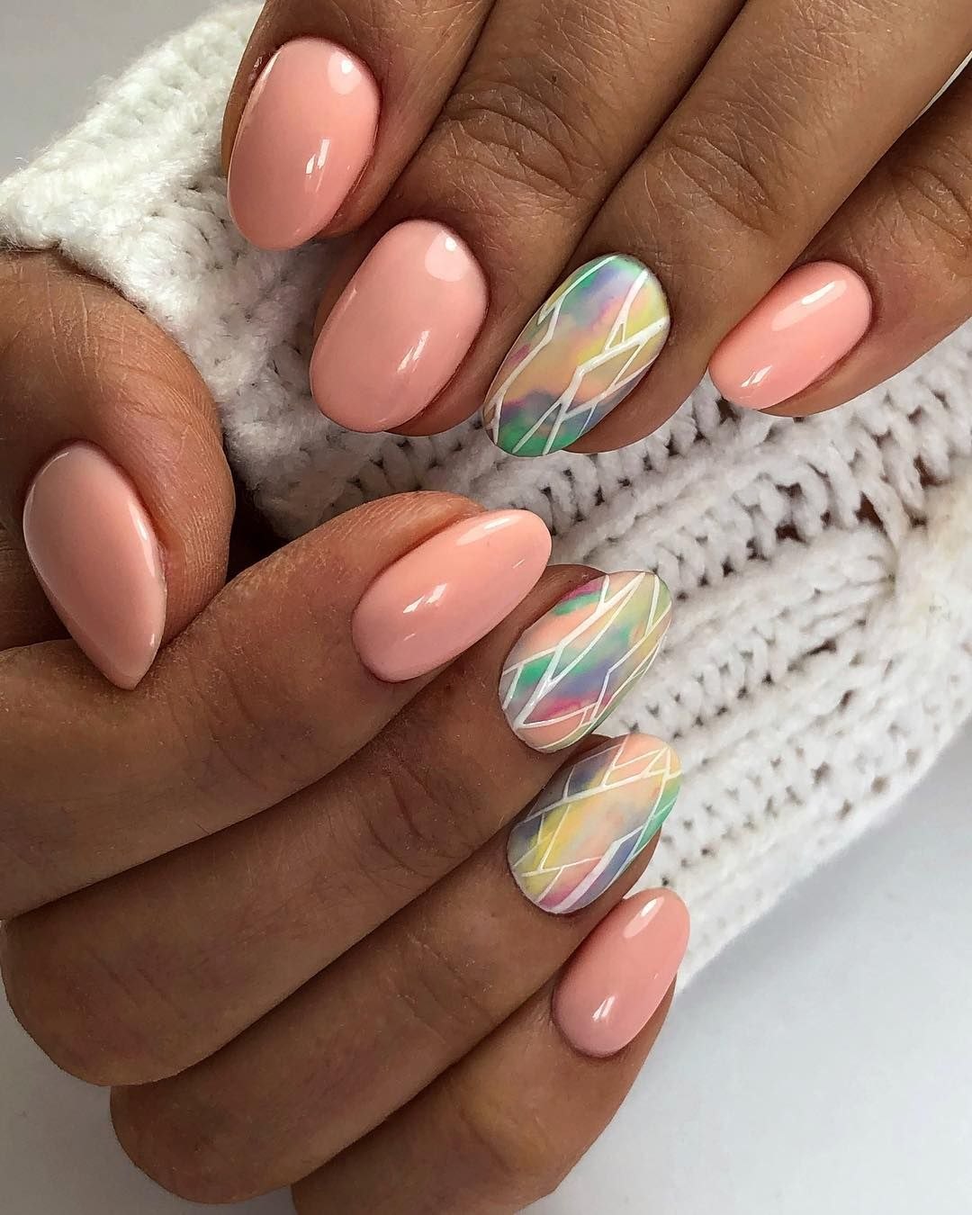 Маникюр нюд разноцветный