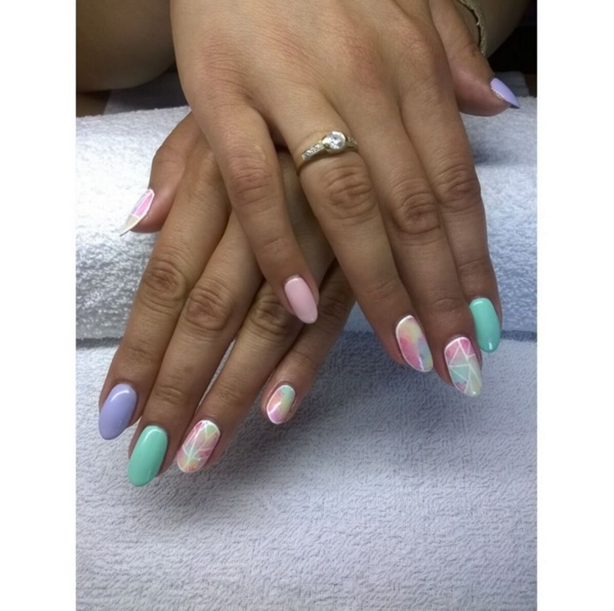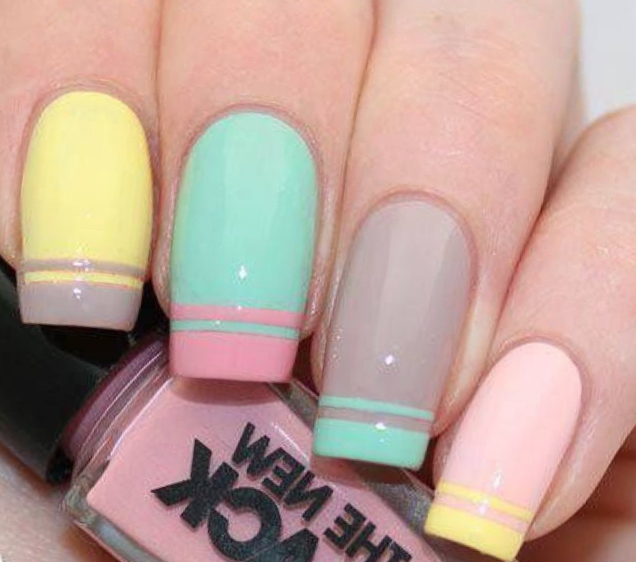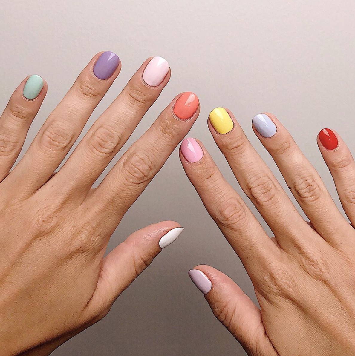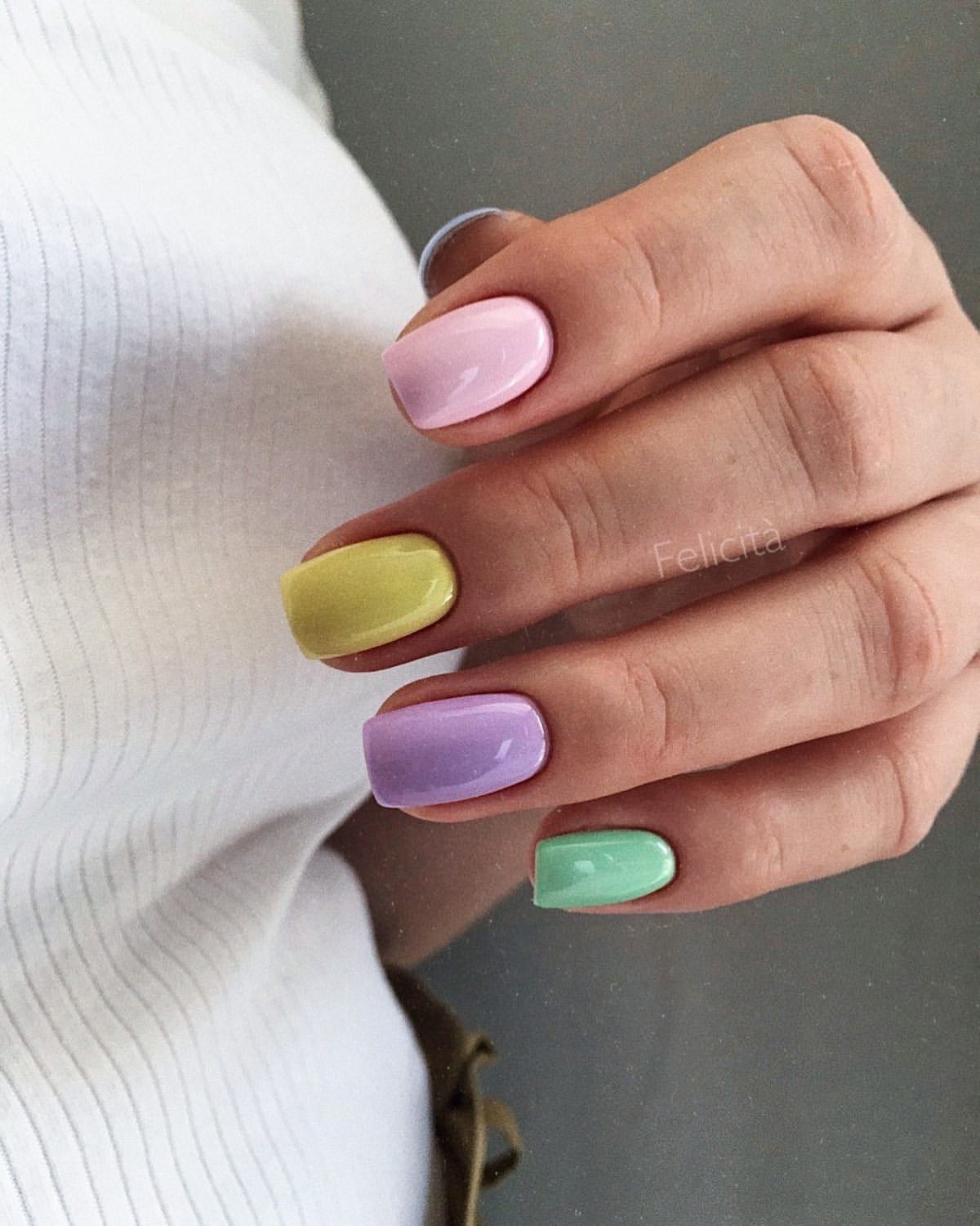 Разноцветные ногти в пастельных тонах