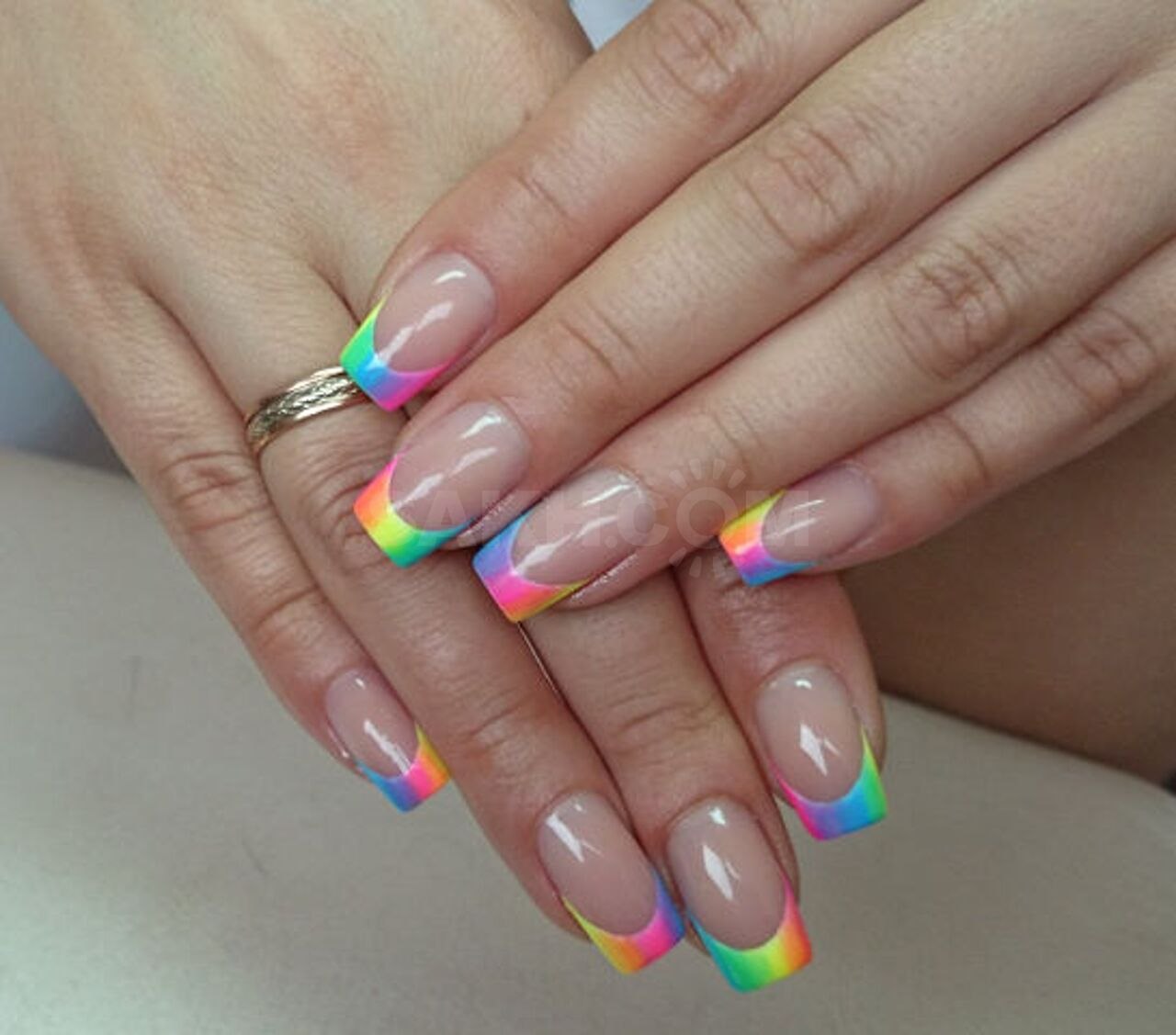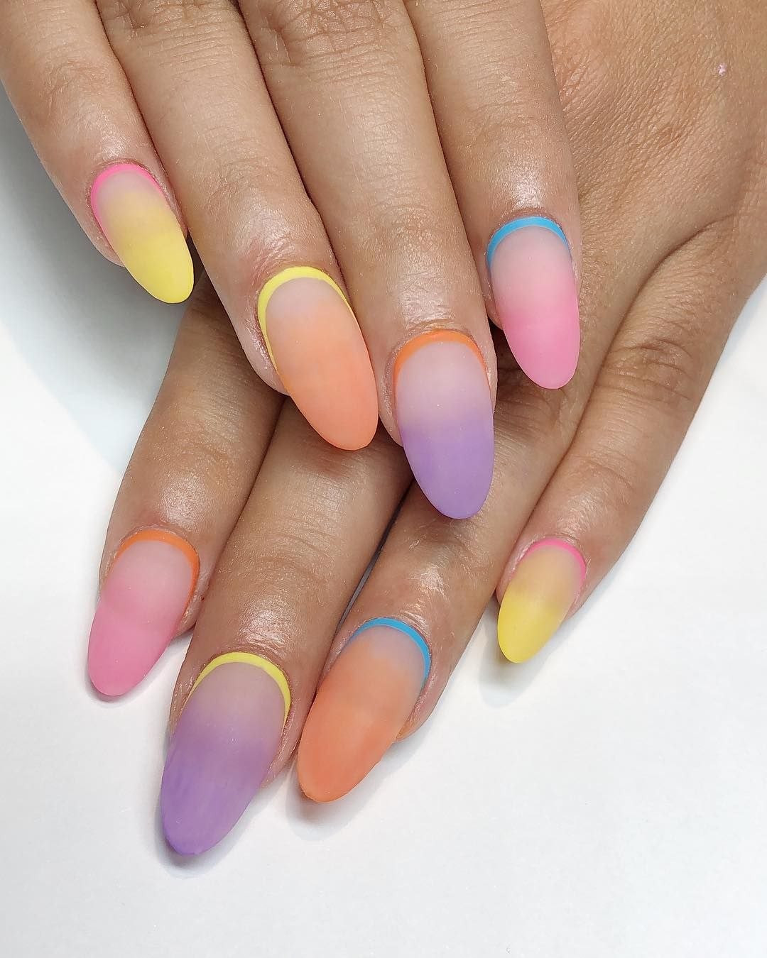 Френч на миндальные ногти Радужный