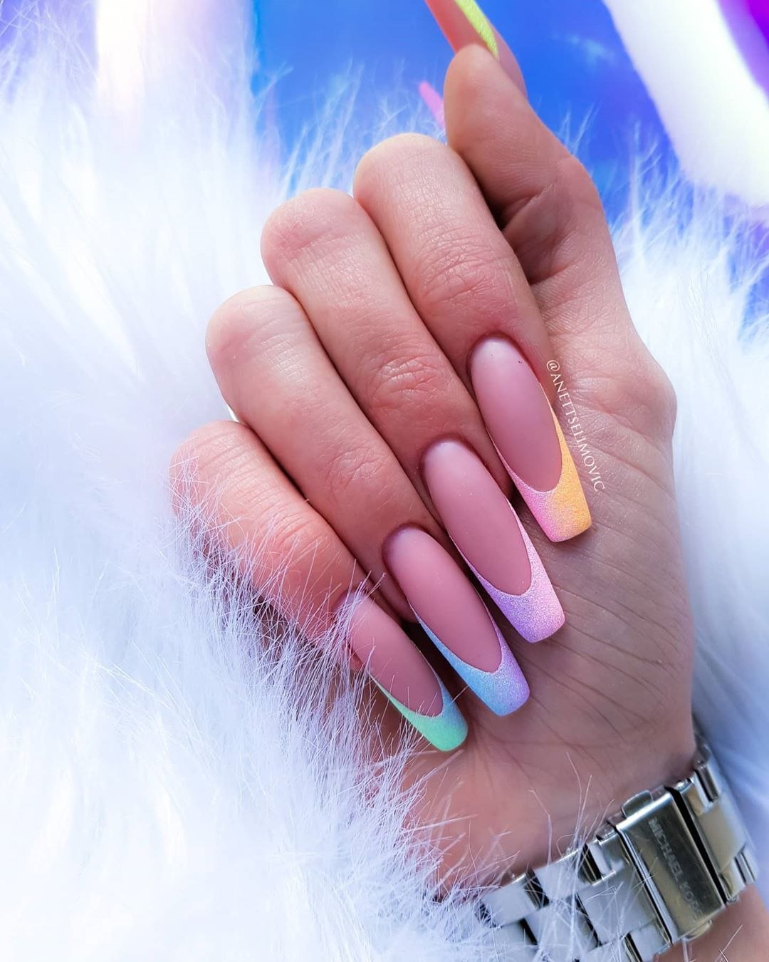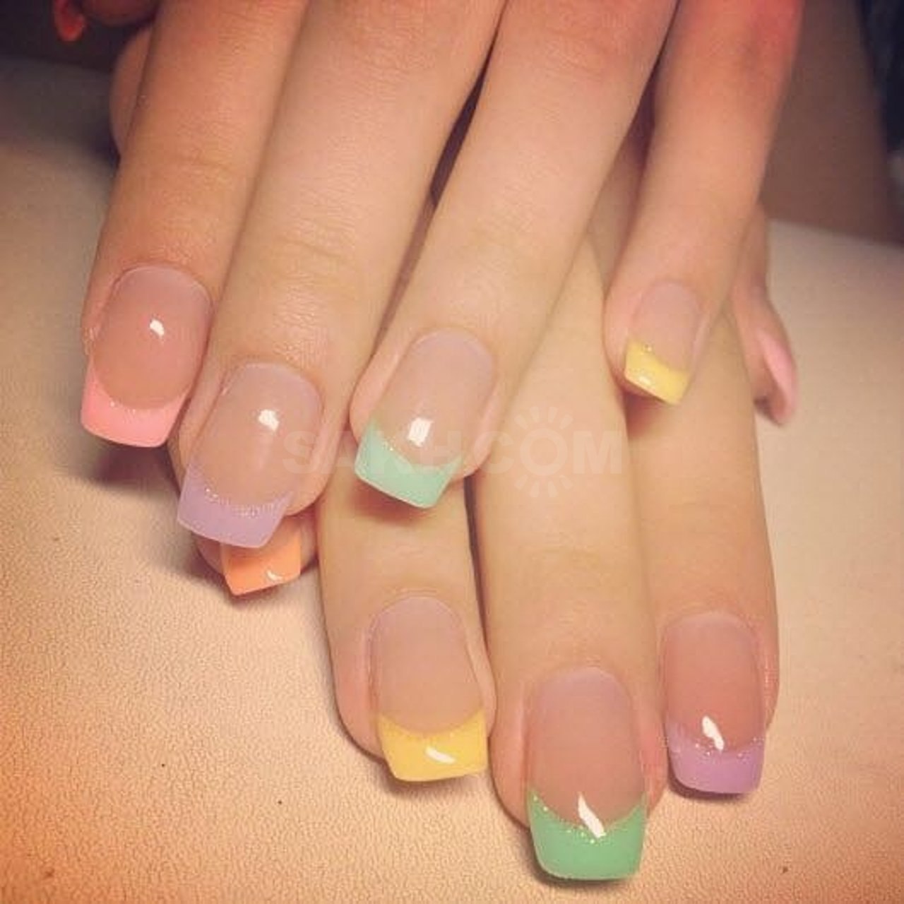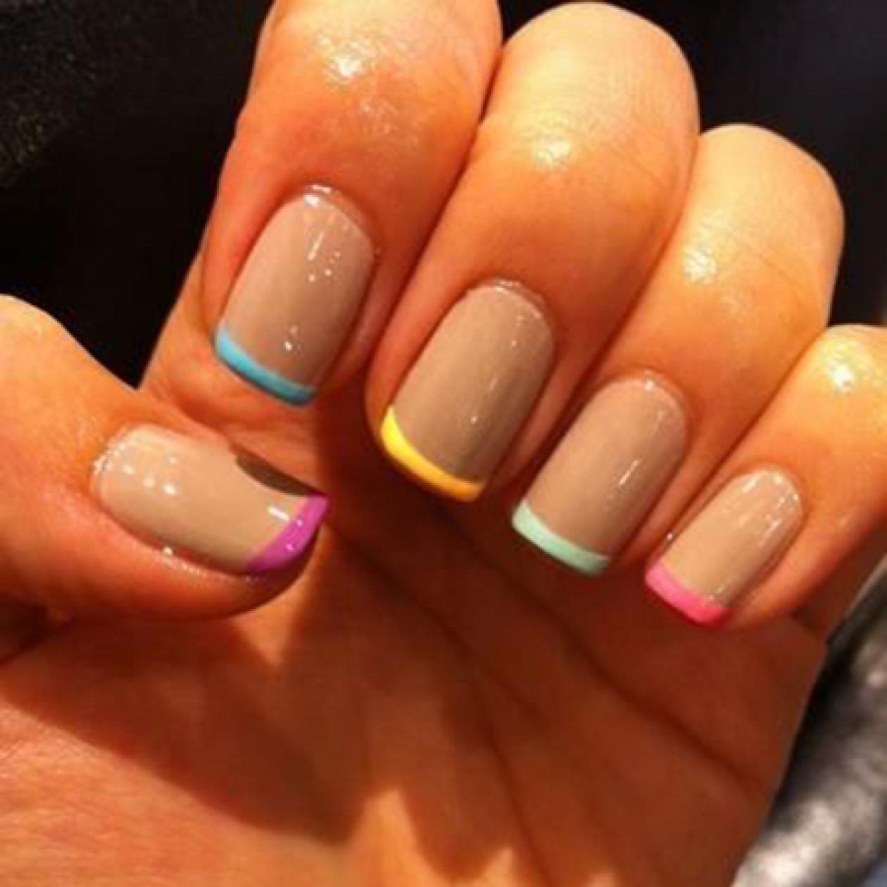 Маникюр френч разноцветный пастельный (46 фото)