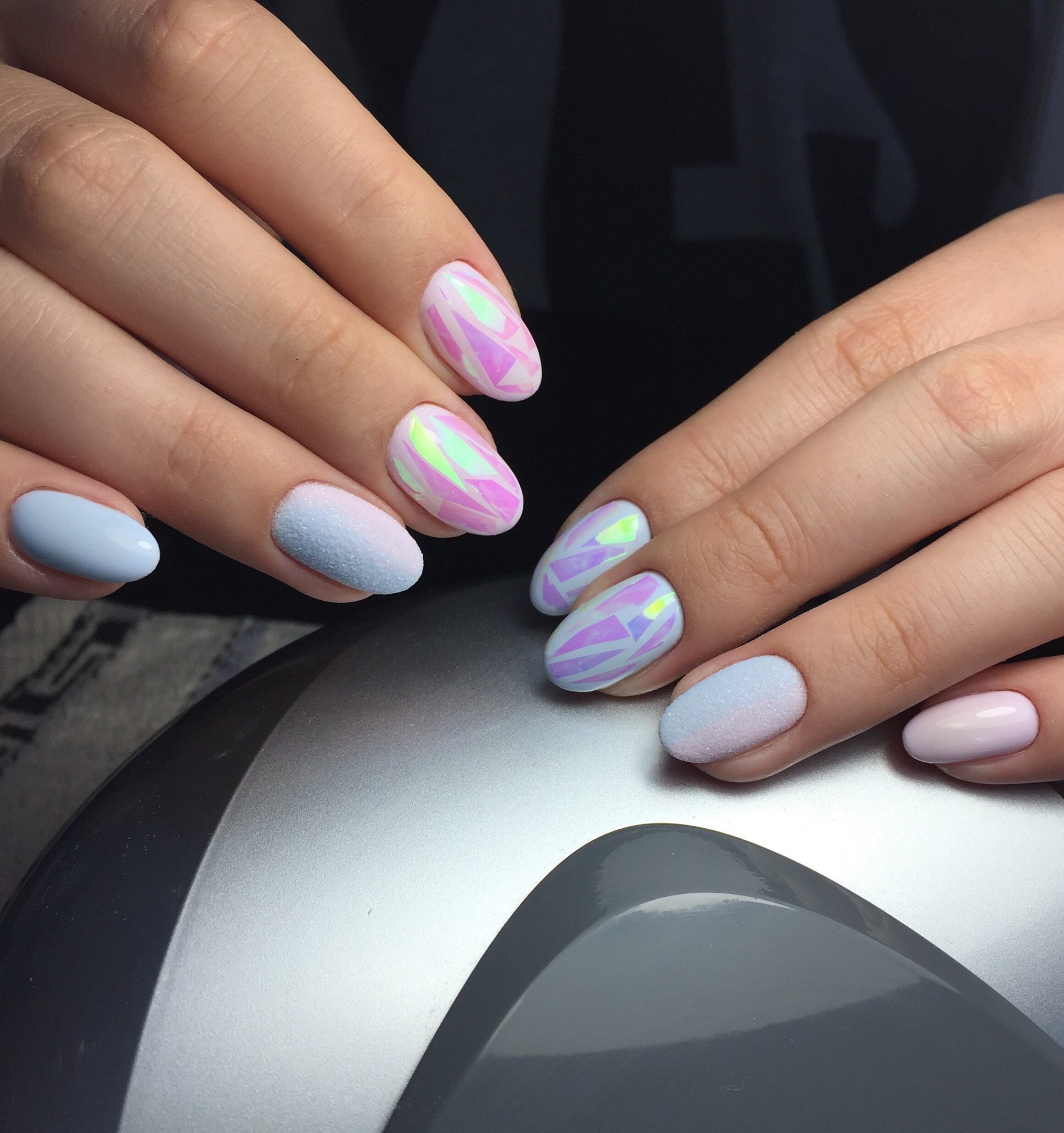 Маникюр разноцветный в пастельных
