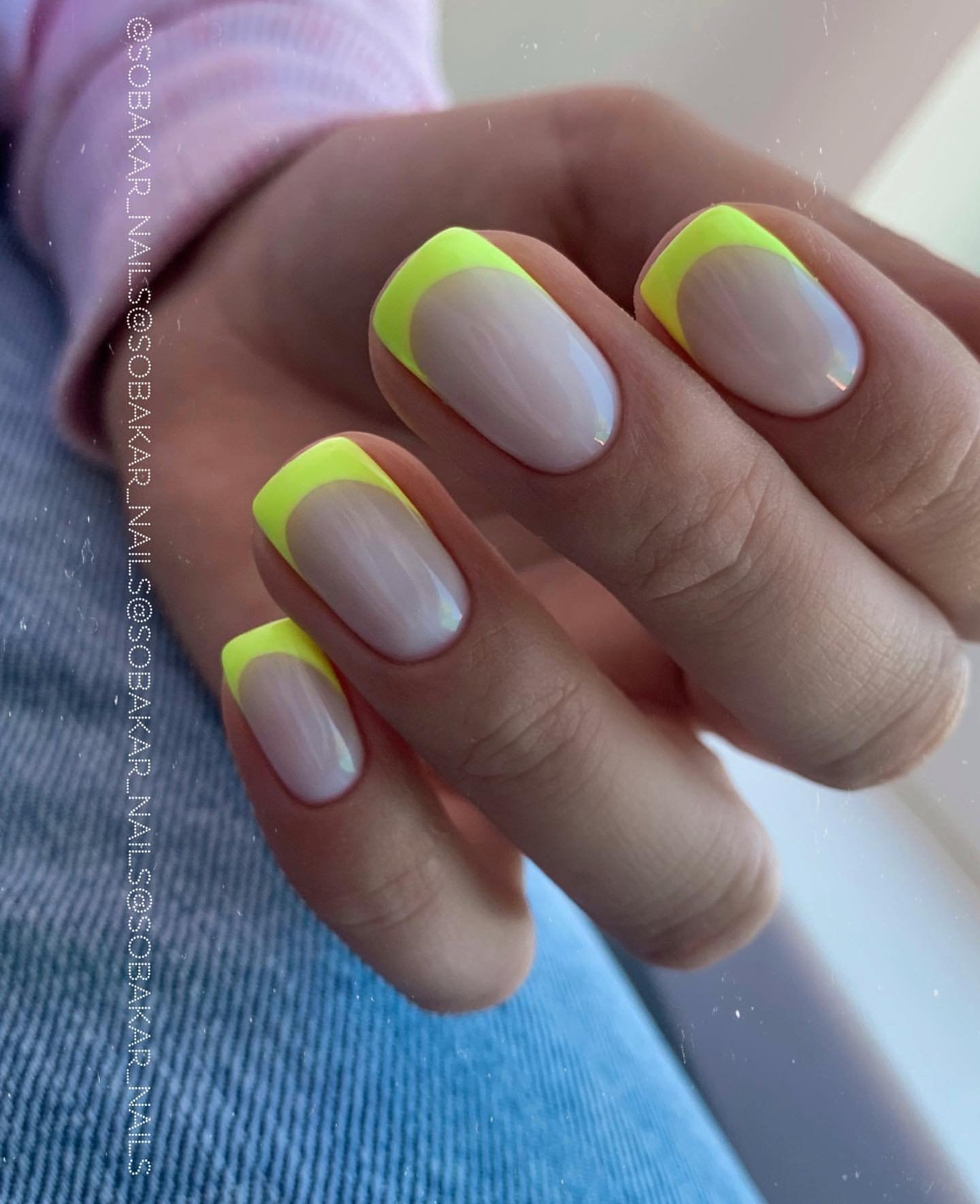 Цветной френч на короткие ногти