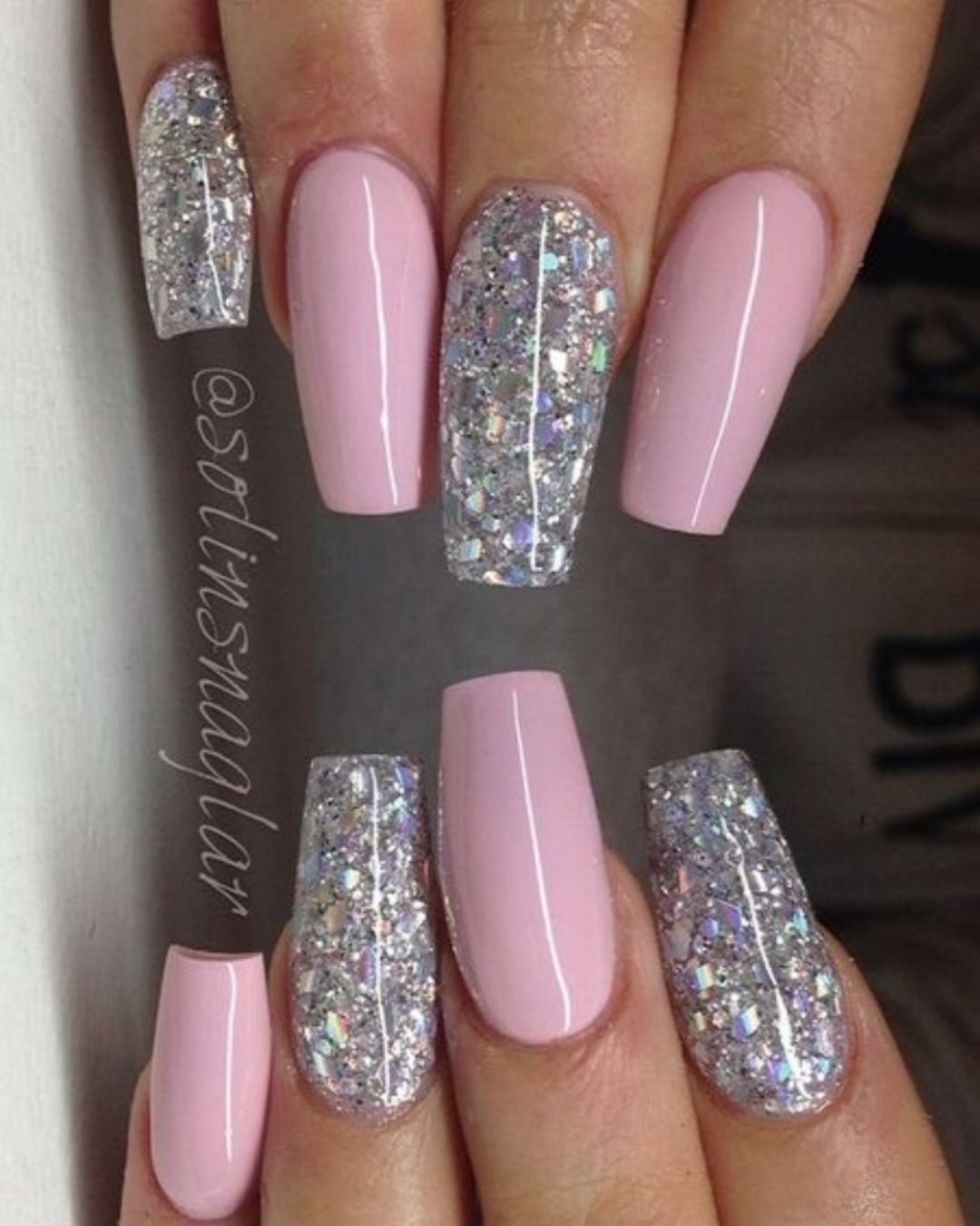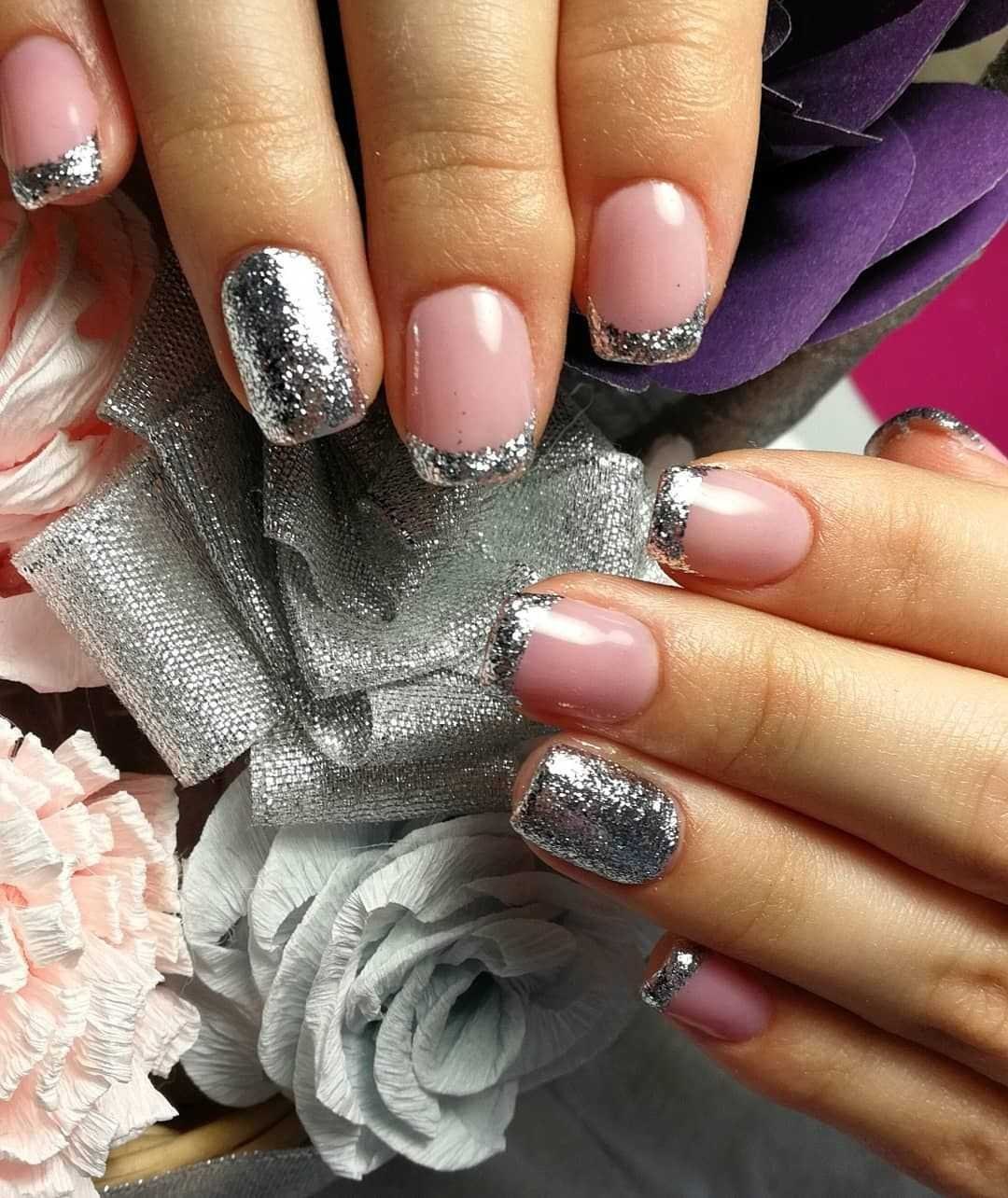 Ногти розовые с серебром