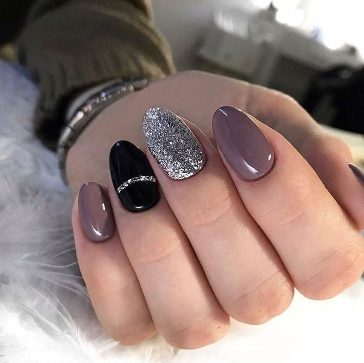Маникюр серебристый с черным