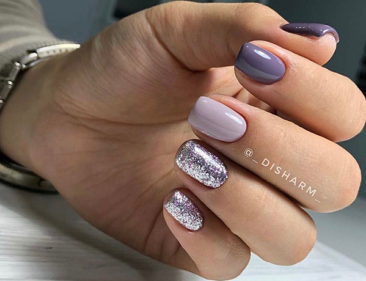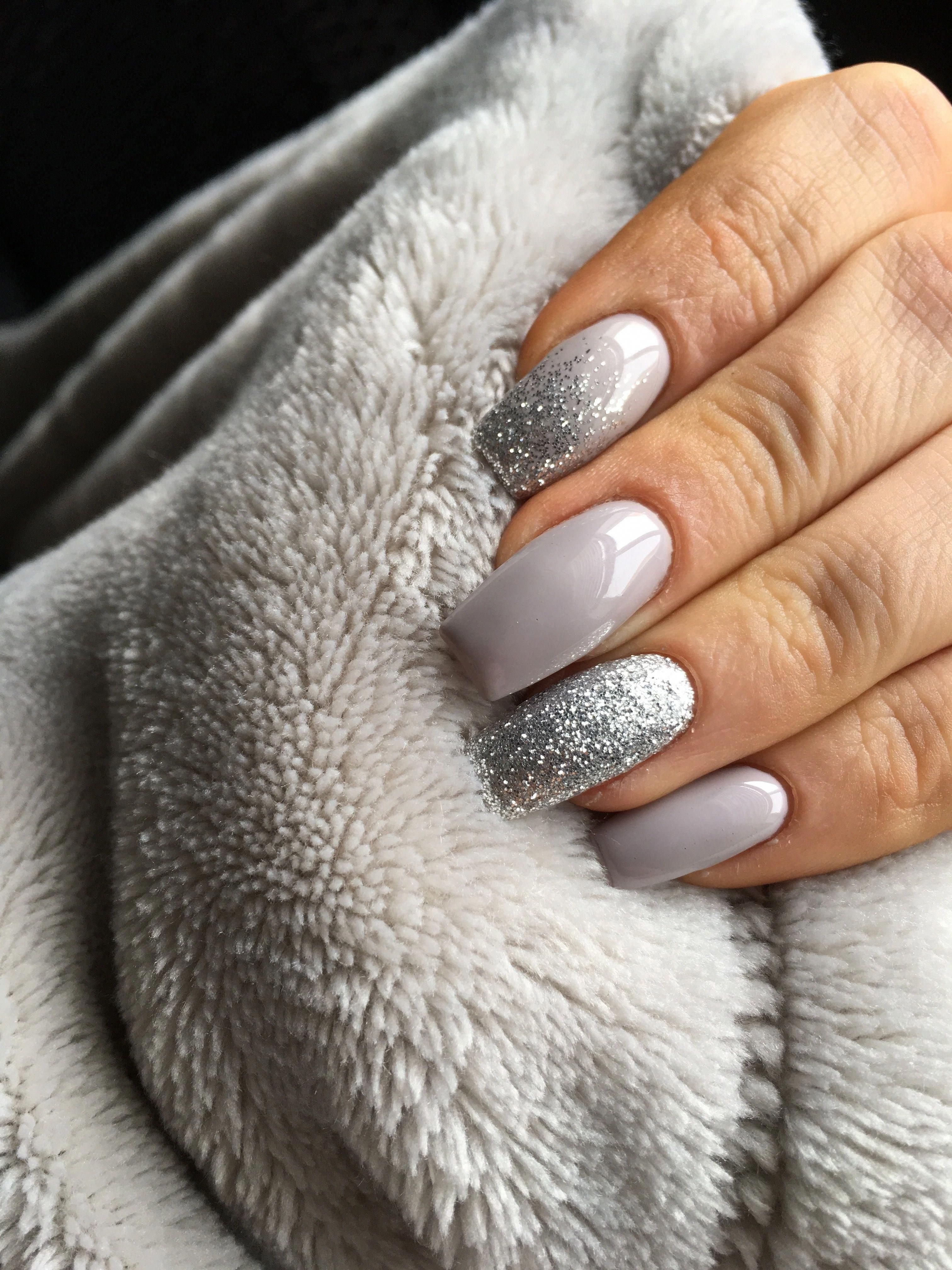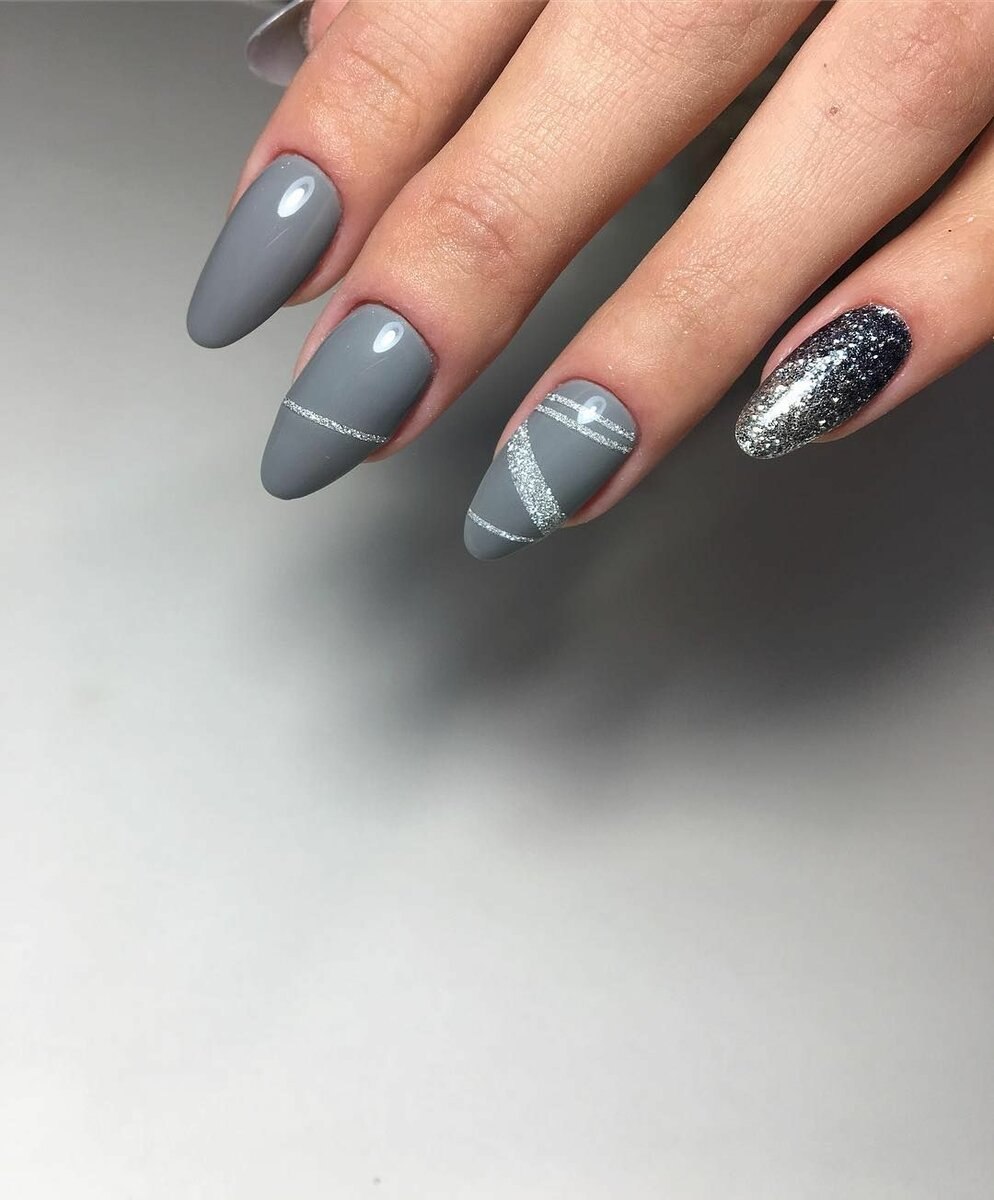 Маникюр серый с блестками