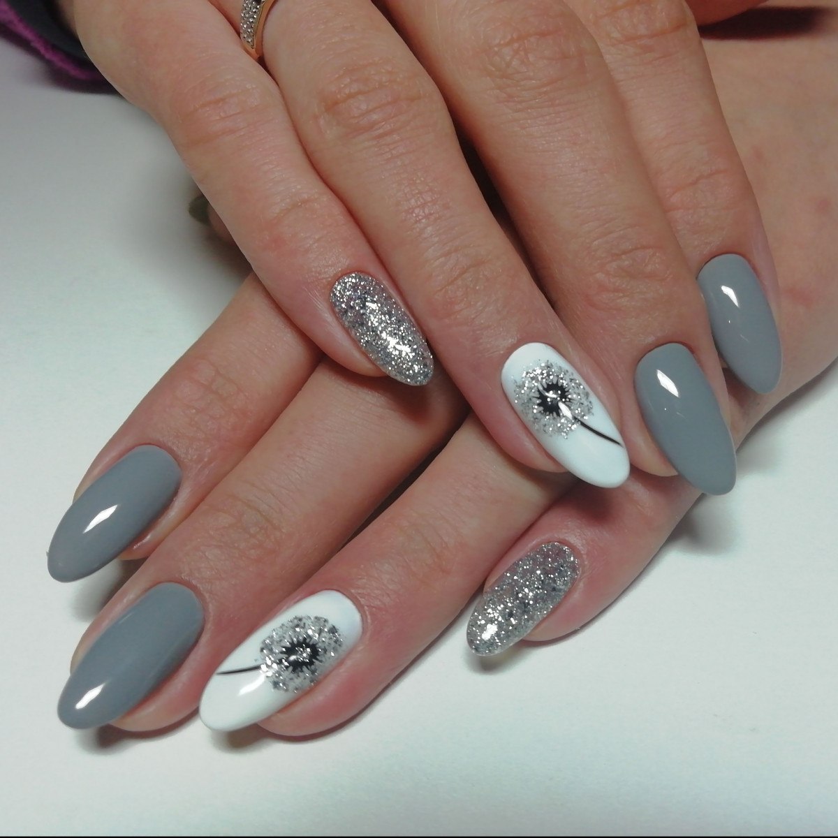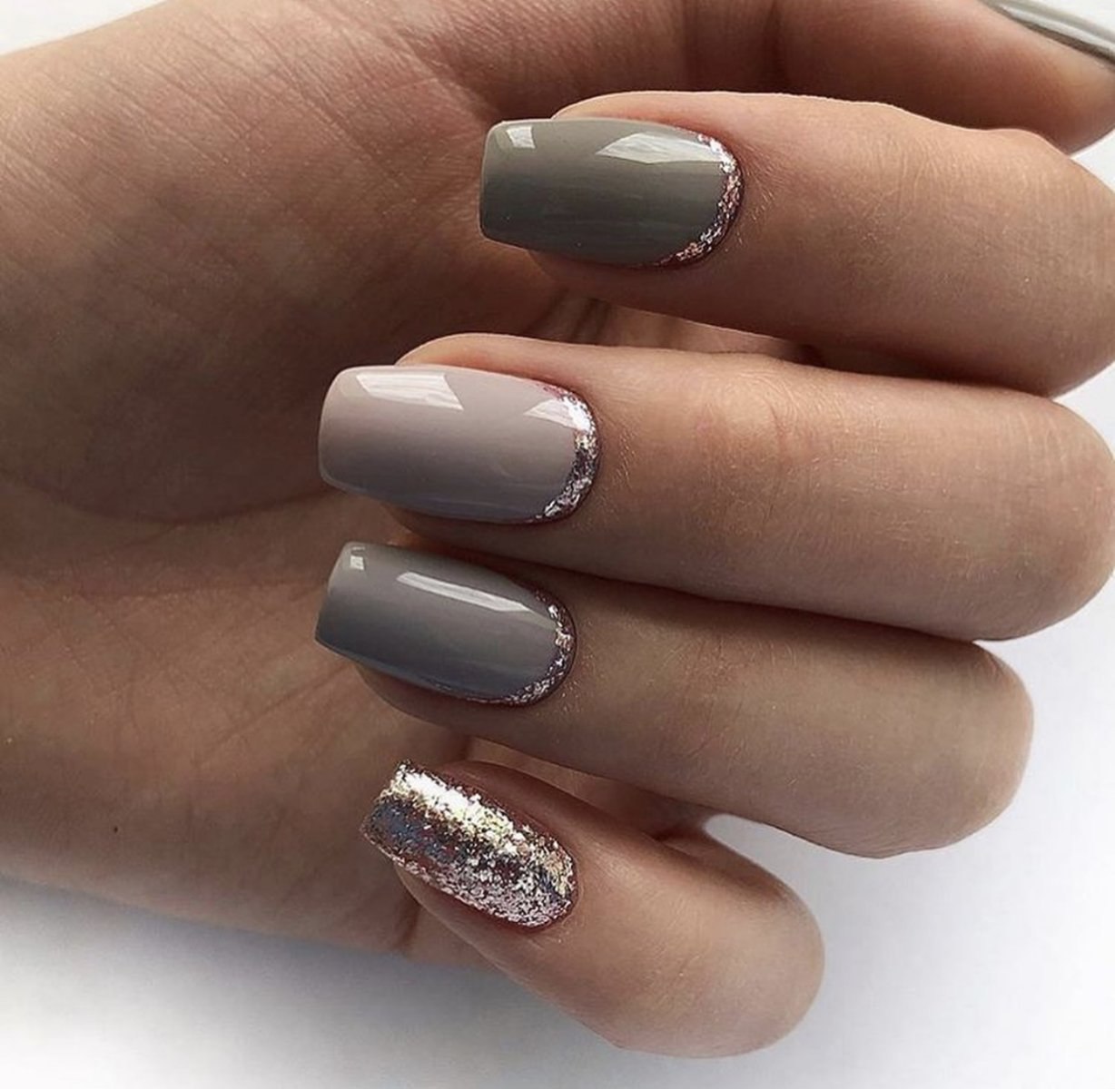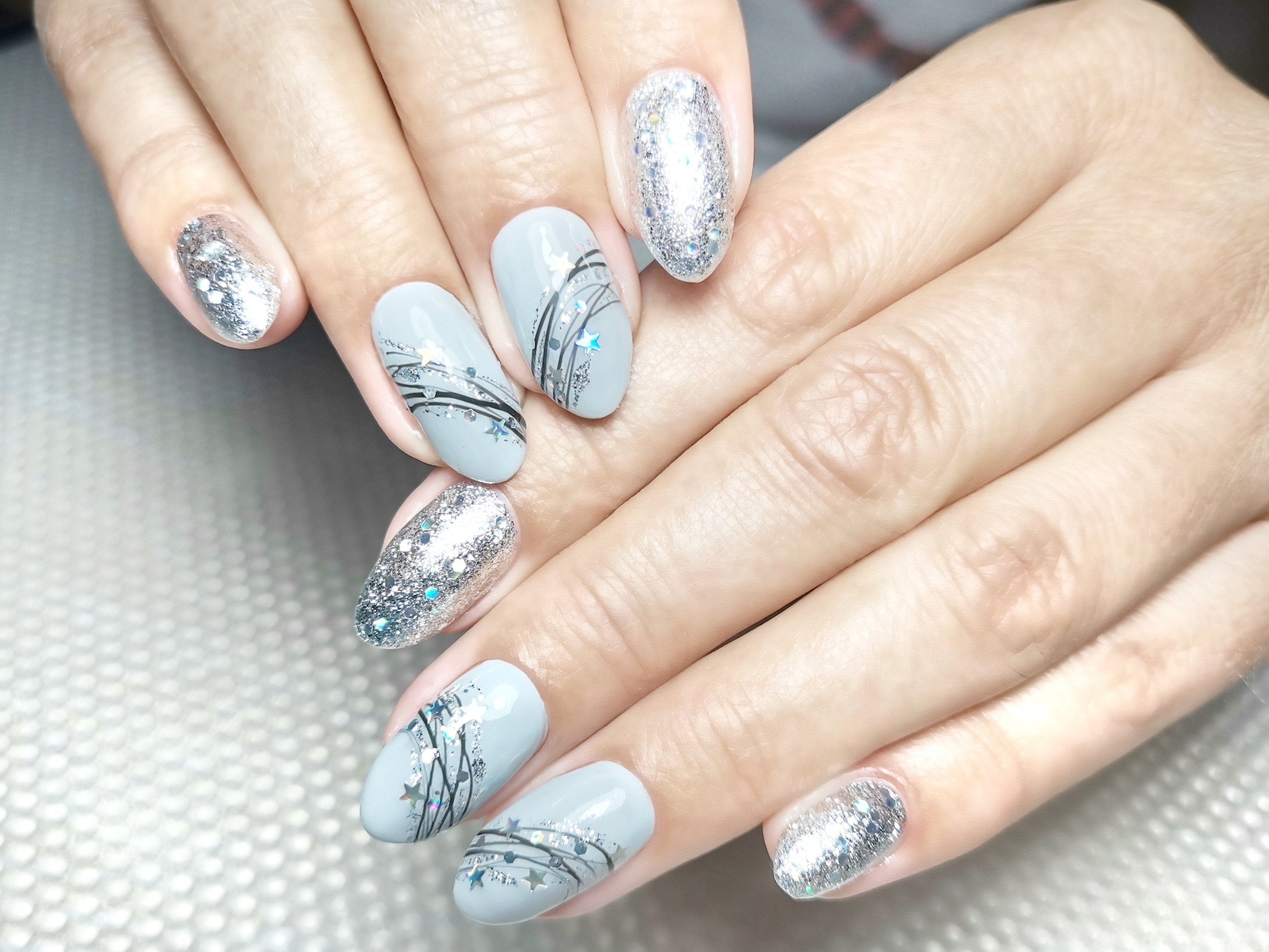 Маникюр серый с блестками