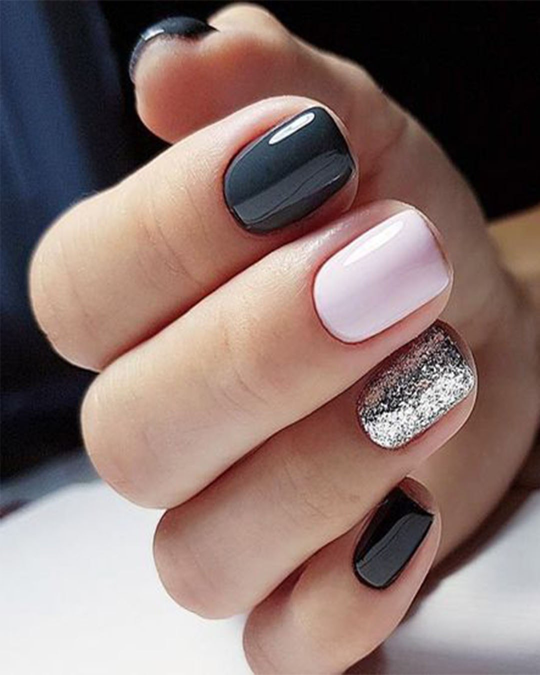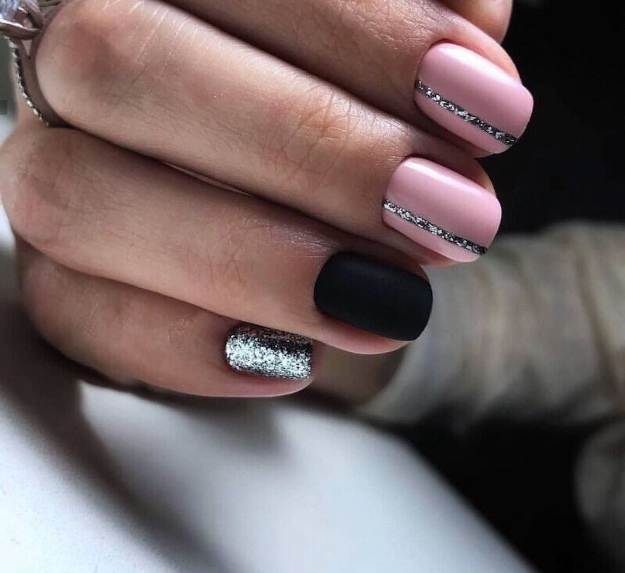 Маникюр черный с розовым и серебристым