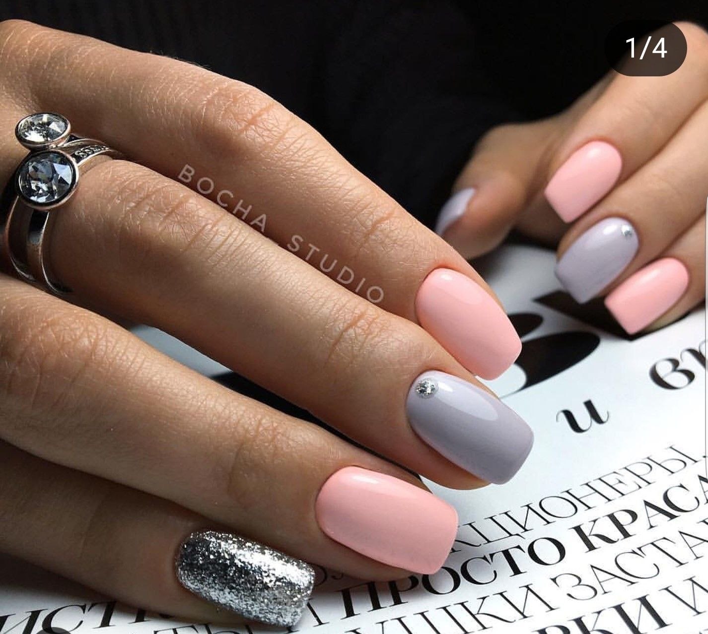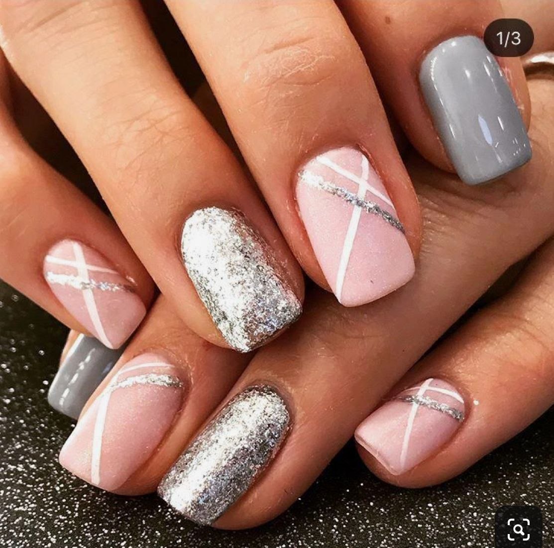 Дизайн ногтей серый с розовым и серебристым (27 фото)