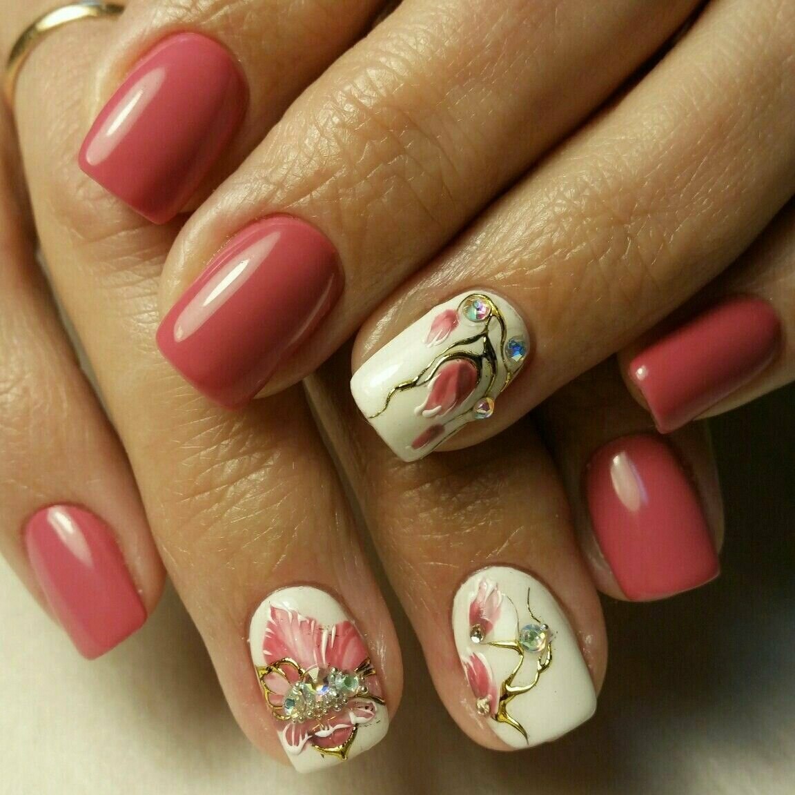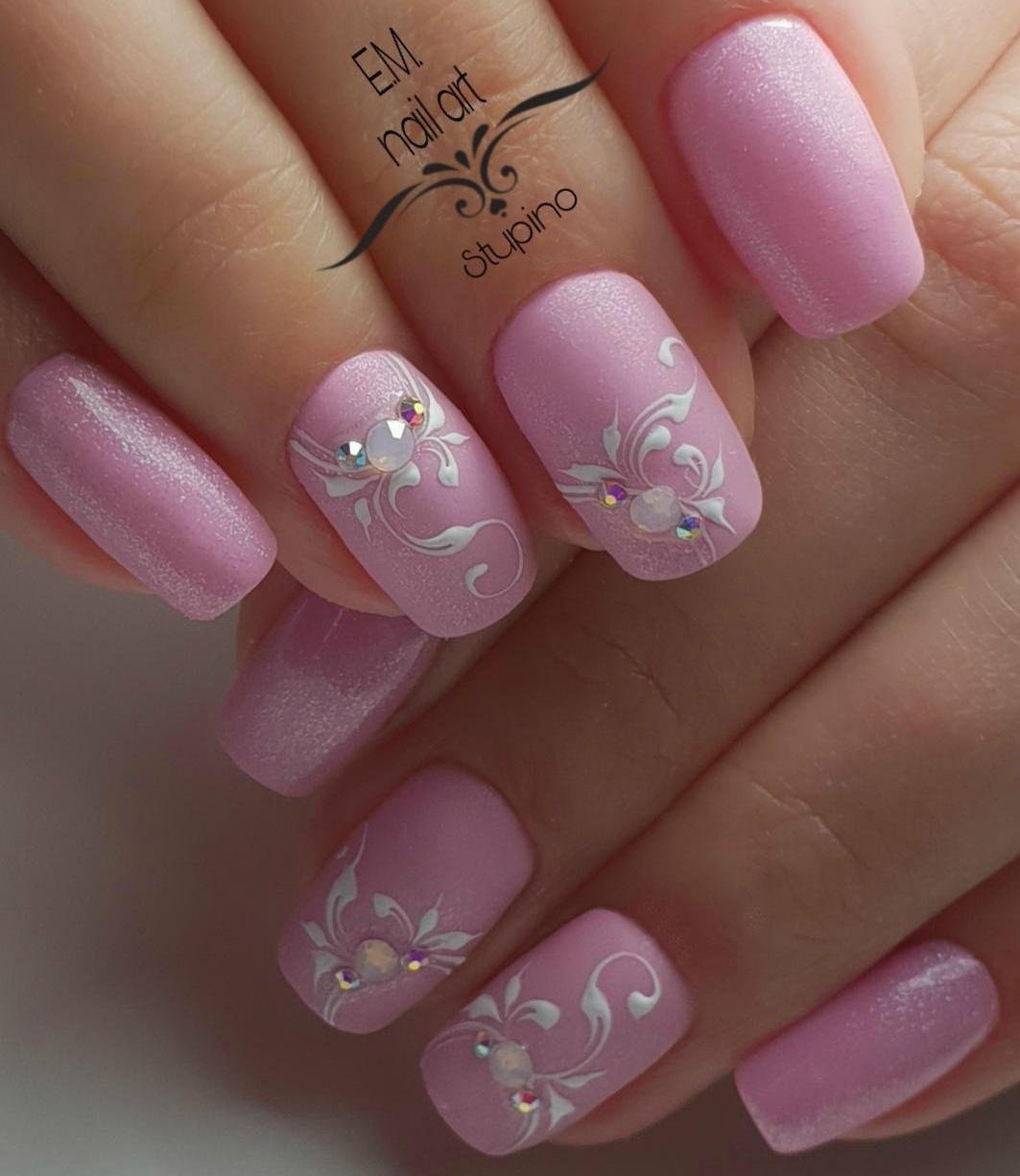 Маникюр розовый с цветочками