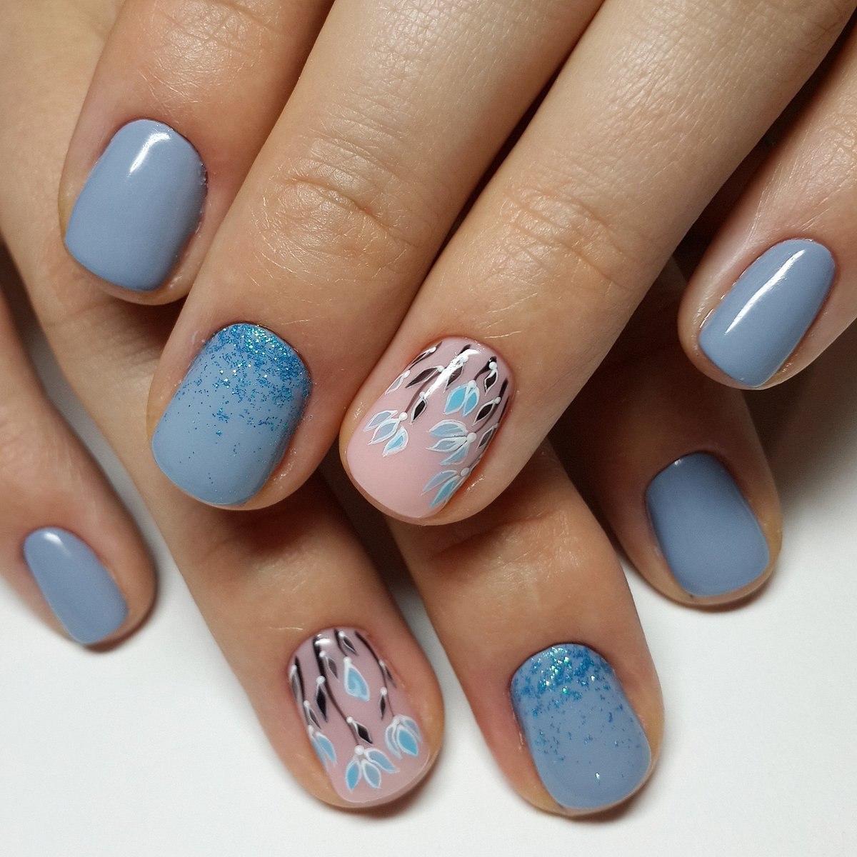 Маникюр в голубых тонах