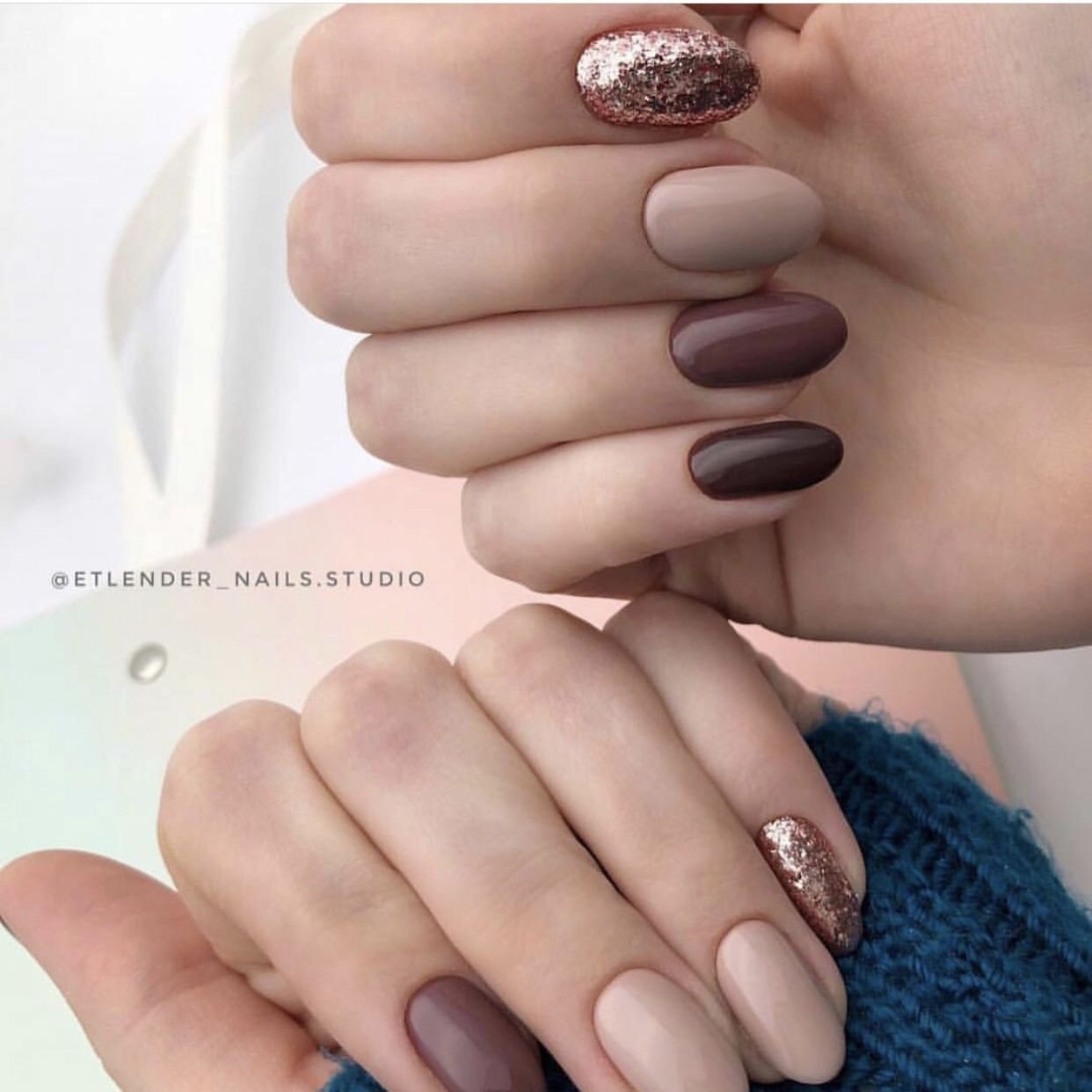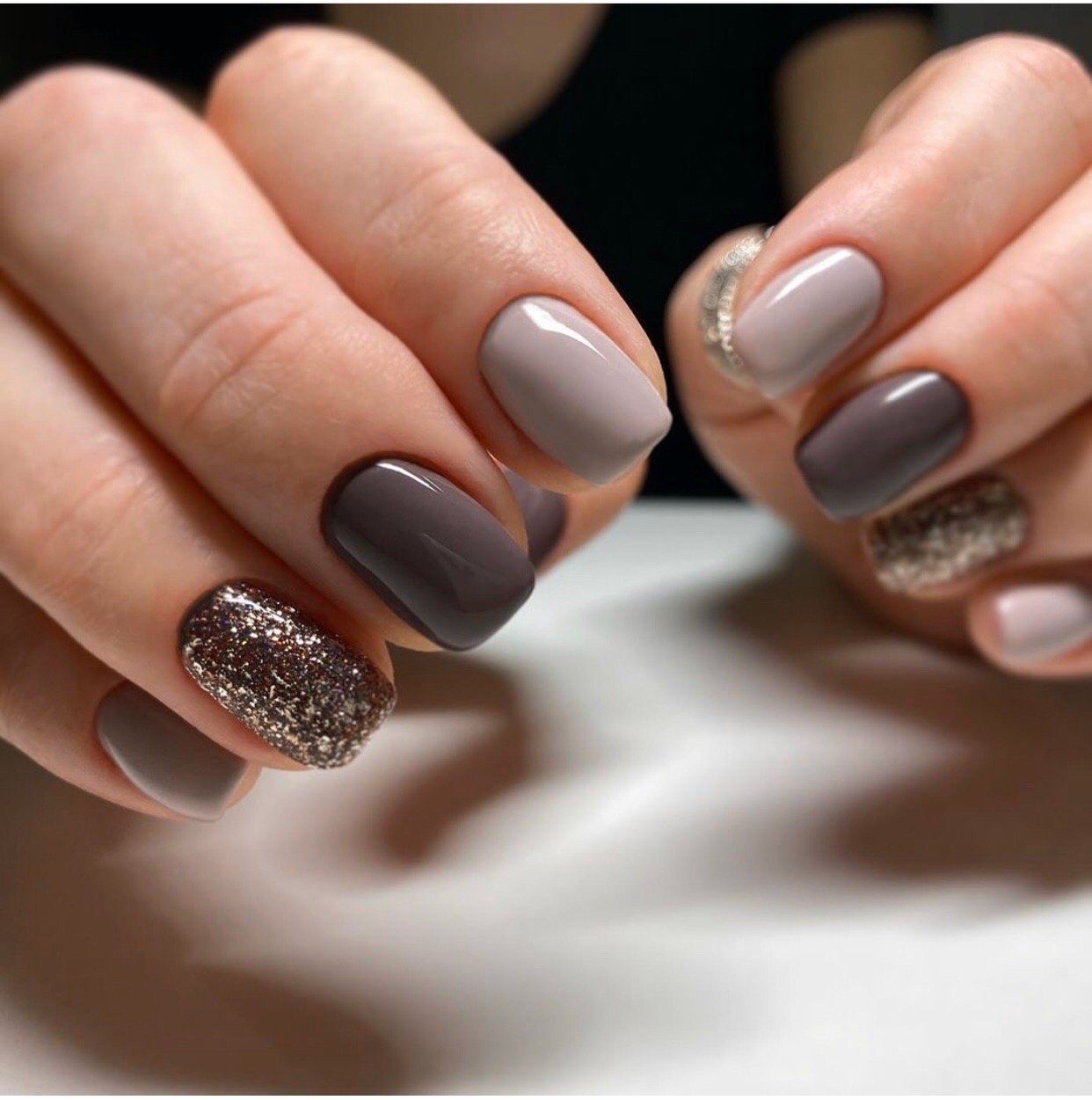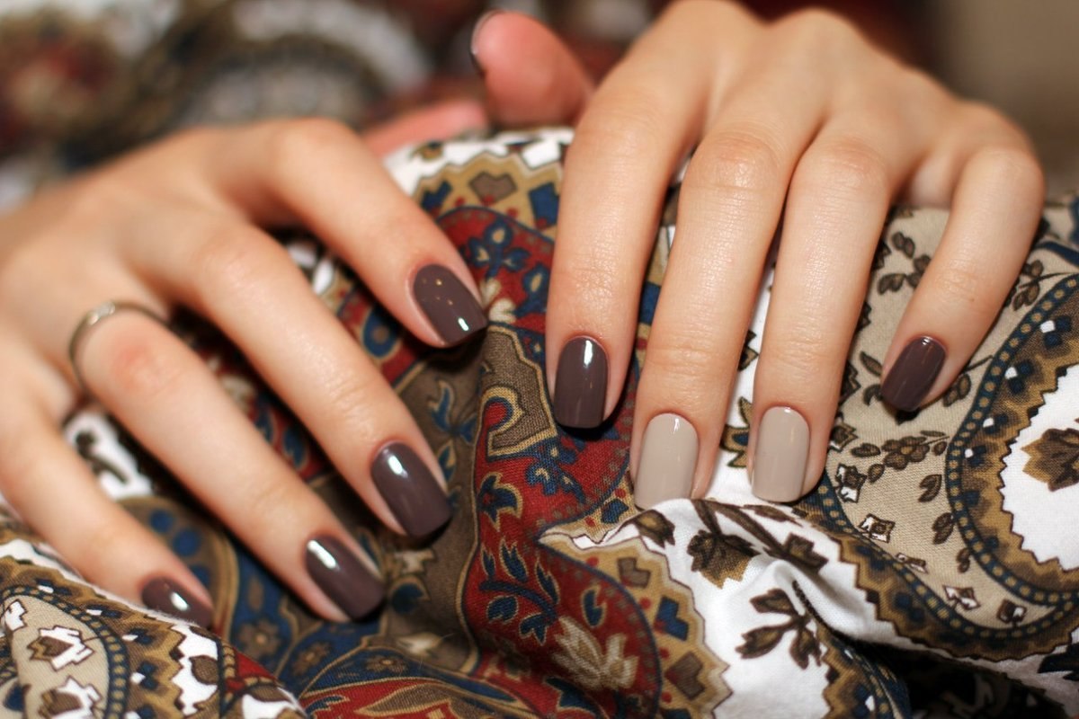 Коричневый маникюр разные оттенки