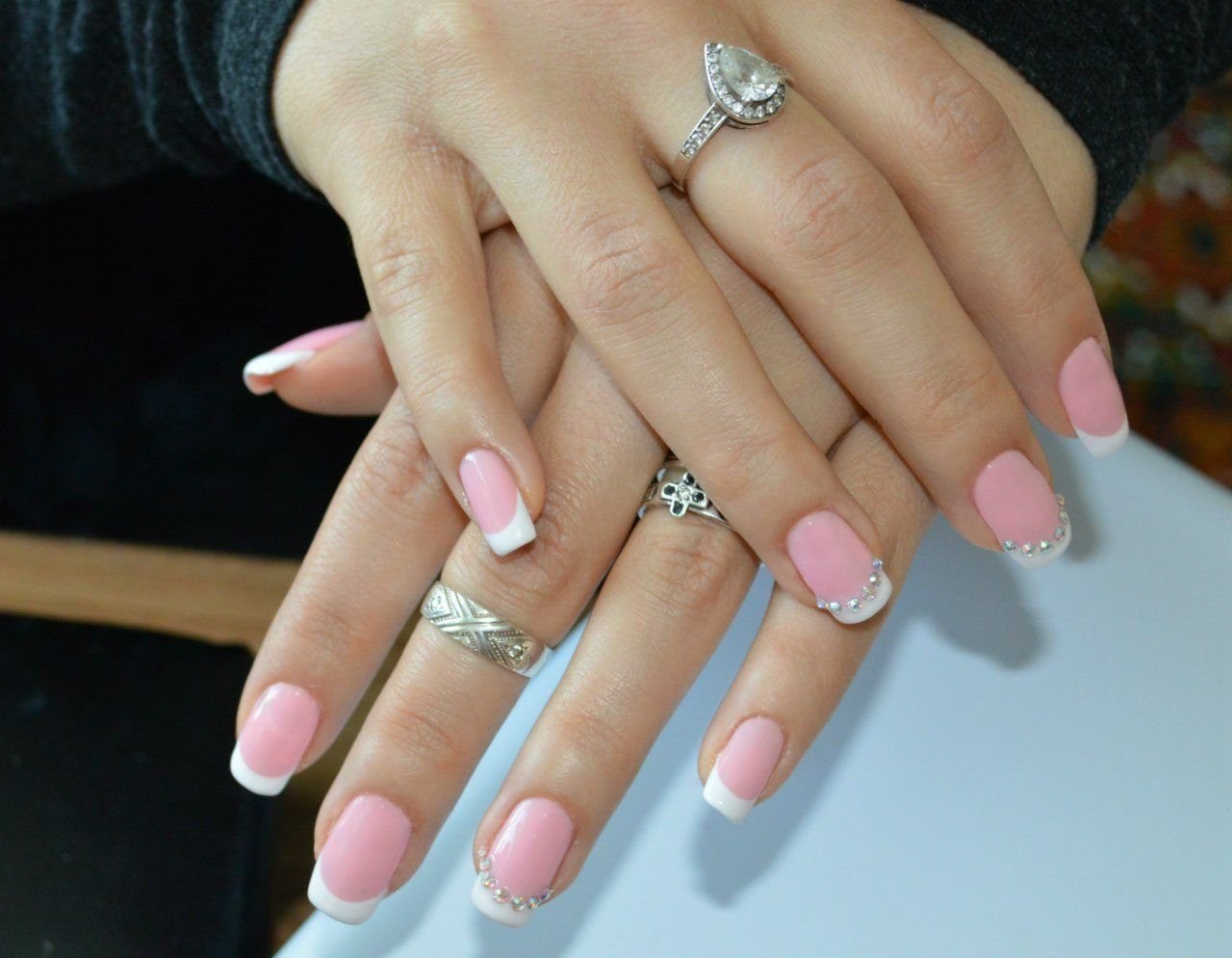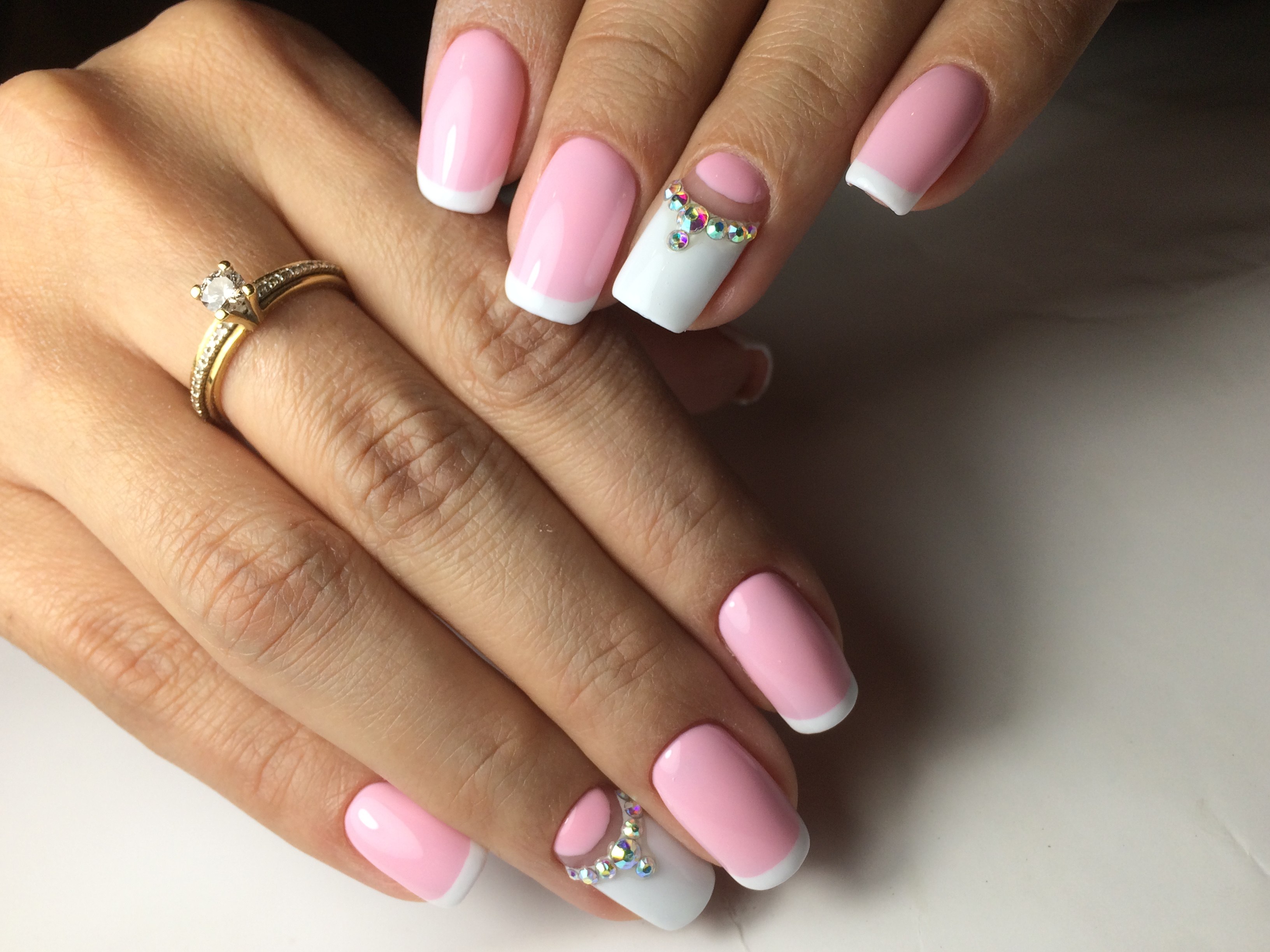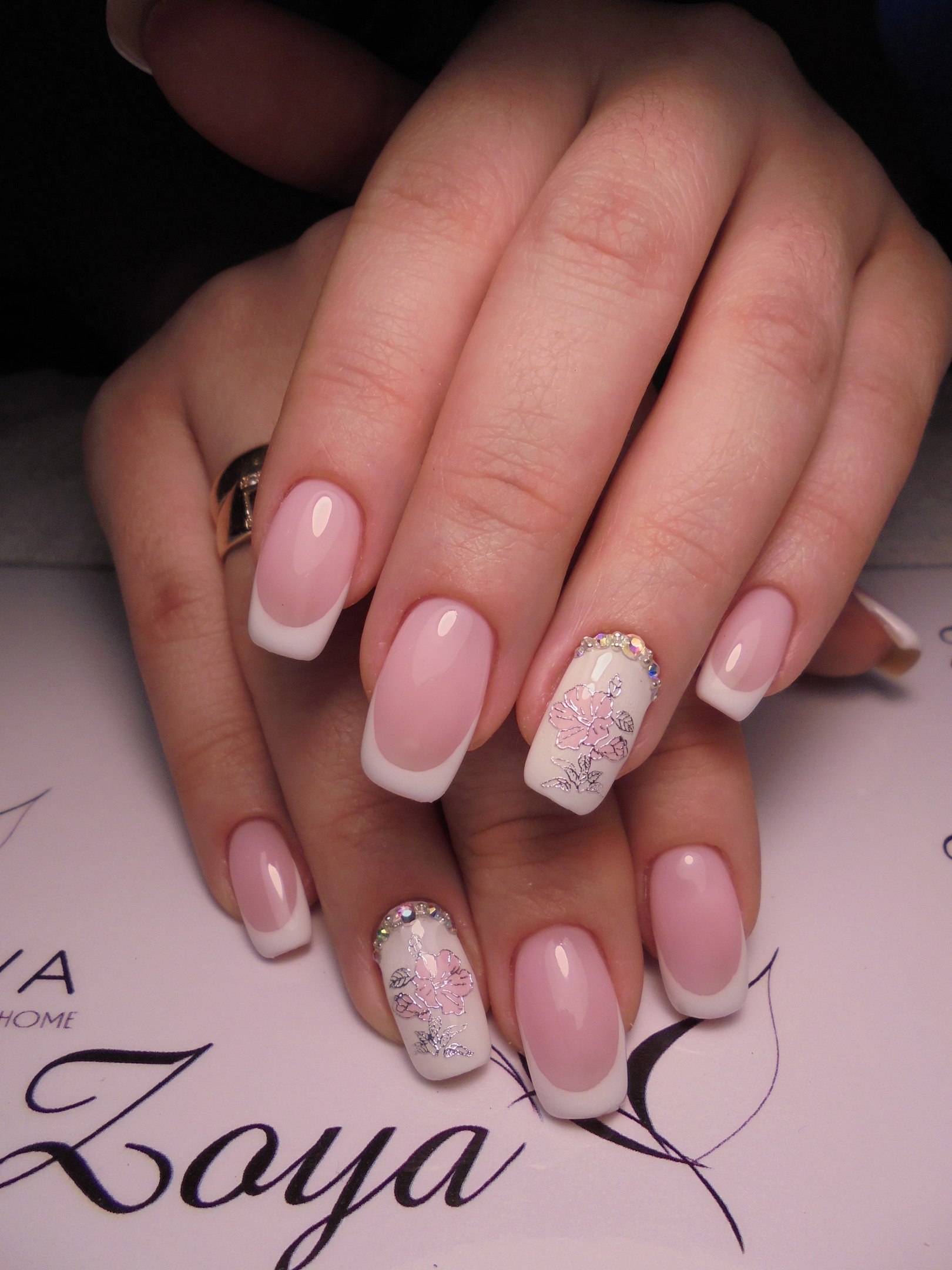 Французский маникюр со стразами