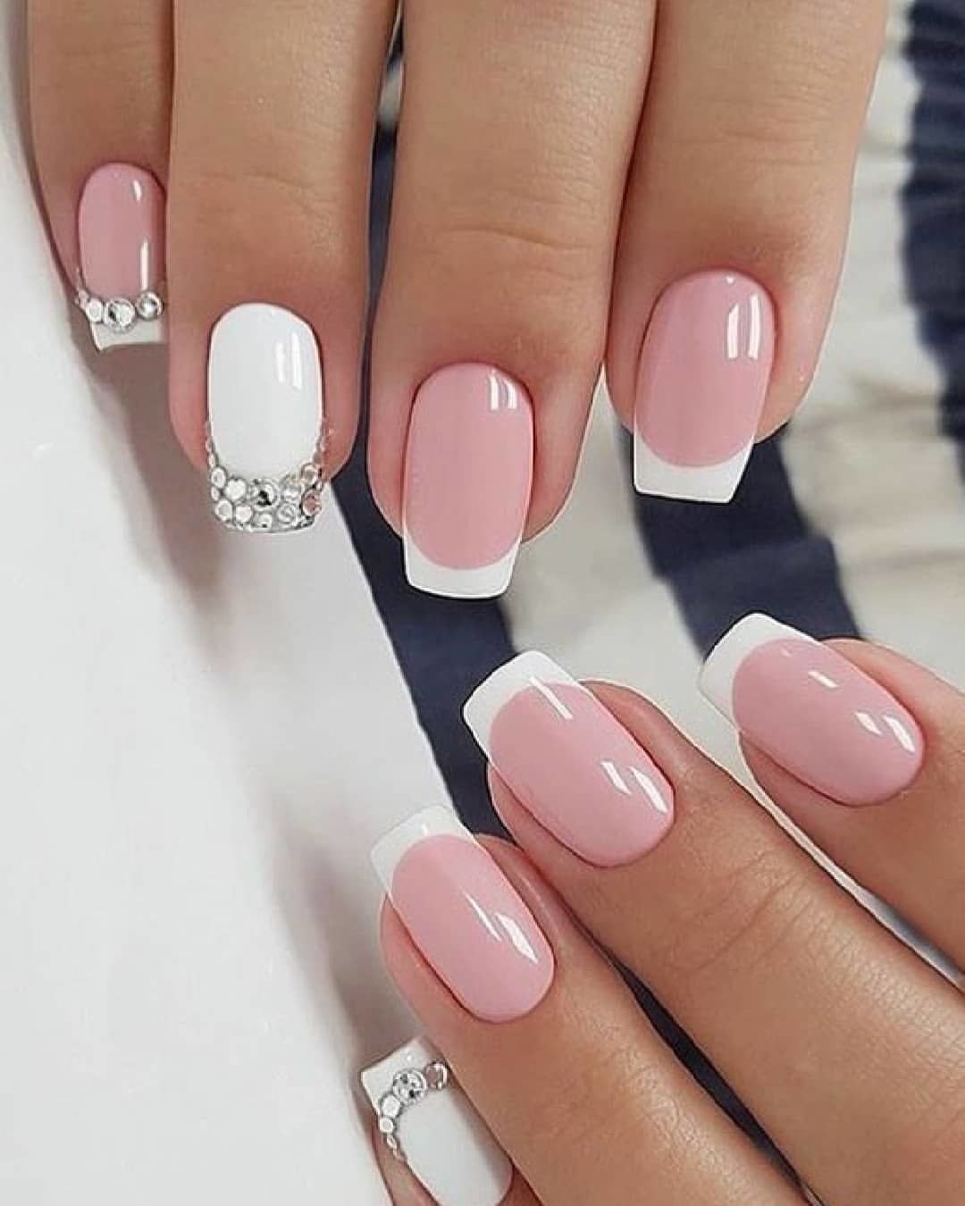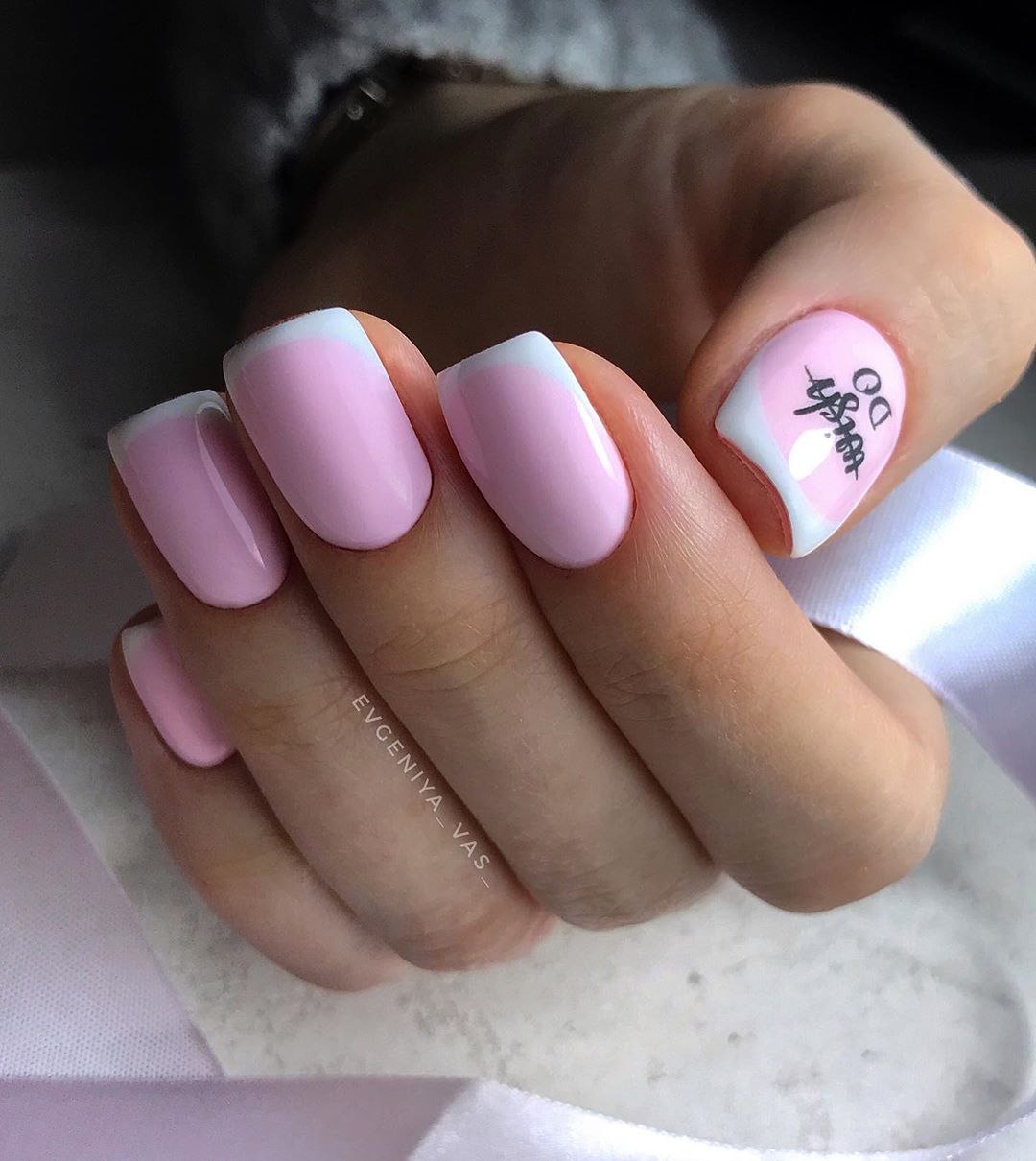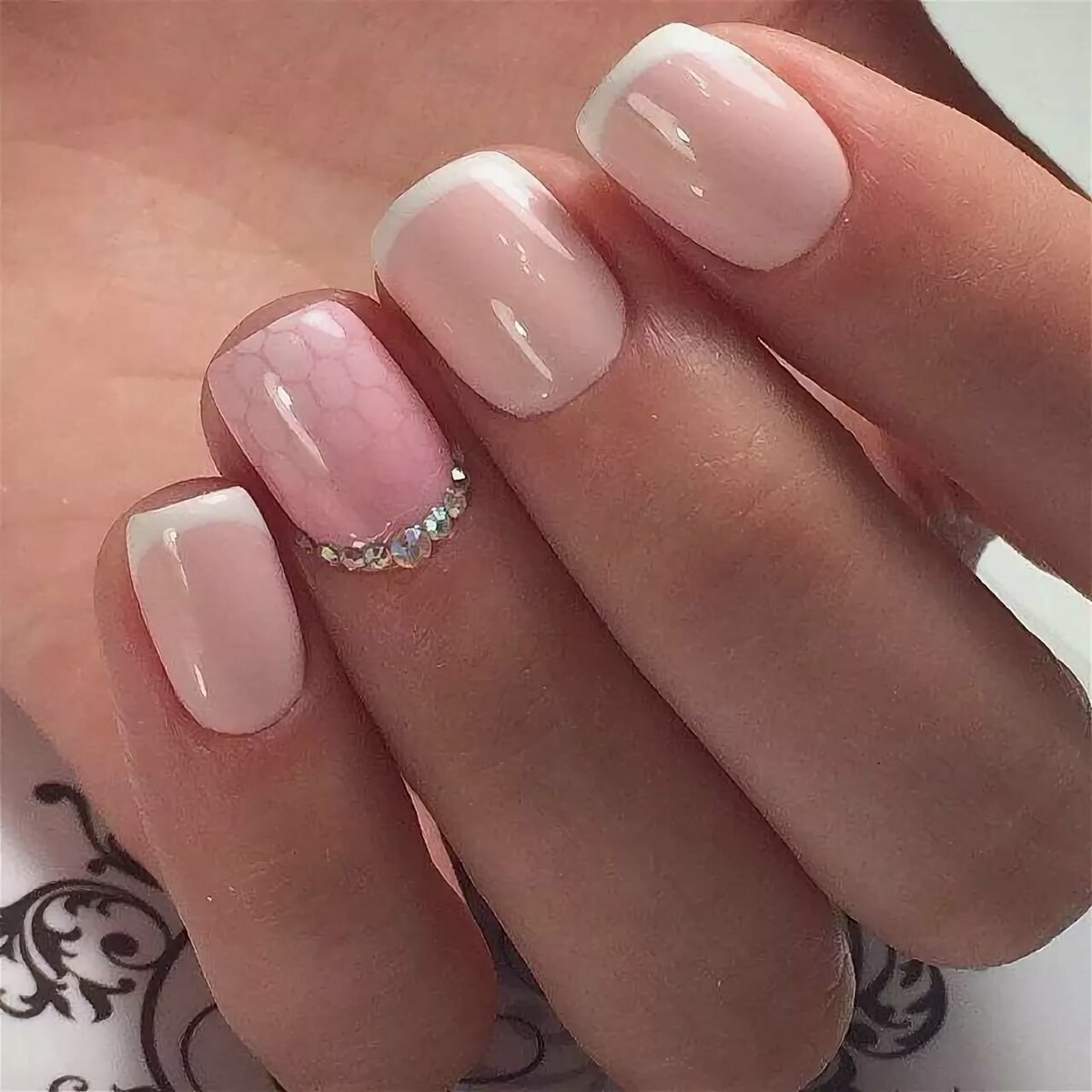 Бело-розовый маникюр на короткие ногти