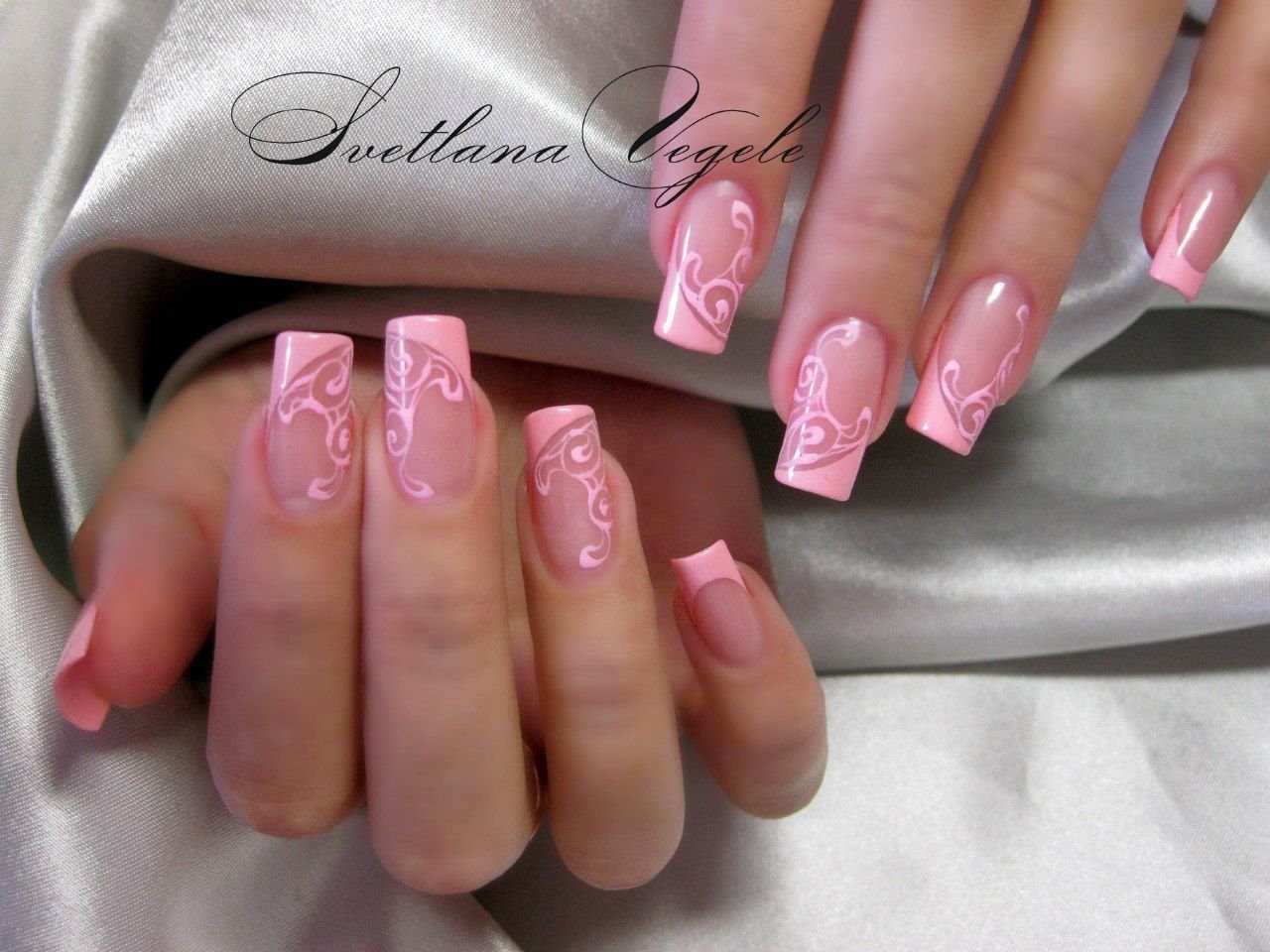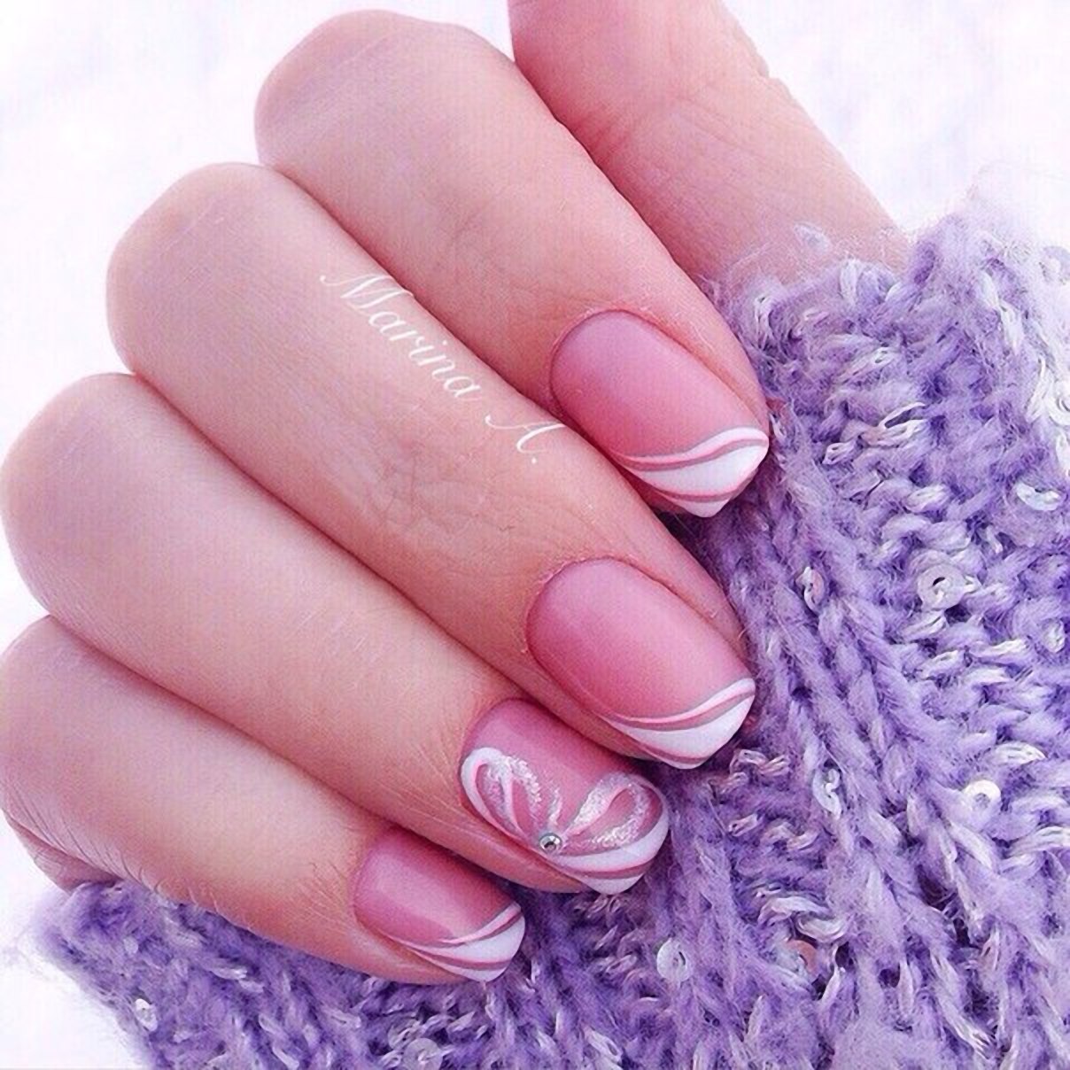 Маникюр розовый с белым