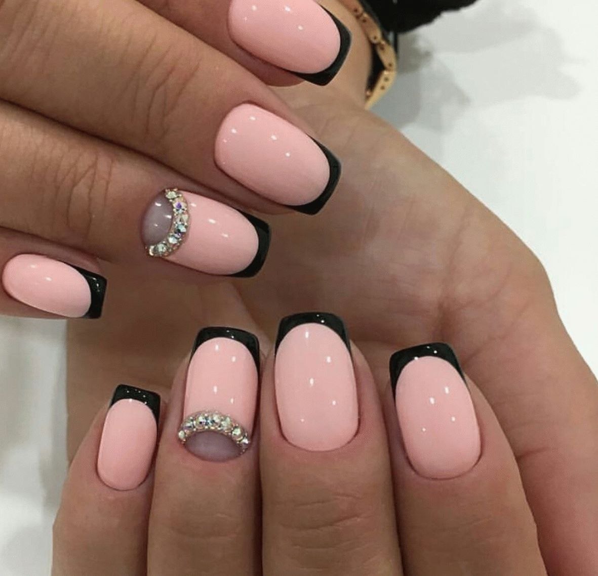 Маникюр френч розовый с черным