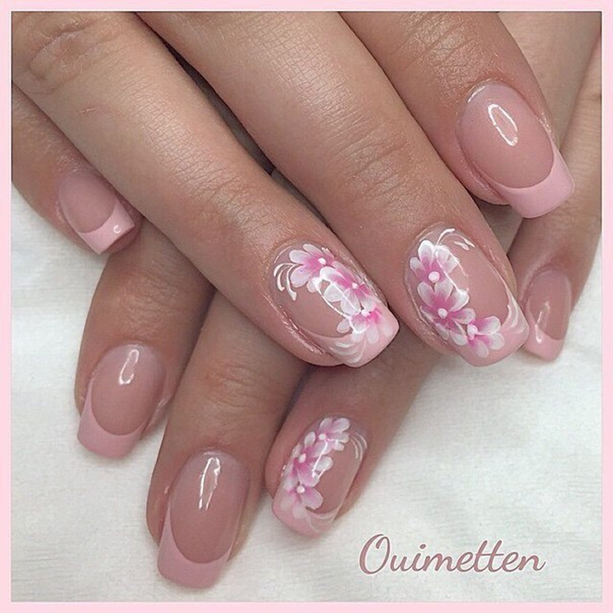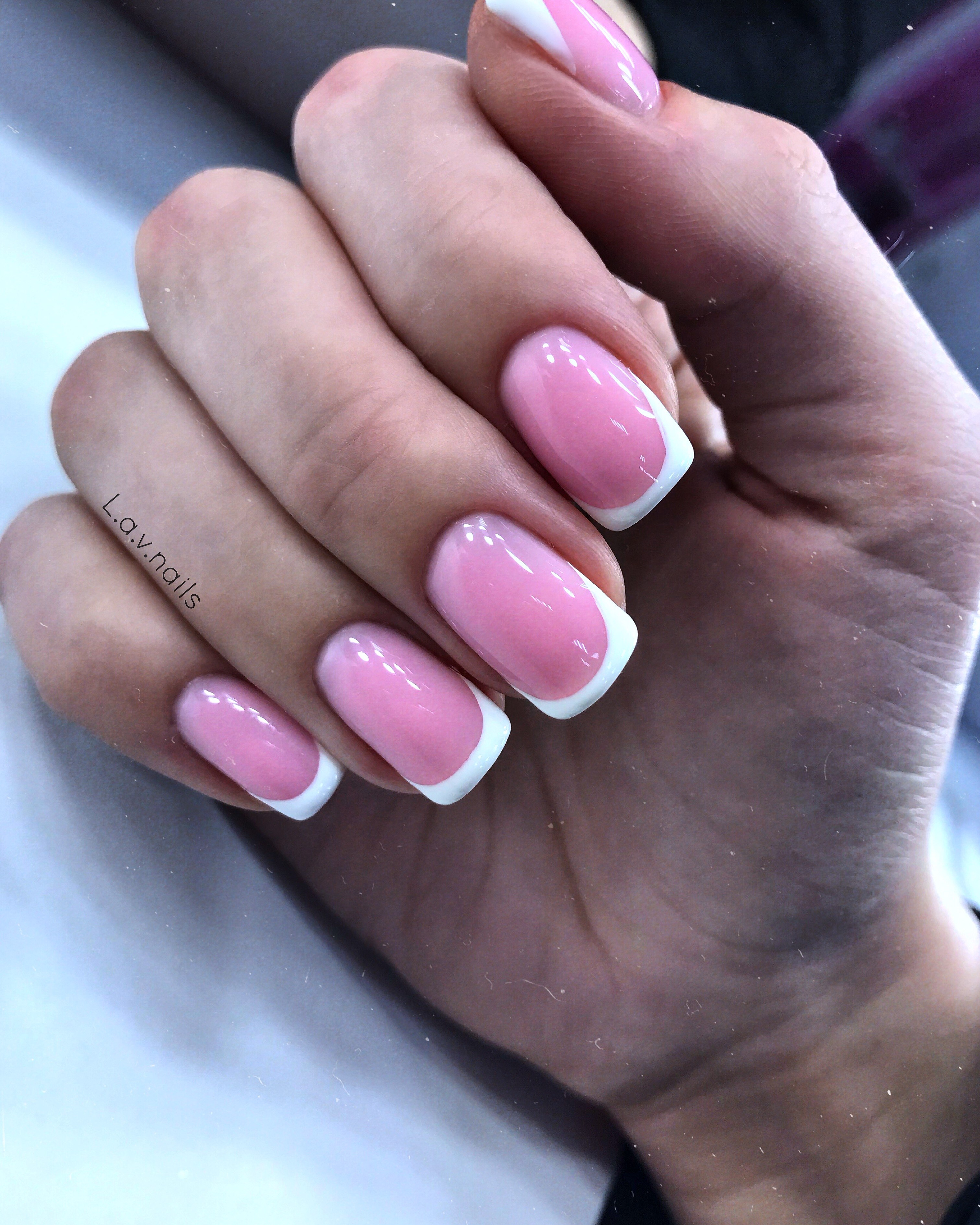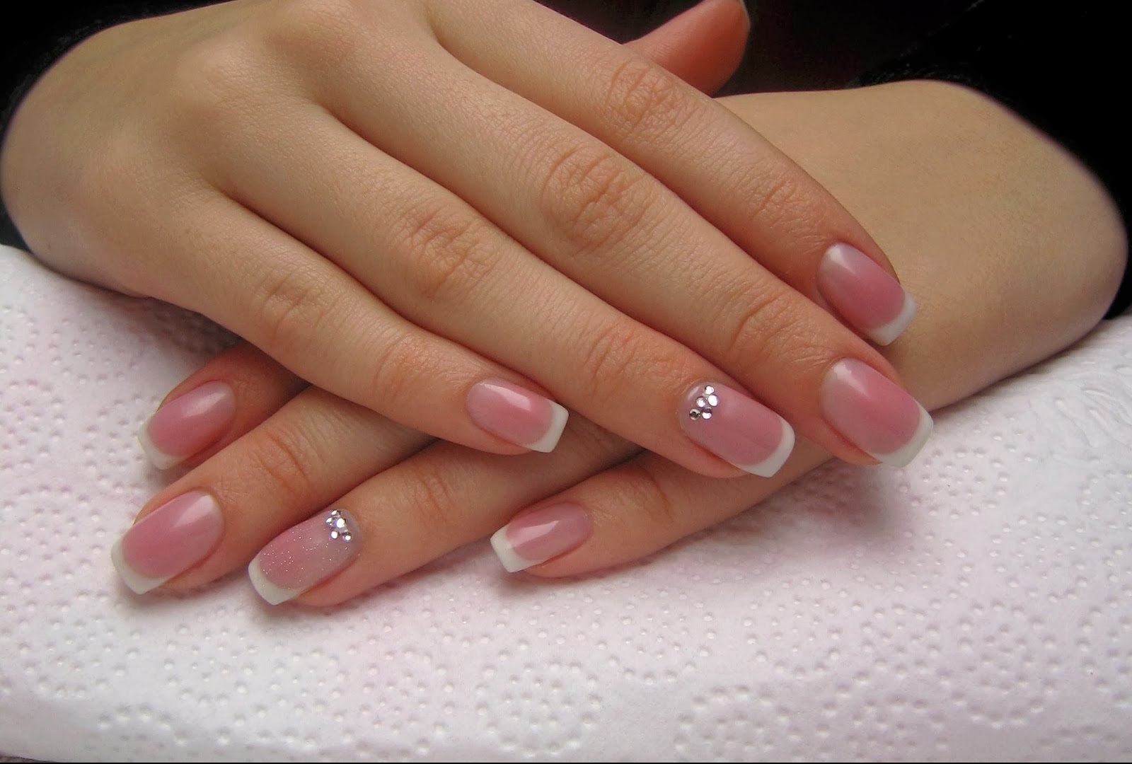 Нежно розовый френч на ногтях (34 фото)