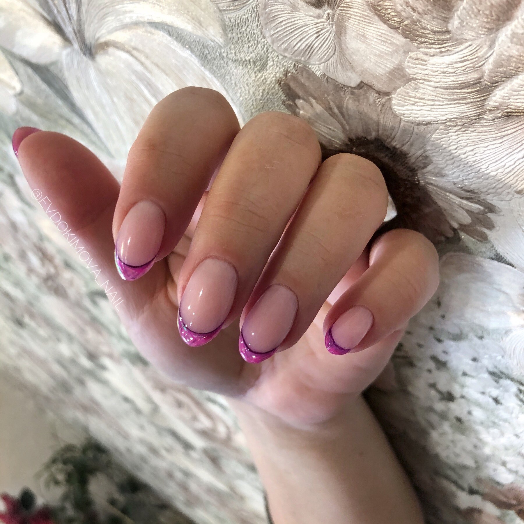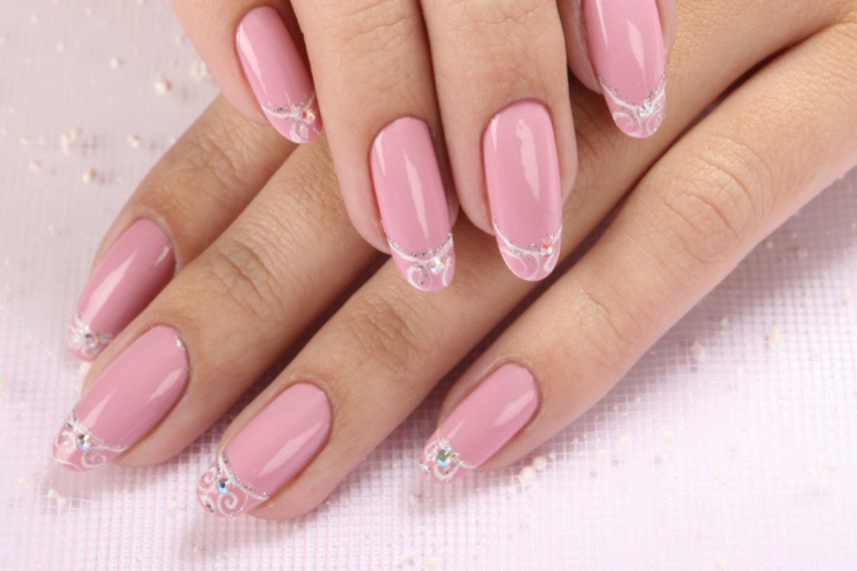 Розовый маникюр на овальных ногтях
