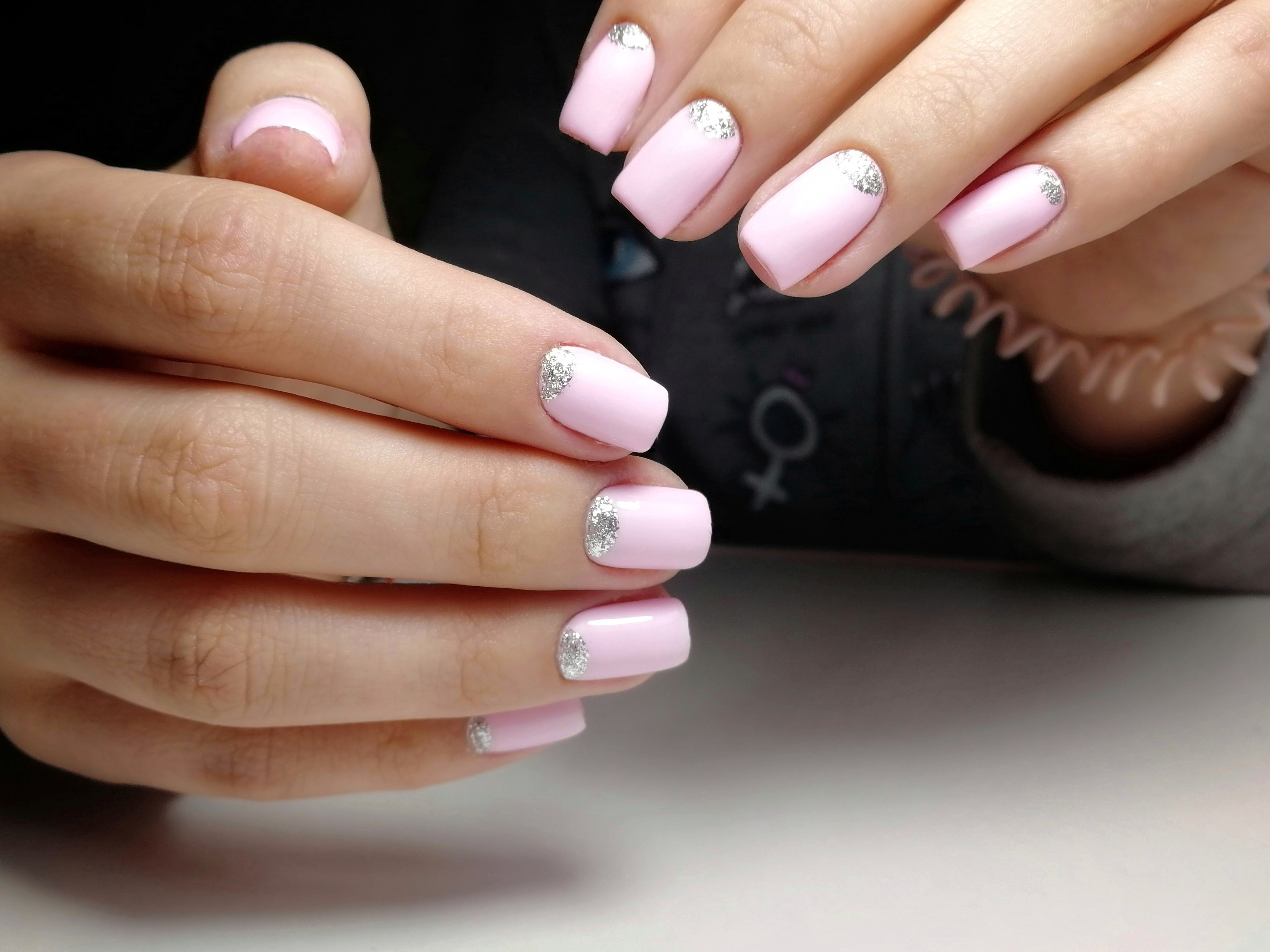 Розовое ногти с серым фоенчем