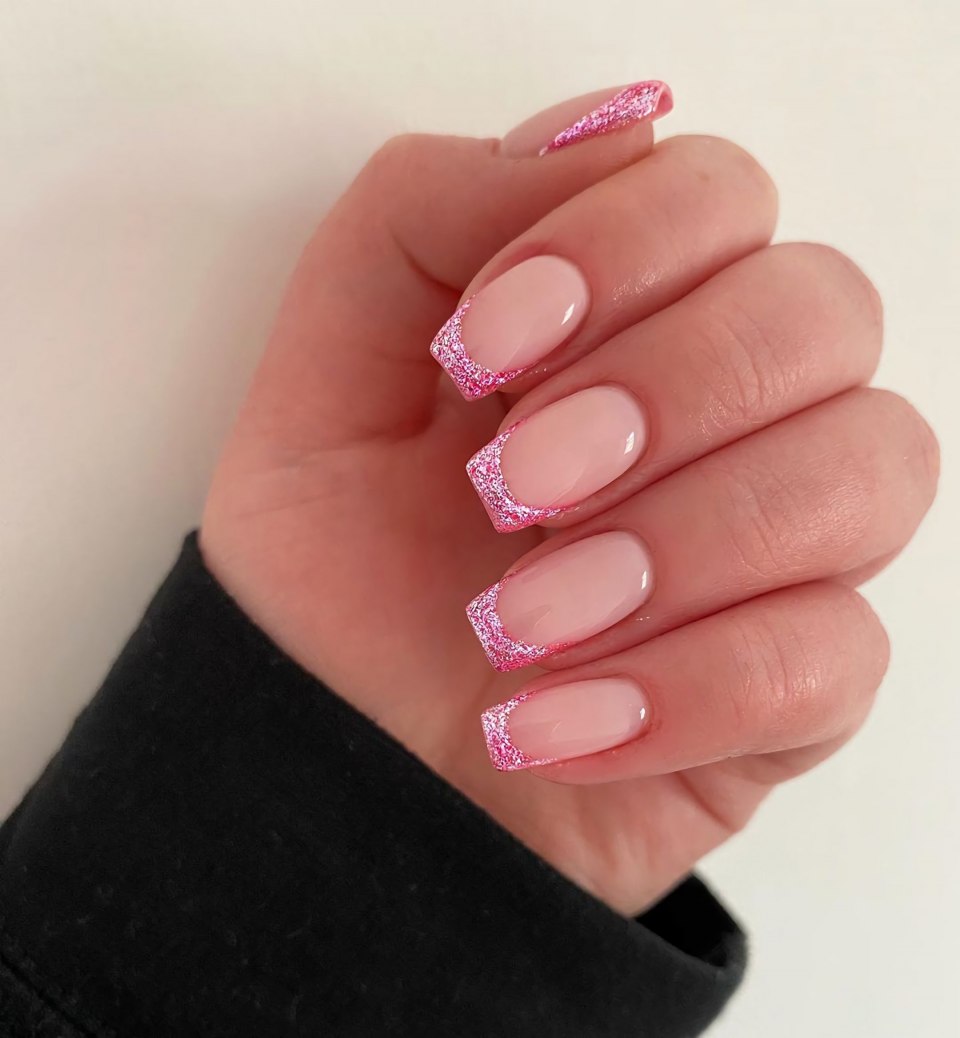 Розовые ногти с черным френчем