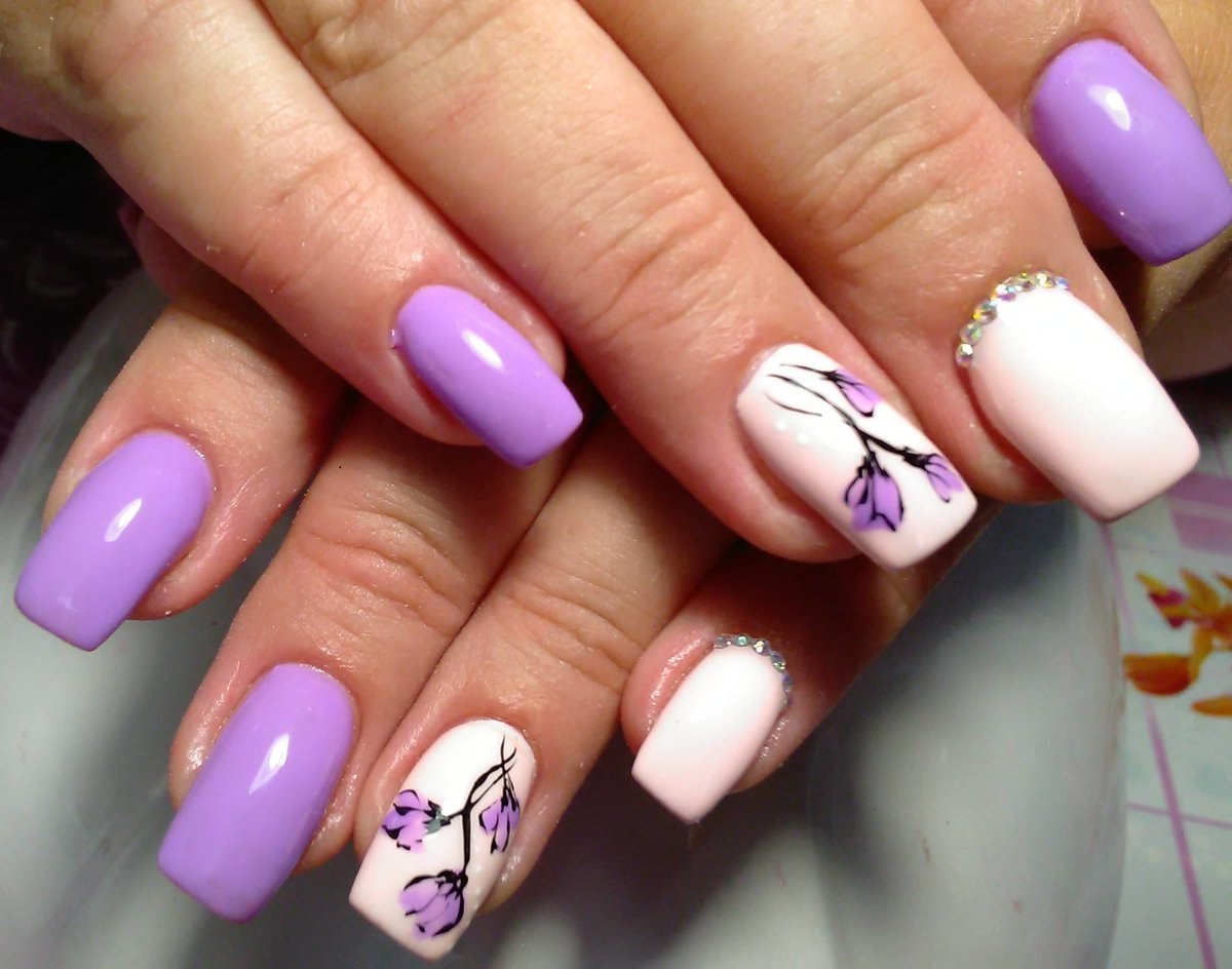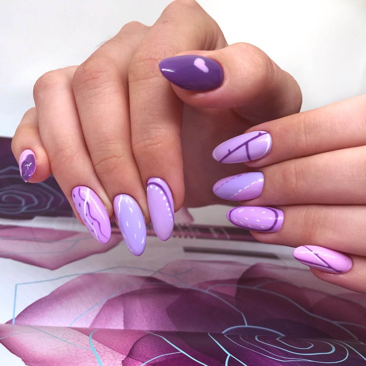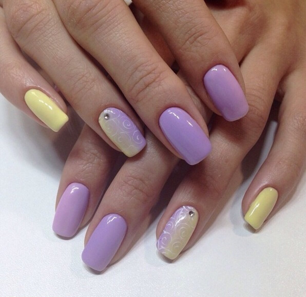 Ногти дизайн лавандовый цвет в сочетании с другими цветами (36 фото)