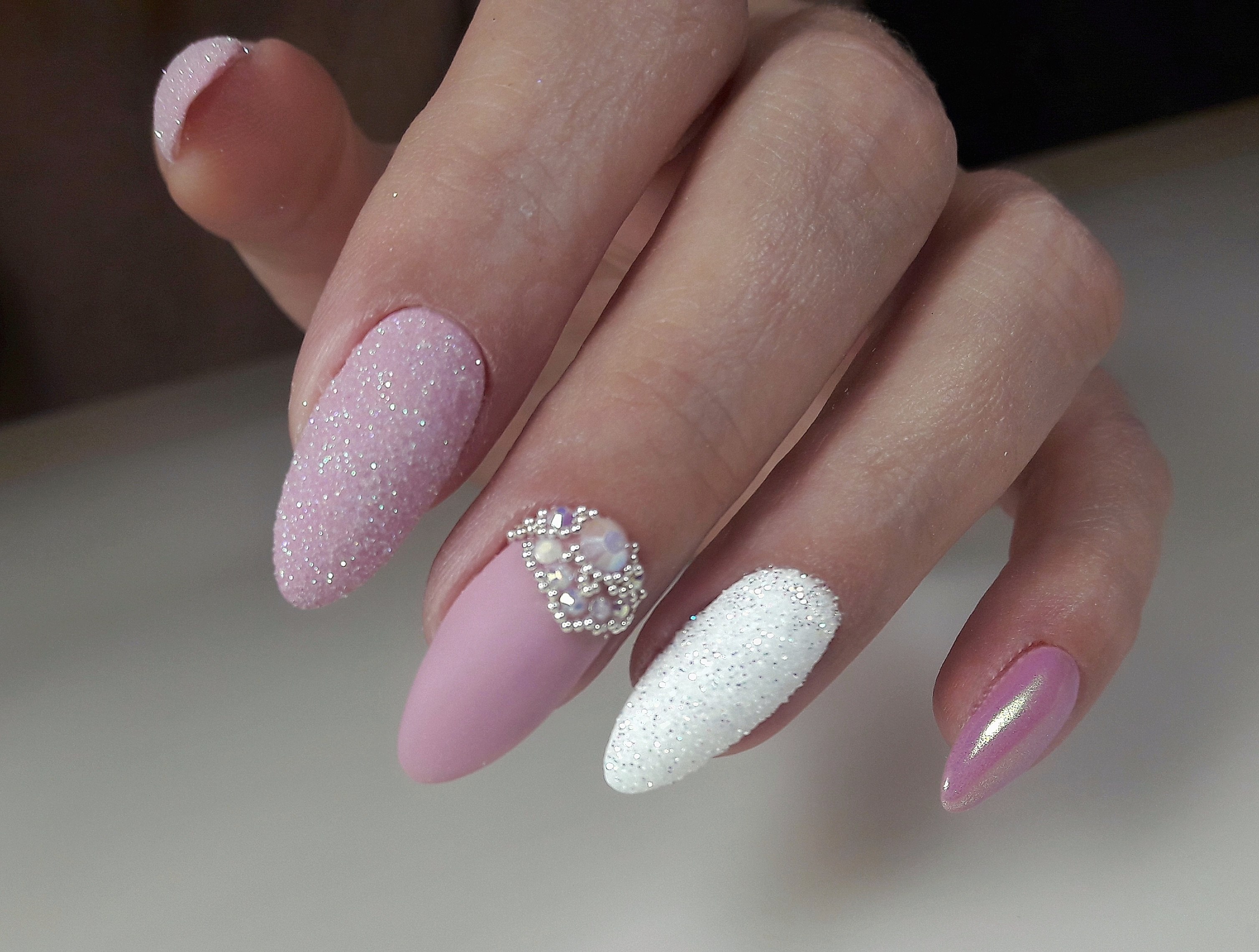 Маникюр Шиммер нюдовый миндаль