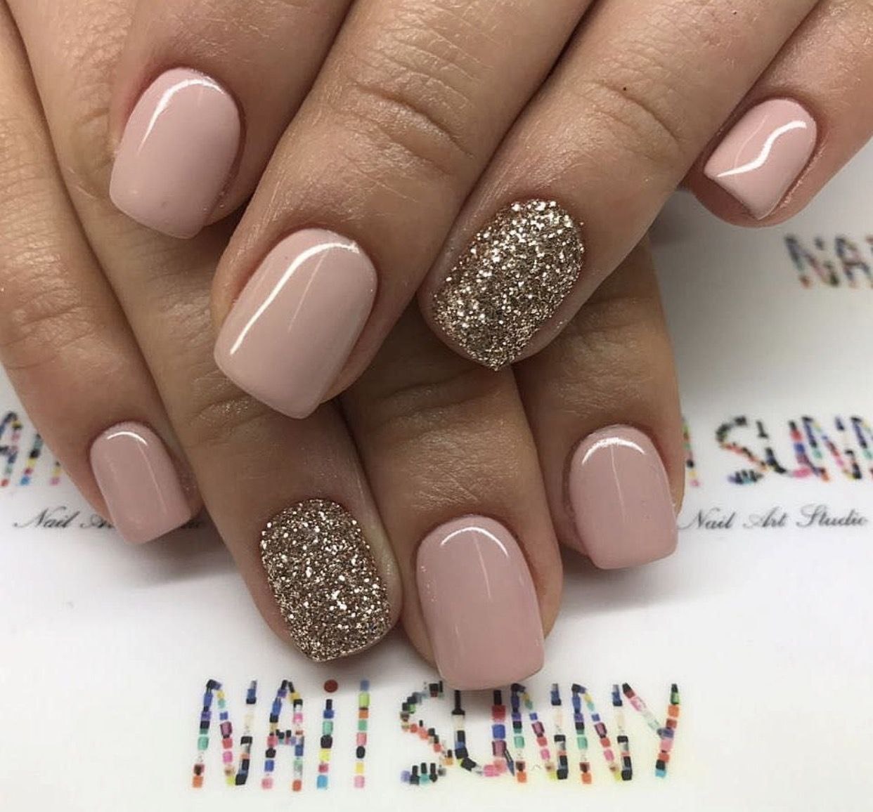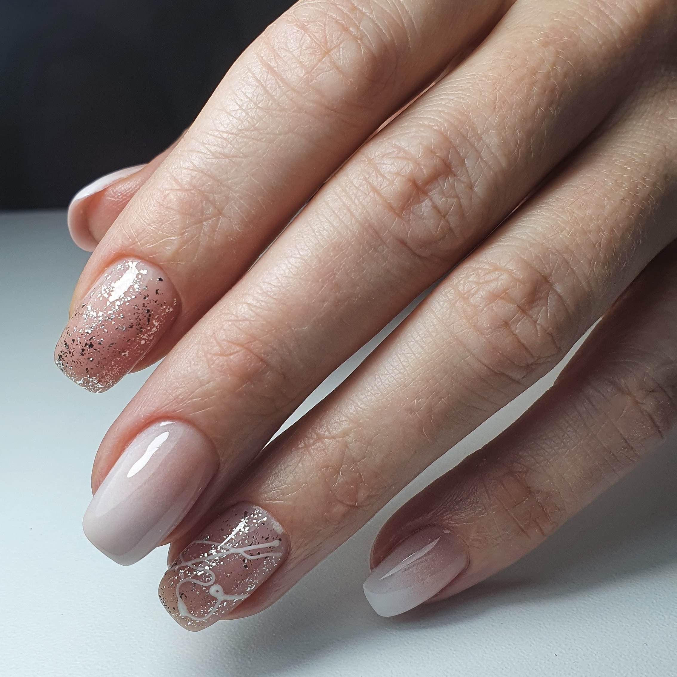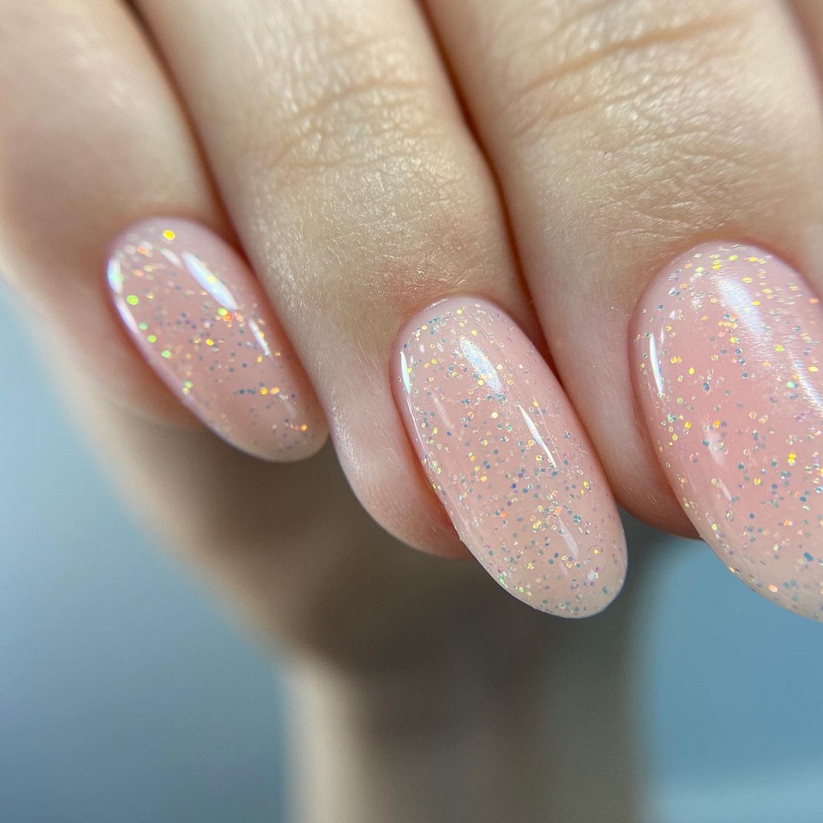 Ногти нюд с блестками