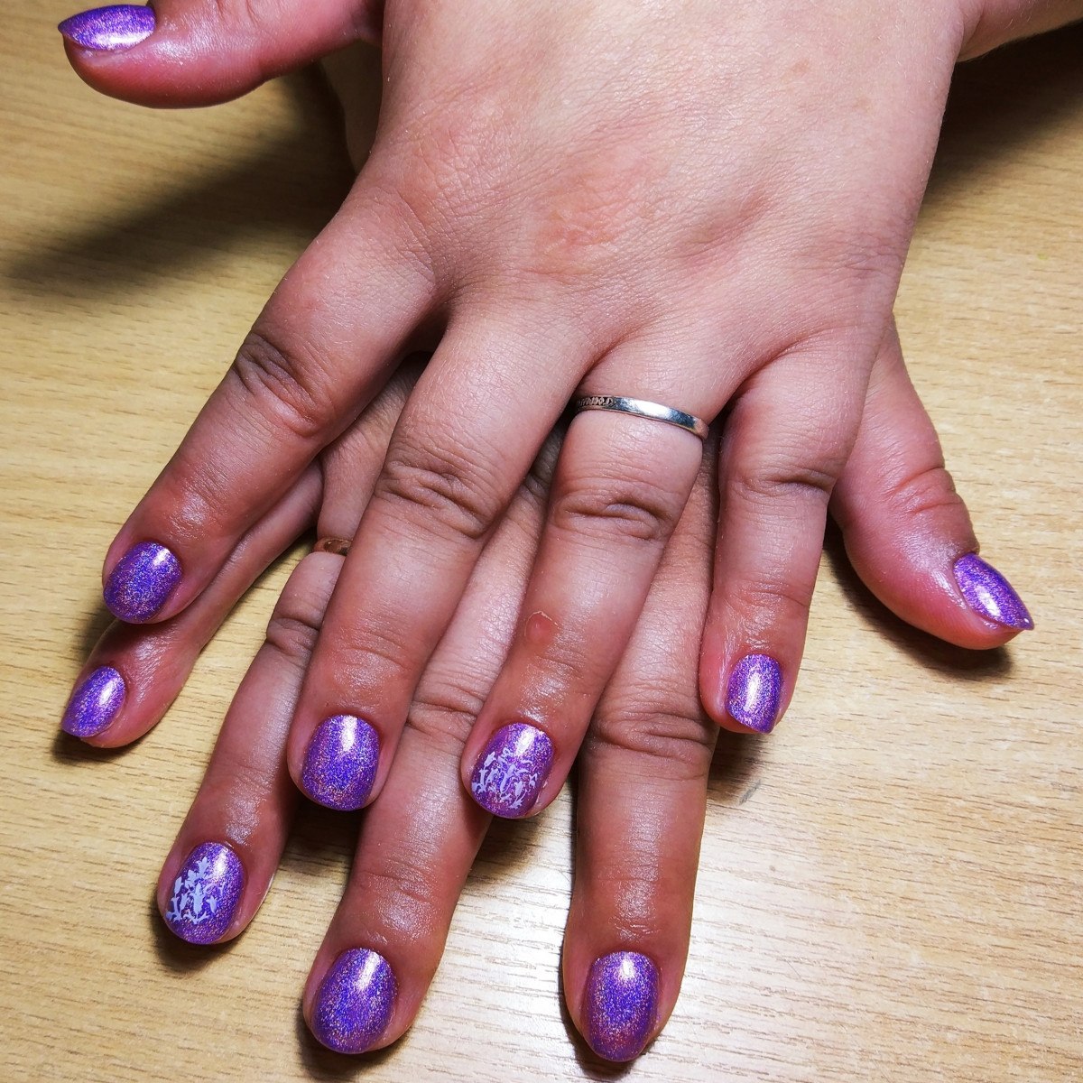 Сиреневые ногти с блестками