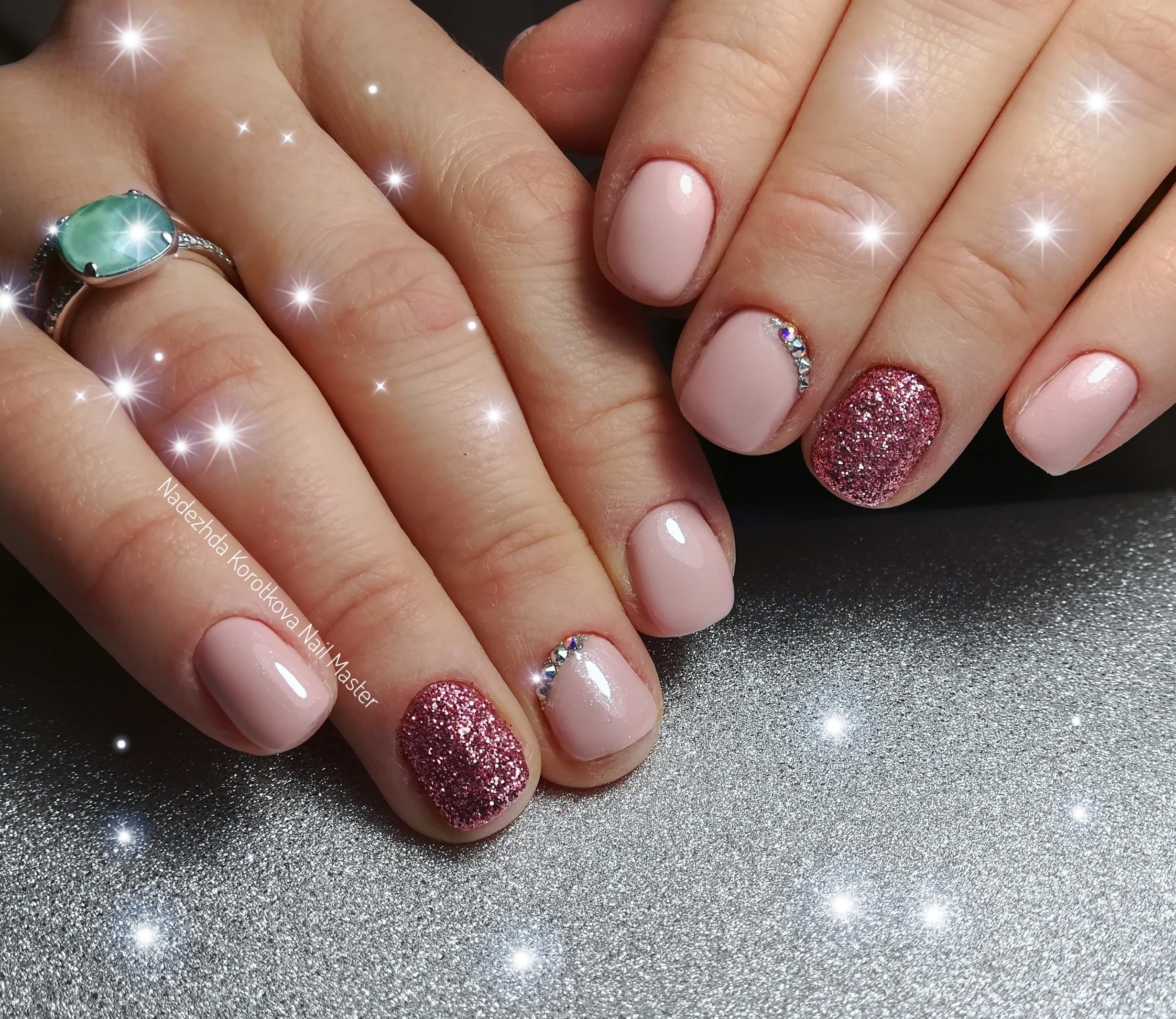 Маникюр с блёстками на короткие ногти