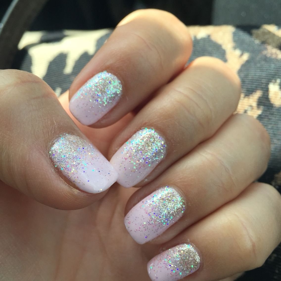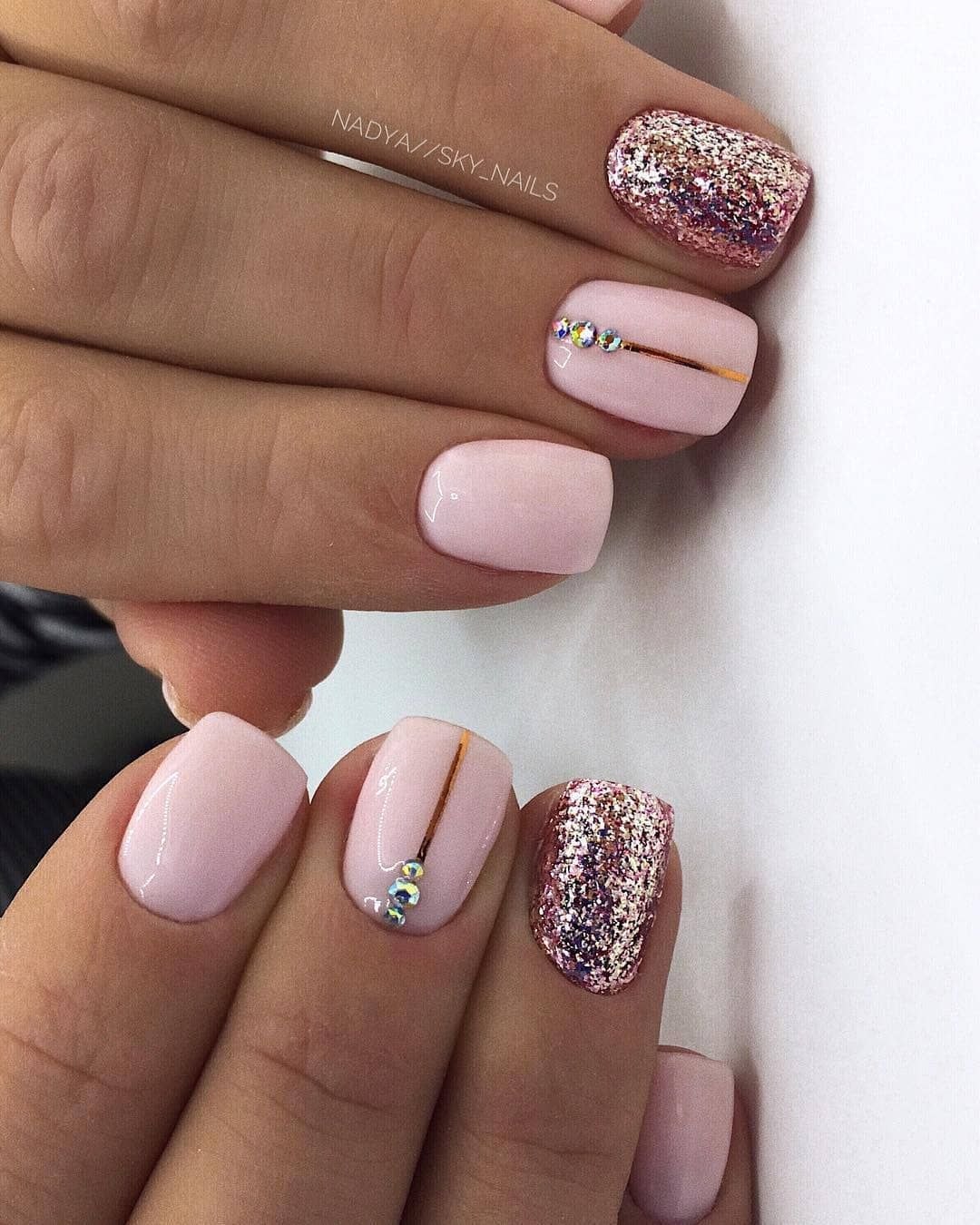 Маникюр на короткие ногти нежные с блестками